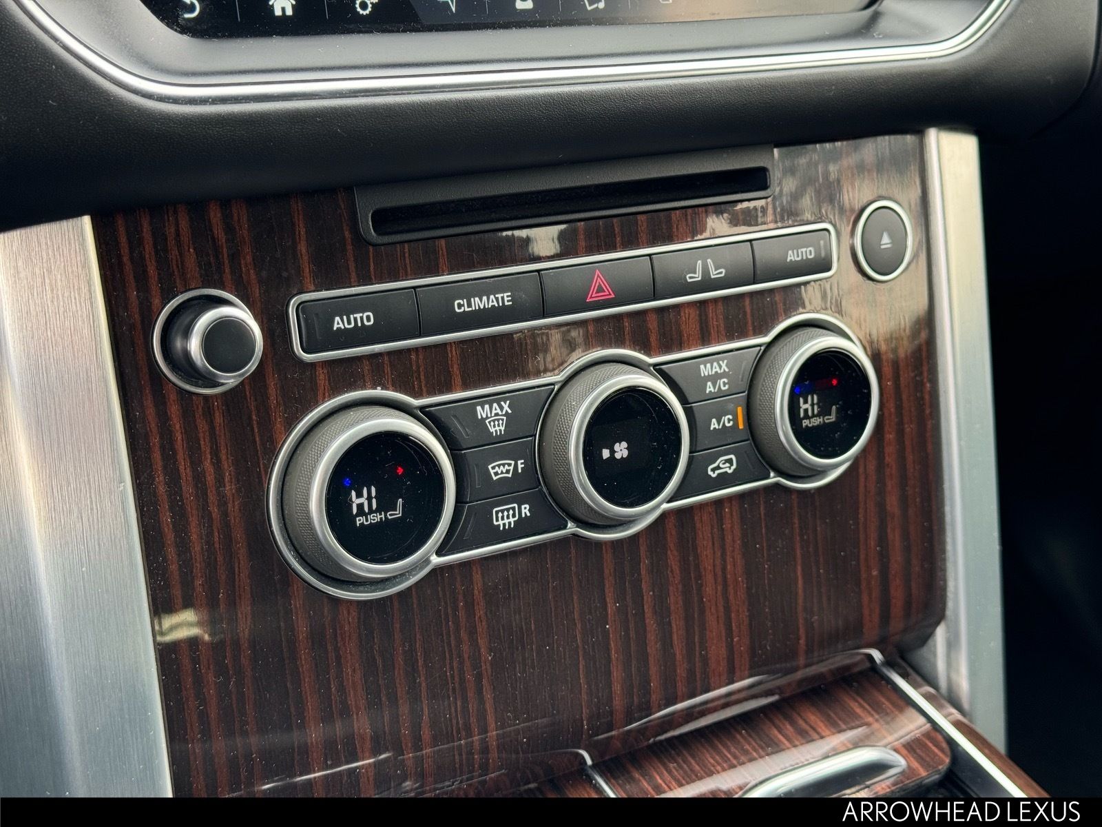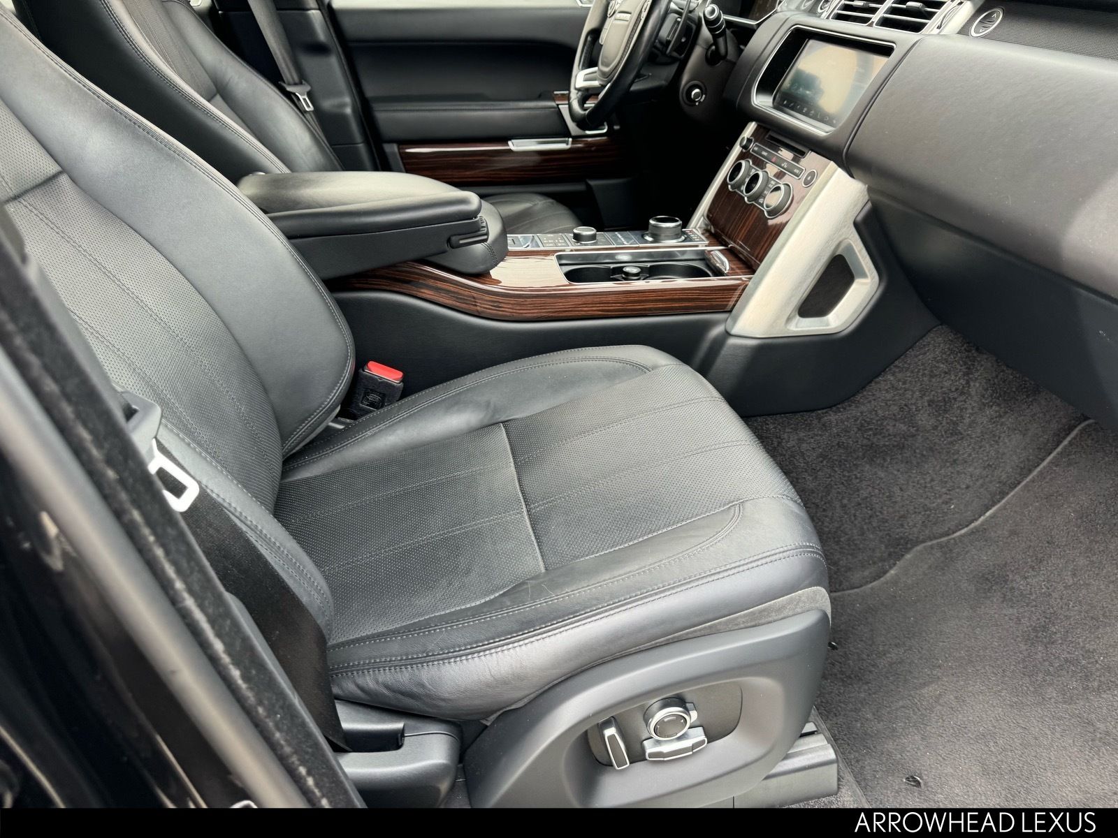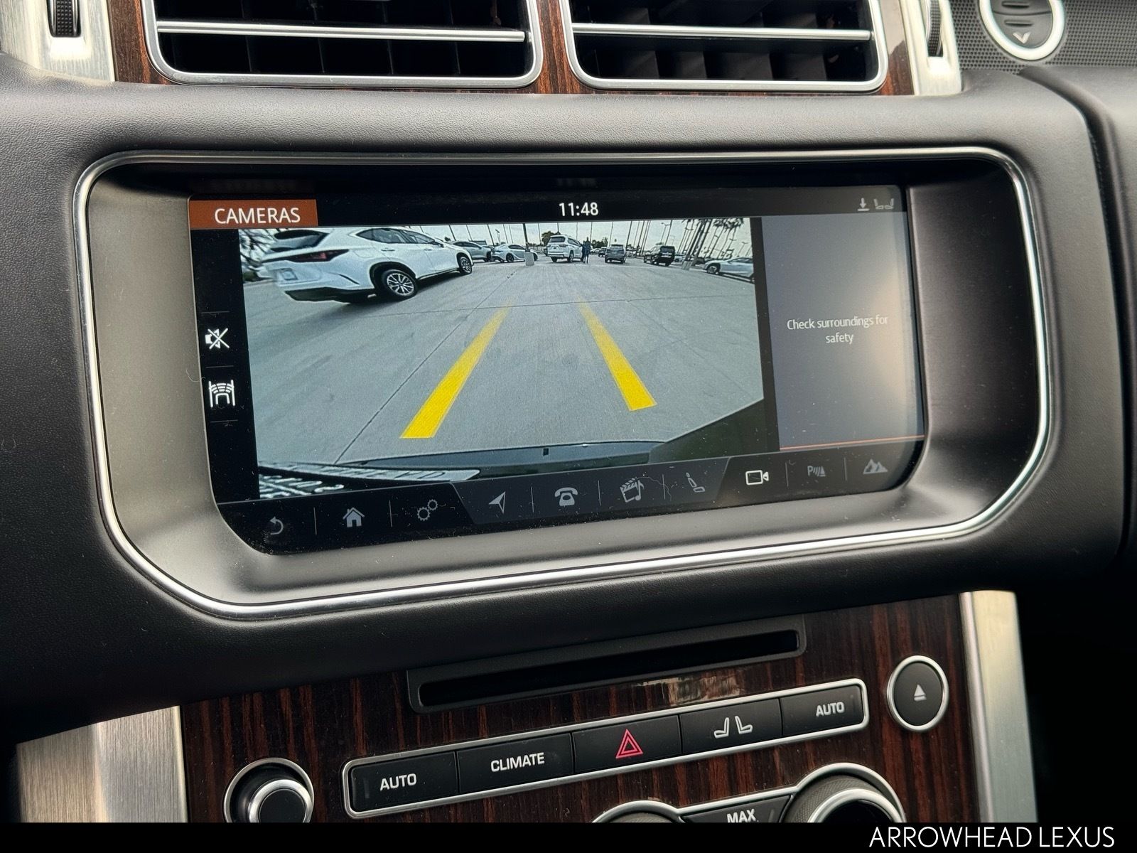 This Land Rover Range Rover is equipped with the following features: Ebony/Ebony/Cirrus/Cirrus w/Full Oxford Perforated Leather Seat Trim, 13 Speakers, 4-Wheel Disc Brakes, ABS brakes, Adaptive suspension, Air Conditioning, Alloy wheels, AM/FM radio, Anti-whiplash front head restraints, Auto tilt-away steering wheel, Auto-dimming door mirrors, Auto-dimming Rear-View mirror, Auto-leveling suspension, Automatic temperature control, Brake assist, Bumpers: body-color, CD player, Compass, Delay-off headlights, Door auto-latch, Driver door bin, Driver vanity mirror, Driver's Seat Mounted Armrest, Dual front impact airbags, Dual front side impact airbags, DVD-Audio, Electronic Stability Control, Emergency communication system: InControl Protect, Exterior Parking Camera Rear, Four wheel independent suspension, Front anti-roll bar, Front Bucket Seats, Front Center Armrest w/Storage, Front dual zone A/C, Front reading lights, Full Oxford Perforated Leather Seat Trim, Fully automatic headlights, Garage door transmitter: HomeLink, Genuine wood console insert, Genuine wood dashboard insert, Genuine wood door panel insert, Headlight cleaning, Heated door mirrors, Heated Front Bucket Seats, Heated front seats, Heated rear seats, Heated steering wheel, High intensity discharge headlights: Bi-Xenon, Illuminated entry, Low tire pressure warning, Memory seat, Navigation System, Occupant sensing airbag, Outside temperature display, Overhead airbag, Overhead console, Panic alarm, Passenger door bin, Passenger seat mounted armrest, Passenger vanity mirror, Power door mirrors, Power driver seat, Power moonroof, Power passenger seat, Power steering, Power windows, Premium audio system: Meridian, Radio data system, Radio: 380 Watt Meridian Audio w/10.2" Touchscreen, Rain sensing wipers, Rear air conditioning, Rear anti-roll bar, Rear fog lights, Rear reading lights, Rear seat center armrest, Rear window defroster, Rear window wiper, Remote keyless entry, Security system, Speed control, Speed-sensing steering, Speed-Sensitive Wipers, Split folding rear seat, Steering wheel memory, Steering wheel mounted A/C controls, Steering wheel mounted audio controls, Tachometer, TBD Axle Ratio, Telescoping steering wheel, Tilt steering wheel, Traction control, Trip computer, Turn signal indicator mirrors, Variably intermittent wipers, Ventilated front seats, Weather band radio, and Wheels: 20" 5 Split Spoke Alloy - Style 502.
