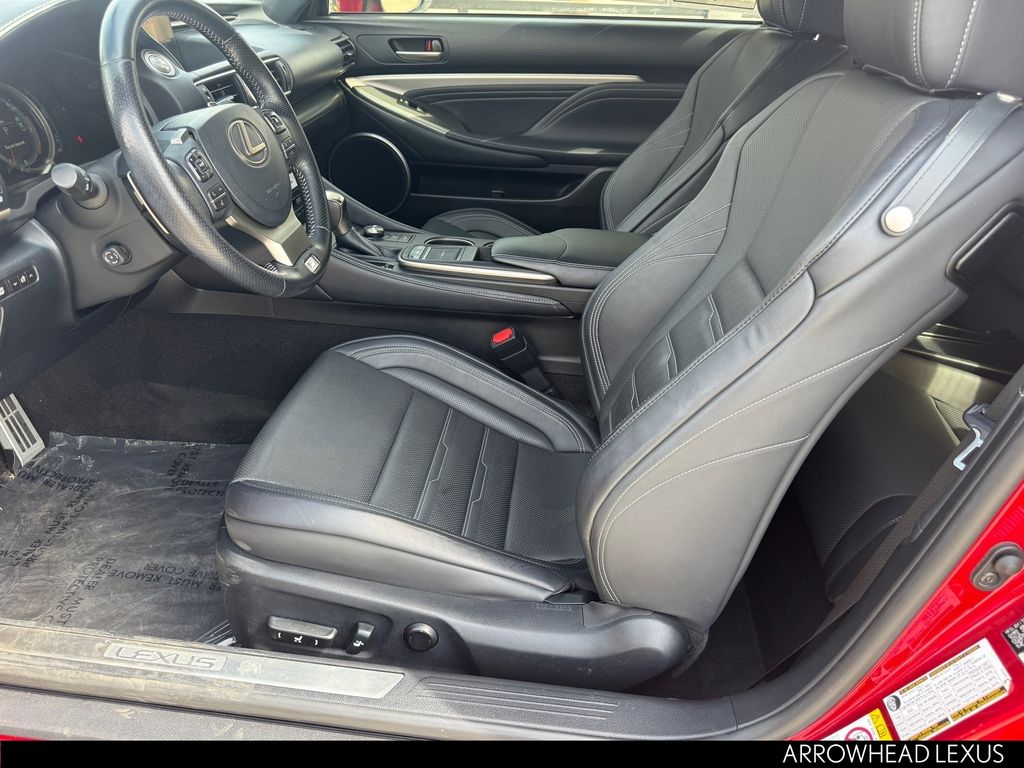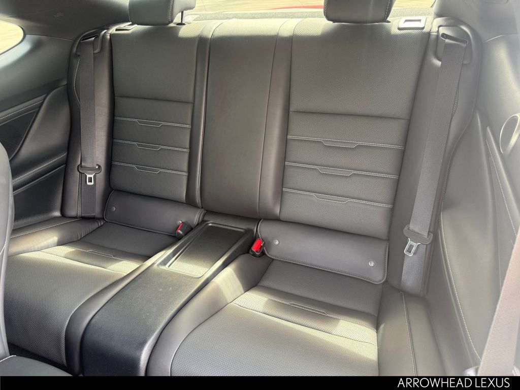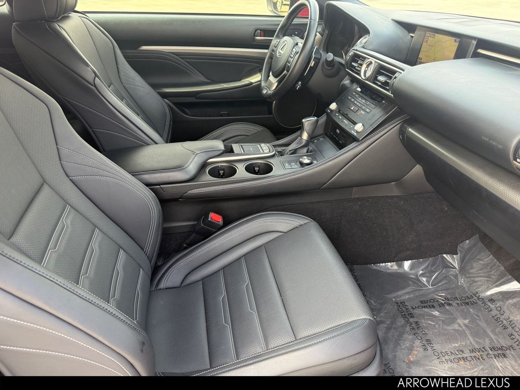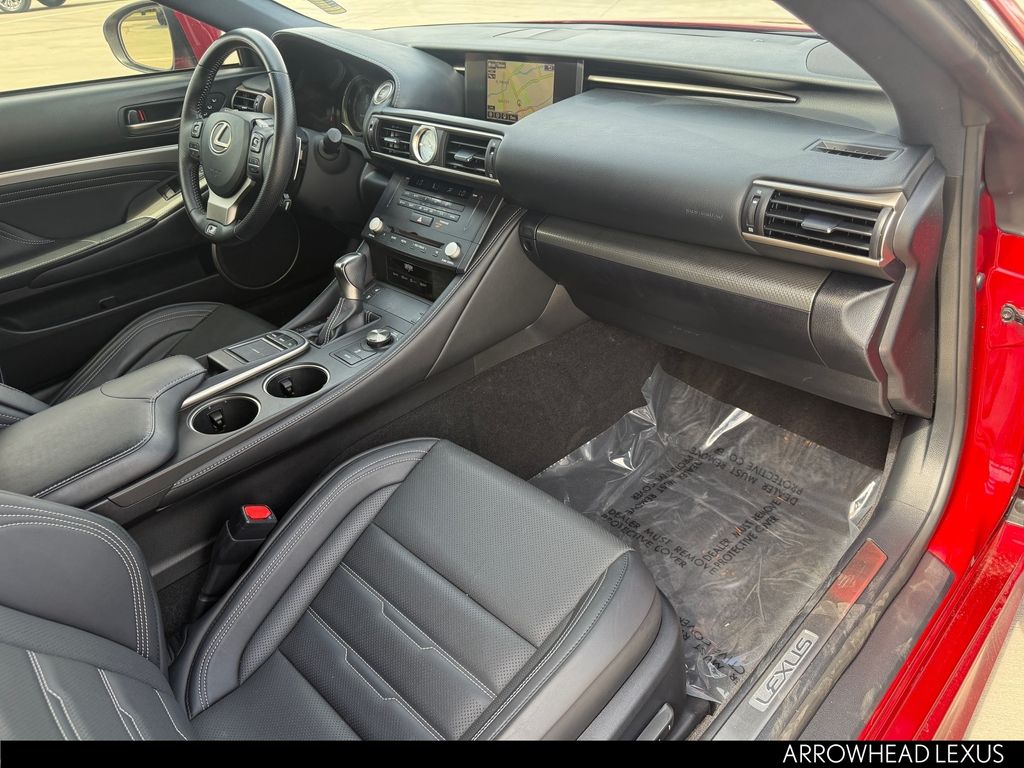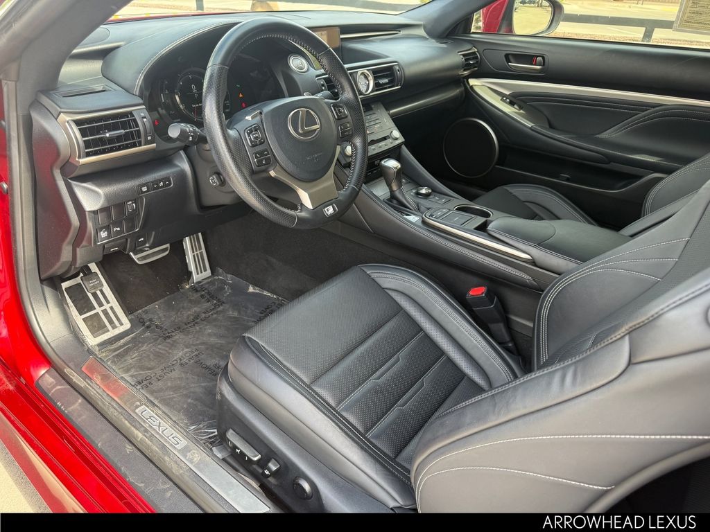 This Lexus RC is equipped with the following features: Accessory Package 2 (Alloy Wheel Locks, Cargo Net, Carpet Trunk Mat, Key Gloves, and Rear Bumper Applique), F Sport Package w/Summer Tires (Adaptive Variable Suspension, Aluminum Sport Pedals, Black Headliner, Blind Spot Monitor w/Rear Cross Traffic Alert, Driver Seat Memory, F Sport Front Fender Badges, F Sport Nuluxe Seat Trim, F Sport Shift Knob, Glove Box w/Key, Heated & Vented Driver & Passenger Seats, High-Friction Brake Pads, LFA Inspired TFT Instrumentation, Perf Leather Steering Wheel w/Paddle Shifters, Power Front Sport Seats w/Contrast Stitching, Power Tilt/Telescoping Steering Column, Silver Performance Trim, Sport Vehicle Dynamics Integrated Mgmt (VDIM), Stainless Steel Scuff Plates, Unique Front Fascia/Grille, and Wheels: 19" x 8" F SPORT Alloy), Navigation System w/Mark Levinson Premium Audio (Back-Up Monitor w/Dynamic Grid Lines, Lexus Enform App Suite, Lexus Enform Destinations, and Radio: AM/FM/In-Dash DVD/CD), Navigation System, 10 Speakers, 4-Wheel Disc Brakes, ABS brakes, Air Conditioning, Alloy wheels, AM/FM radio: SiriusXM, Auto-dimming Rear-View mirror, Automatic temperature control, Black Brake Calipers, Brake assist, Bumpers: body-color, CD player, Compass, Delay-off headlights, Driver door bin, Driver vanity mirror, Dual front impact airbags, Dual front side impact airbags, Electronic Stability Control, Emergency communication system: Safety Connect, Exterior Parking Camera Rear, Four wheel independent suspension, Front & Rear Intuitive Parking Assist, Front anti-roll bar, Front Bucket Seats, Front Center Armrest, Front dual zone A/C, Front reading lights, Fully automatic headlights, Garage door transmitter: HomeLink, Genuine wood dashboard insert, Genuine wood door panel insert, Heated door mirrors, Illuminated Door Sills, Illuminated entry, Knee airbag, Leather Shift Knob, LED Fog Lamps, Low tire pressure warning, Moonroof w/Power Tilt/Slide, NuLuxe Seat Trim, Occupant sensing airbag, Outside temperature display, Overhead airbag, Overhead console, Panic alarm, Passenger door bin, Passenger vanity mirror, Power door mirrors, Power driver seat, Power Front Bucket Seats, Power passenger seat, Power steering, Power windows, Pre-Collision System, Radar Cruise Control, Radio data system, Radio: AM/FM/In-Dash CD Lexus Display Audio, Rear anti-roll bar, Rear reading lights, Rear side impact airbag, Rear Spoiler, Rear window defroster, Remote keyless entry, Security system, Special Color - Infrared or Ultrasonic Blue Mica, Speed control, Speed-sensing steering, Speed-Sensitive Wipers, Split folding rear seat, Steering wheel mounted audio controls, Tachometer, Telescoping steering wheel, Tilt steering wheel, Traction control, Trip computer, Turn signal indicator mirrors, Variably intermittent wipers, and Wheels: 18" x 8" 5-Spoke Alloy.