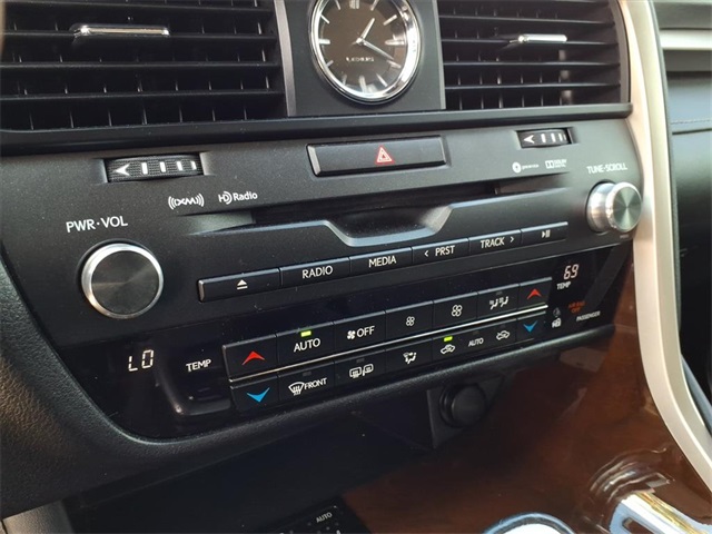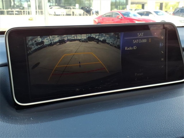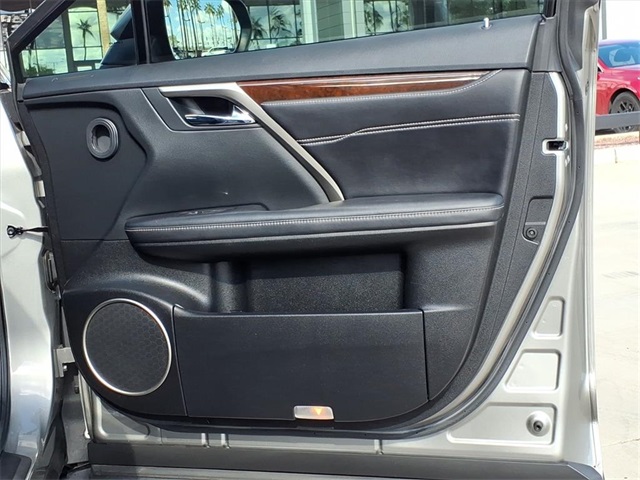 This Lexus RX is equipped with the following features: 12.3" Navigation System (Lexus Enform App Suite, Lexus Enform Destinations, and Single-Disc DVD Changer), Panoramic View Monitor w/Blind Spot Monitor (Blind Spot Monitor w/Rear Cross Traffic Alert), Premium Package (Aluminum Roof Rails, Driver Seat/Steering/Mirror Memory - 3 Settings, Leather Seat Trim, and Rear Armrest Storage Compartment), Black w/NuLuxe Seat Trim, Power Tilt & Slide Moonroof, Wheels: 20" x 8" Split 5-Spoke Dark Silver, 3.329 Axle Ratio, 4-Wheel Disc Brakes, 9 Speakers, ABS brakes, Air Conditioning, AM/FM radio: SiriusXM, Anti-whiplash front head restraints, Auto High-beam Headlights, Auto-dimming Rear-View mirror, Automatic temperature control, Backup Monitor, Brake assist, Bumpers: body-color, CD player, Compass, Delay-off headlights, Driver door bin, Driver vanity mirror, Dual front impact airbags, Dual front side impact airbags, Electronic Stability Control, Exterior Parking Camera Rear, Four wheel independent suspension, Front anti-roll bar, Front Bucket Seats, Front Center Armrest, Front dual zone A/C, Front fog lights, Front reading lights, Fully automatic headlights, Garage door transmitter: HomeLink, Heated door mirrors, Illuminated entry, Knee airbag, Leather Shift Knob, Leather steering wheel, Low tire pressure warning, NuLuxe Seat Trim, Occupant sensing airbag, Outside temperature display, Overhead airbag, Overhead console, Panic alarm, Passenger door bin, Passenger vanity mirror, Power door mirrors, Power driver seat, Power Liftgate, Power passenger seat, Power steering, Power windows, Radio data system, Radio: AM/FM/CD Lexus Display Audio, Rain sensing wipers, Rear anti-roll bar, Rear reading lights, Rear seat center armrest, Rear side impact airbag, Rear window defroster, Rear window wiper, Remote keyless entry, Security system, Speed control, Speed-sensing steering, Split folding rear seat, Spoiler, Steering wheel mounted audio controls, Tachometer, Telescoping steering wheel, Tilt steering wheel, Traction control, Trip computer, Turn signal indicator mirrors, and Variably intermittent wipers.