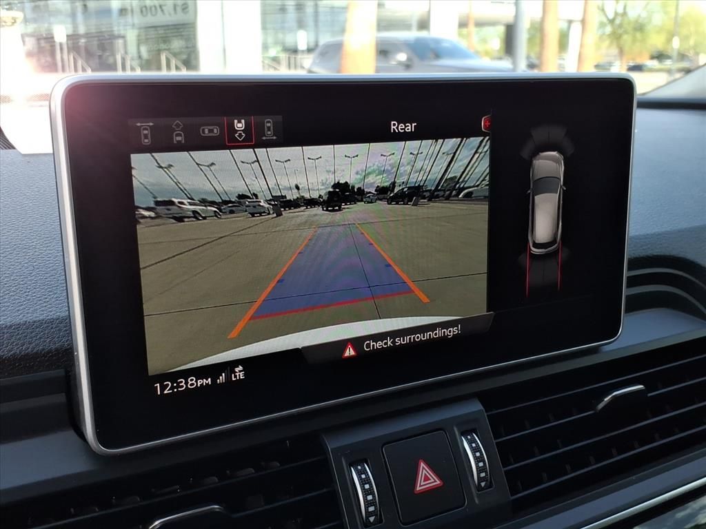 This Audi Q5 is equipped with the following features: Ambient LED Interior Lighting Plus Package, Prestige Package (3-Step Heated Front Seats, Audi Side Assist w/Pre Sense Rear, Bang & Olufsen 3D Sound System, Color Head-Up Display, Front Side Windows Dual Pane Acoustic Glass, Full LED Headlights, High Gloss Window Surrounds, Leatherette Covered Center Console & Door Armrests, Panoramic Sunroof w/Tilt/Slide & Power Sunshade, Parking System Plus (Front/Rear Acoustic Sensors), Rear Cross Traffic Assist, SiriusXM All Access Service, Stainless Steel Door Sills, Stainless Steel Trunk Sill, Top View Camera System, Vehicle Exit Assist, and Wheels: 8" x 20" 5-Spoke Segment Design), Black w/Leather Seating Surfaces, 10 Speakers, 4-Wheel Disc Brakes, 5.302 Axle Ratio, 8-Way Power Front Bucket Seats, ABS brakes, Air Conditioning, Alloy wheels, Audi smartphone interface (Apple CarPlay/Android Auto), Auto-dimming Rear-View mirror, Automatic temperature control, Brake assist, Bumpers: body-color, Compass, Delay-off headlights, Driver door bin, Driver vanity mirror, Dual front impact airbags, Dual front side impact airbags, Electronic Stability Control, Exterior Parking Camera Rear, Four wheel independent suspension, Front anti-roll bar, Front Bucket Seats, Front Center Armrest, Front dual zone A/C, Front fog lights, Front reading lights, Garage door transmitter: HomeLink, Genuine wood console insert, Genuine wood dashboard insert, Genuine wood door panel insert, Heated door mirrors, High intensity discharge headlights: Xenon plus, Illuminated entry, Leather Seating Surfaces, Leather Shift Knob, Leather steering wheel, Low tire pressure warning, Navigation System, Occupant sensing airbag, Outside temperature display, Overhead airbag, Overhead console, Panic alarm, Passenger door bin, Passenger vanity mirror, Power door mirrors, Power driver seat, Power Liftgate, Power passenger seat, Power steering, Power windows, Radio data system, Radio: MMI Navigation Plus System, Rain sensing wipers, Rear air conditioning, Rear anti-roll bar, Rear fog lights, Rear reading lights, Rear seat center armrest, Rear window defroster, Rear window wiper, Remote keyless entry, Roof rack, Security system, Speed control, Speed-sensing steering, Speed-Sensitive Wipers, Split folding rear seat, Spoiler, Steering wheel mounted audio controls, Tachometer, Telescoping steering wheel, Tilt steering wheel, Traction control, Trip computer, Turn signal indicator mirrors, Variably intermittent wipers, and Wheels: 8" x 18" 5-Double-Spoke Dynamic Design.