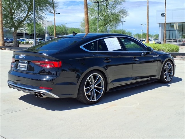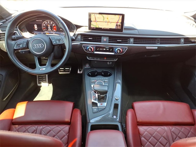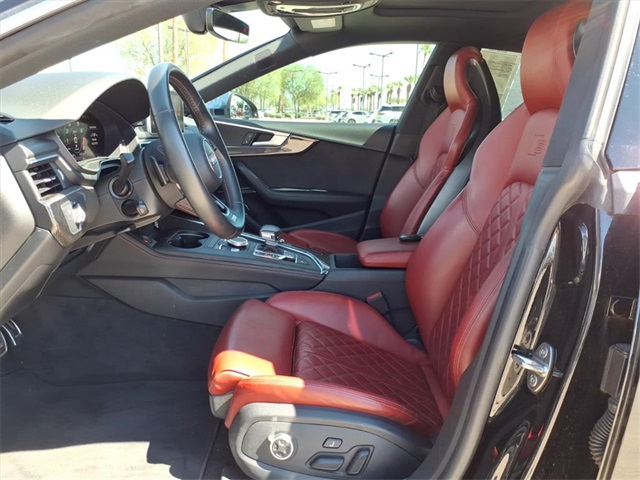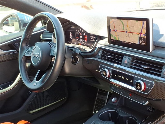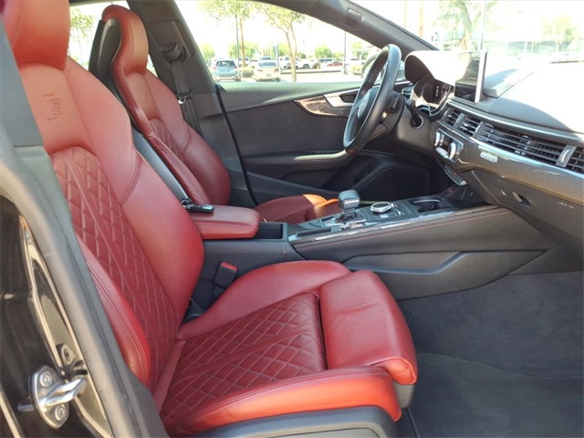 **Sun City Trade-Ins Lowest Miles Nicest Condition Vehicles in the Valley** This Audi S5 is equipped with the following features: Cold Weather Package (Heated 3-Spoke Steering Wheel w/Shift Paddles), Navigation Package (12.3" LCD Display Audi Virtual Cockpit and Audi MMI Navigation Plus w/MMI Touch), S Sport Package (Front & Rear Red Brake Calipers, Sport Adaptive Damping Suspension, and Sport Rear Differential), 10 Speakers, 4-Wheel Disc Brakes, ABS brakes, Air Conditioning, Alloy wheels, AM/FM radio: SiriusXM, Audi smartphone interface (Apple CarPlay/Android Auto), Auto High-beam Headlights, Auto-dimming door mirrors, Auto-dimming Rear-View mirror, Automatic temperature control, Bang & Olufsen Sound System w/3D Sound, Brake assist, Bumpers: body-color, Carbon Atlas Inlays, Cargo Net, Compass, Delay-off headlights, Delete Front License Plate Holder, Driver door bin, Driver vanity mirror, Dual front impact airbags, Dual front side impact airbags, Electronic Stability Control, Emergency communication system: Audi connect CARE, Exterior Parking Camera Rear, Four wheel independent suspension, Front anti-roll bar, Front Bucket Seats, Front Center Armrest, Front dual zone A/C, Front fog lights, Front reading lights, Garage door transmitter: HomeLink, Heated door mirrors, Heated Front S Sport Seats, Heated front seats, Illuminated entry, Knee airbag, Leather Shift Knob, Leather steering wheel, Leather/Alcantara Seating Surfaces, Low tire pressure warning, Memory seat, Navigation System, Occupant sensing airbag, Outside temperature display, Overhead airbag, Overhead console, Panic alarm, Passenger door bin, Passenger vanity mirror, Power door mirrors, Power driver seat, Power Liftgate, Power moonroof, Power passenger seat, Power steering, Power windows, Radio data system, Radio: Audi Sound System, Rain sensing wipers, Rear air conditioning, Rear anti-roll bar, Rear reading lights, Rear seat center armrest, Rear window defroster, Remote keyless entry, Security system, Speed control, Speed-sensing steering, Speed-Sensitive Wipers, Split folding rear seat, Spoiler, Sport steering wheel, Steering wheel mounted audio controls, Tachometer, Telescoping steering wheel, Tilt steering wheel, Traction control, Trip computer, Turn signal indicator mirrors, Variably intermittent wipers, Wheels: 18" x 8.5" 5-Double-Spoke-Star Design, and Wheels: 19" x 8.5" 5-Spoke-Cavo Design.