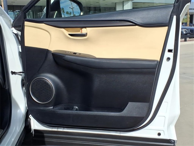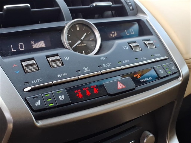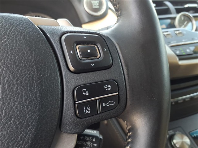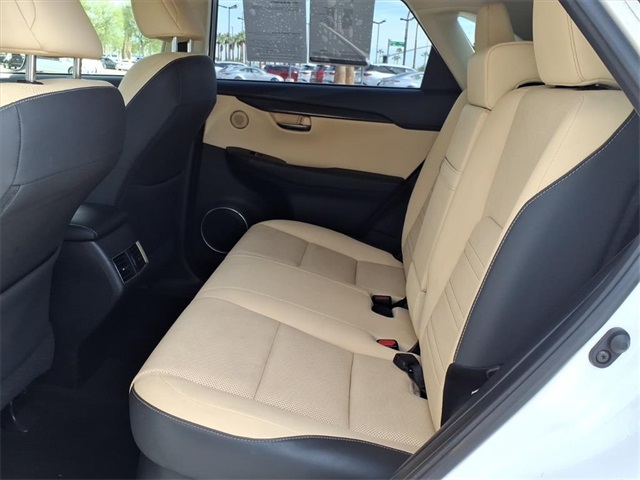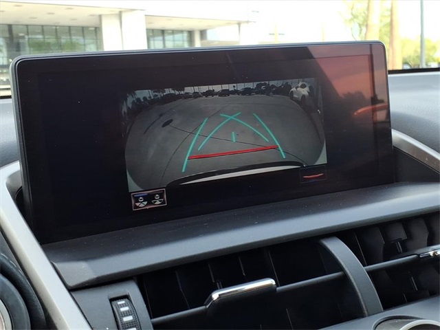 This Lexus NX is equipped with the following features: ABS brakes, Active Cruise Control, Alloy wheels, Compass, Electronic Stability Control, Front dual zone A/C, Heated door mirrors, Illuminated entry, Low tire pressure warning, Remote keyless entry, Traction control, 17" x 7" Alloy Wheels, 4-Wheel Disc Brakes, 8 Speakers, Air Conditioning, AM/FM radio: SiriusXM, Auto High-beam Headlights, Automatic temperature control, Axle Ratio: 3.888, Brake assist, Bumpers: body-color, CD player, Delay-off headlights, Driver door bin, Driver vanity mirror, Dual front impact airbags, Dual front side impact airbags, Emergency communication system: Lexus Enform w/Safety Connect, Exterior Parking Camera Rear, Four wheel independent suspension, Front anti-roll bar, Front Bucket Seats, Front Center Armrest, Front fog lights, Front reading lights, Fully automatic headlights, High Clearance Lamp, Knee airbag, Leather Shift Knob, Leather steering wheel, NuLuxe Seat Trim, Occupant sensing airbag, Outside temperature display, Overhead airbag, Overhead console, Panic alarm, Passenger door bin, Passenger vanity mirror, Power door mirrors, Power driver seat, Power passenger seat, Power steering, Power windows, Radio data system, Radio: AM/FM/CD Lexus Display Audio, Rear anti-roll bar, Rear seat center armrest, Rear window defroster, Rear window wiper, Roof rack: rails only, Security system, Speed control, Speed-sensing steering, Split folding rear seat, Spoiler, Steering wheel mounted audio controls, Tachometer, Telescoping steering wheel, Tilt steering wheel, Trip computer, Turn signal indicator mirrors, and Variably intermittent wipers.