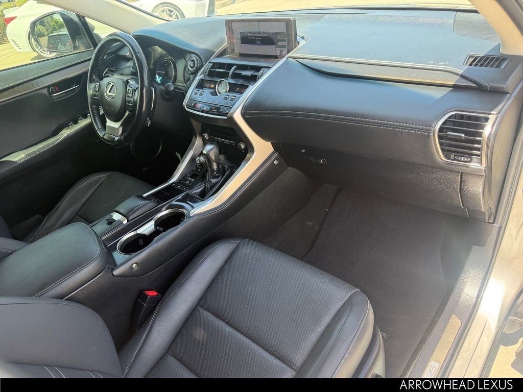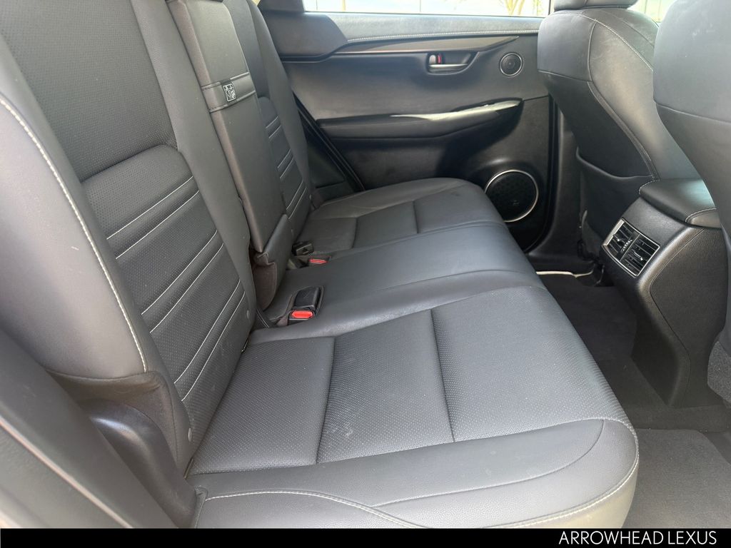 This Lexus NX is equipped with the following features: Premium Package (Blind Spot Monitor w/Rear Cross Traffic Alert, Driver's Seat Memory, Heated & Ventilated Front Seats, Heated Electrochromic Outside Mirrors, High Clearance Lamp, Power Tilt & Slide Moonroof/Sunroof, Power Tilt & Telescopic Steering Column, and Wheels: 18" x 7.5" 5-Spoke Alloy), 2.5L I4 DOHC 16V, 4-Wheel Disc Brakes, 8 Speakers, ABS brakes, Air Conditioning, Alloy wheels, AM/FM radio: SiriusXM, Auto High-beam Headlights, Automatic temperature control, Axle Ratio: 3.54, Brake assist, Bumpers: body-color, CD player, Compass, Delay-off headlights, Driver door bin, Driver vanity mirror, Dual front impact airbags, Dual front side impact airbags, Electronic Stability Control, Emergency communication system: Lexus Enform w/Safety Connect, Exterior Parking Camera Rear, Four wheel independent suspension, Front anti-roll bar, Front Bucket Seats, Front Center Armrest, Front dual zone A/C, Front fog lights, Front reading lights, Fully automatic headlights, Heated door mirrors, Illuminated entry, Knee airbag, Leather Shift Knob, Leather steering wheel, Low tire pressure warning, NuLuxe Seat Trim, Occupant sensing airbag, Outside temperature display, Overhead airbag, Overhead console, Panic alarm, Passenger door bin, Passenger vanity mirror, Power door mirrors, Power driver seat, Power passenger seat, Power steering, Power windows, Radio data system, Radio: AM/FM/CD/HD Lexus Display Audio, Rear anti-roll bar, Rear seat center armrest, Rear window defroster, Rear window wiper, Remote keyless entry, Roof rack: rails only, Security system, Speed control, Speed-sensing steering, Split folding rear seat, Spoiler, Steering wheel mounted audio controls, Telescoping steering wheel, Tilt steering wheel, Traction control, Trip computer, Turn signal indicator mirrors, Variably intermittent wipers, and Wheels: 17" x 7" 10-Spoke Alloy.