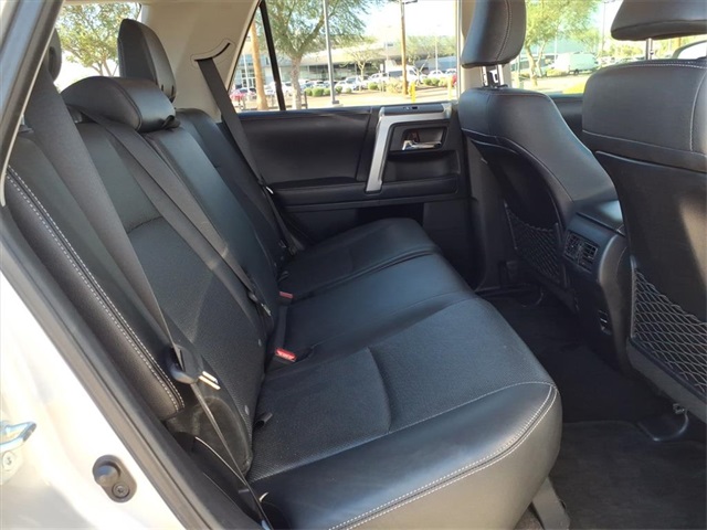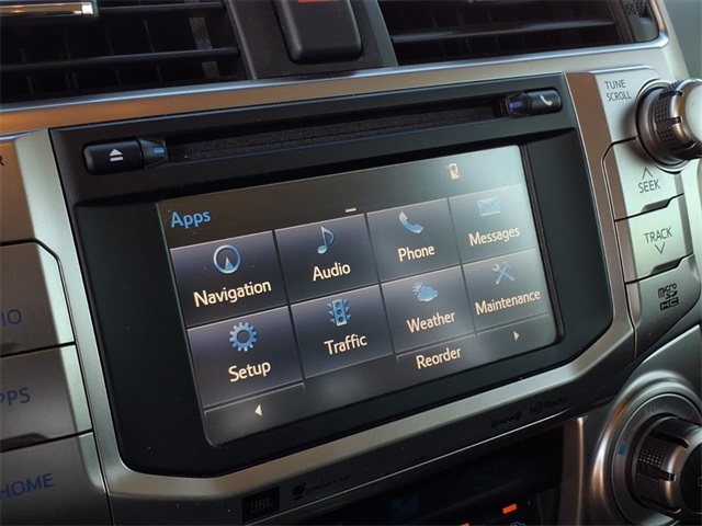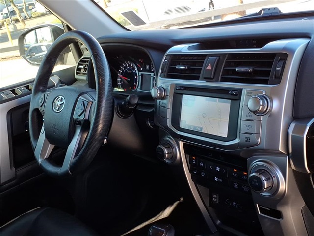 This Toyota 4Runner is equipped with the following features: Limited Package (Auto-Dimming Rear-View Mirror, Body Color Heated Mirrors, Garage Door Opener, Moonroof w/Tilt Up & Slide, and Right & Left Individual Air Conditioner), 4WD, Black Graphite w/Leather Seat Trim, 15 Speakers, 20" x 7.5" Unique Dual 6-Spoke Alloy Wheels, 3.727 Axle Ratio, 4-Wheel Disc Brakes, ABS brakes, Air Conditioning, Alloy wheels, AM/FM radio: SiriusXM, Anti-whiplash front head restraints, Auto-dimming Rear-View mirror, Automatic temperature control, Brake assist, Bumpers: body-color, CD player, Compass, Delay-off headlights, Driver door bin, Driver vanity mirror, Dual front impact airbags, Dual front side impact airbags, Electronic Stability Control, Emergency communication system: Safety Connect, Exterior Parking Camera Rear, Front anti-roll bar, Front Bucket Seats, Front Center Armrest, Front dual zone A/C, Front fog lights, Front reading lights, Front wheel independent suspension, Fully automatic headlights, Garage door transmitter: HomeLink, Heated door mirrors, Heated front seats, Heated/Ventilated Front Bucket Seats, Illuminated entry, Knee airbag, Leather Seat Trim, Leather Shift Knob, Low tire pressure warning, Memory seat, Navigation System, Occupant sensing airbag, Outside temperature display, Overhead airbag, Overhead console, Panic alarm, Passenger door bin, Passenger vanity mirror, Power door mirrors, Power driver seat, Power moonroof, Power passenger seat, Power steering, Power windows, Radio: Entune Premium JBL Audio w/Navigation, Rear anti-roll bar, Rear seat center armrest, Rear window defroster, Rear window wiper, Remote keyless entry, Roof rack: rails only, Security system, Speed control, Speed-sensing steering, Split folding rear seat, Spoiler, Steering wheel mounted audio controls, Tachometer, Telescoping steering wheel, Tilt steering wheel, Traction control, Trip computer, Turn signal indicator mirrors, Variably intermittent wipers, and Ventilated front seats.