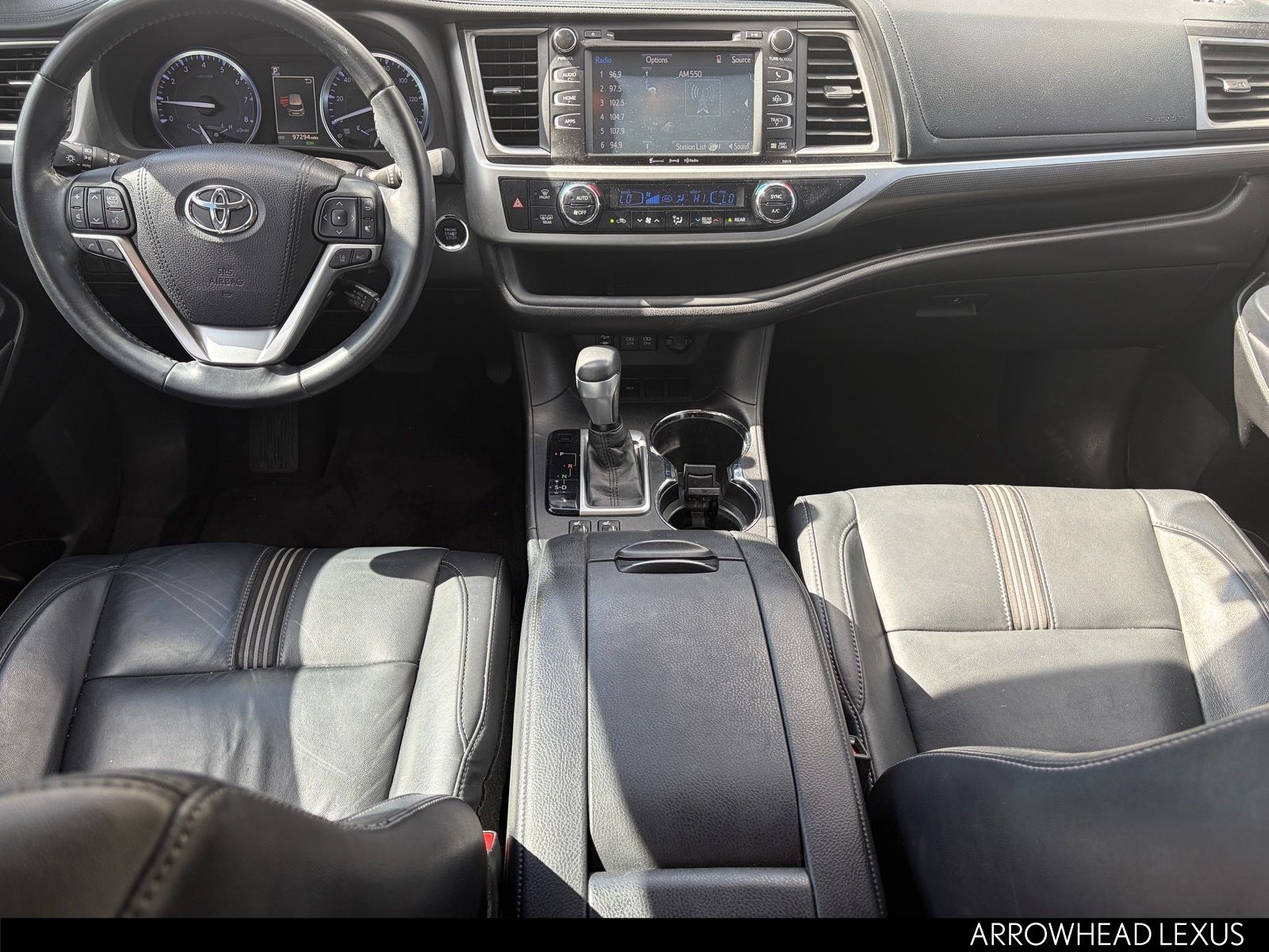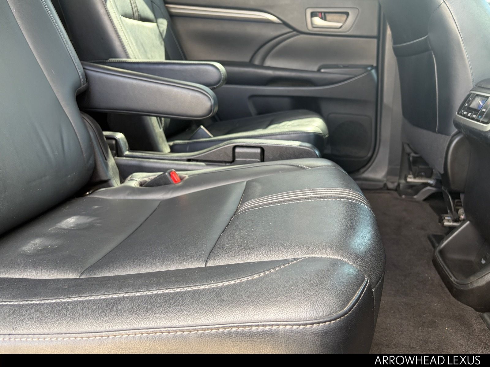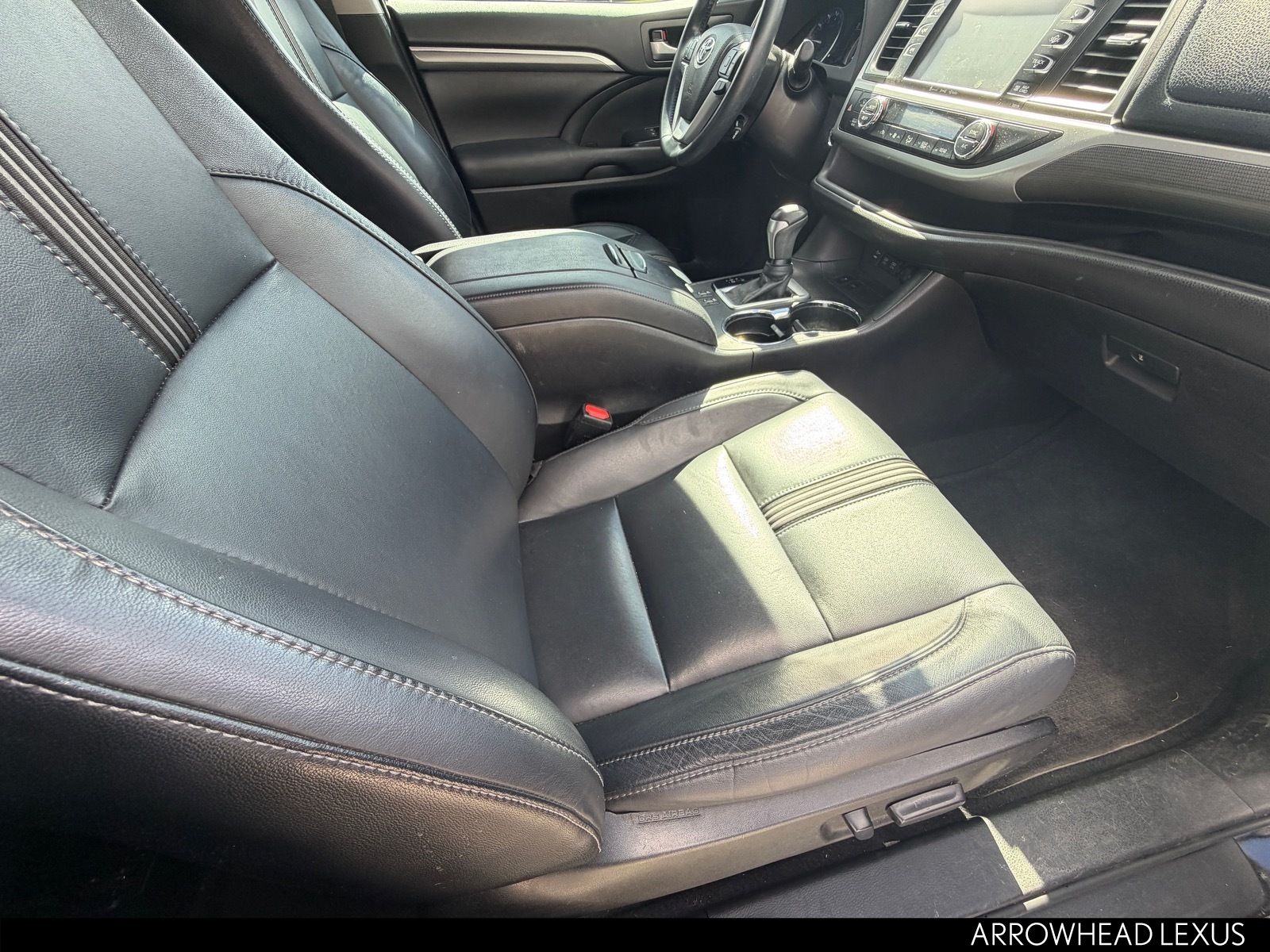 This Toyota Highlander is equipped with the following features: SE Package (Black Roof Rails), 3rd row seats: split-bench, 4-Wheel Disc Brakes, 6 Speakers, ABS brakes, Air Conditioning, Alloy wheels, AM/FM radio: SiriusXM, Auto High-beam Headlights, Auto-dimming Rear-View mirror, Automatic temperature control, Brake assist, Bumpers: body-color, CD player, Delay-off headlights, Driver door bin, Driver vanity mirror, Dual front impact airbags, Dual front side impact airbags, Electronic Stability Control, Exterior Parking Camera Rear, Four wheel independent suspension, Front anti-roll bar, Front Bucket Seats, Front Center Armrest, Front dual zone A/C, Front fog lights, Front reading lights, Fully automatic headlights, Garage door transmitter, Heated door mirrors, Heated front seats, Illuminated entry, Knee airbag, Leather Seat Trim, Leather Shift Knob, Low tire pressure warning, Navigation System, Occupant sensing airbag, Outside temperature display, Overhead airbag, Overhead console, Panic alarm, Passenger door bin, Passenger vanity mirror, Power door mirrors, Power driver seat, Power Liftgate, Power moonroof, Power passenger seat, Power steering, Power windows, Radio: Entune Premium Audio w/Nav & App Suite, Rear air conditioning, Rear anti-roll bar, Rear reading lights, Rear window defroster, Rear window wiper, Reclining 3rd row seat, Remote keyless entry, Roof rack: rails only, Security system, Speed control, Speed-sensing steering, Split folding rear seat, Spoiler, Steering wheel mounted audio controls, Tachometer, Telescoping steering wheel, Tilt steering wheel, Traction control, Trip computer, Turn signal indicator mirrors, Variably intermittent wipers, and Wheels: 19" Multi-Spoke Machined-Face Alloy.