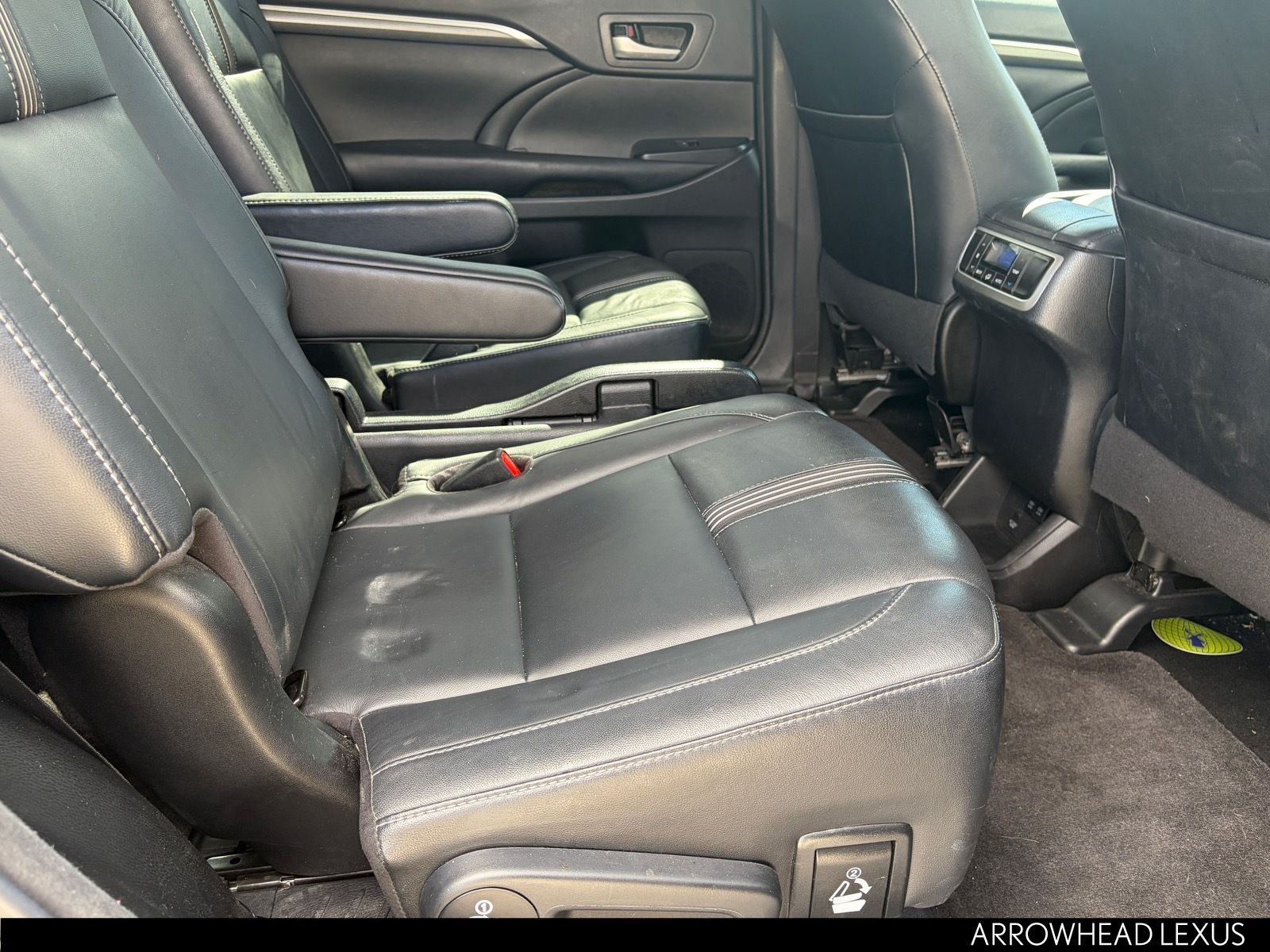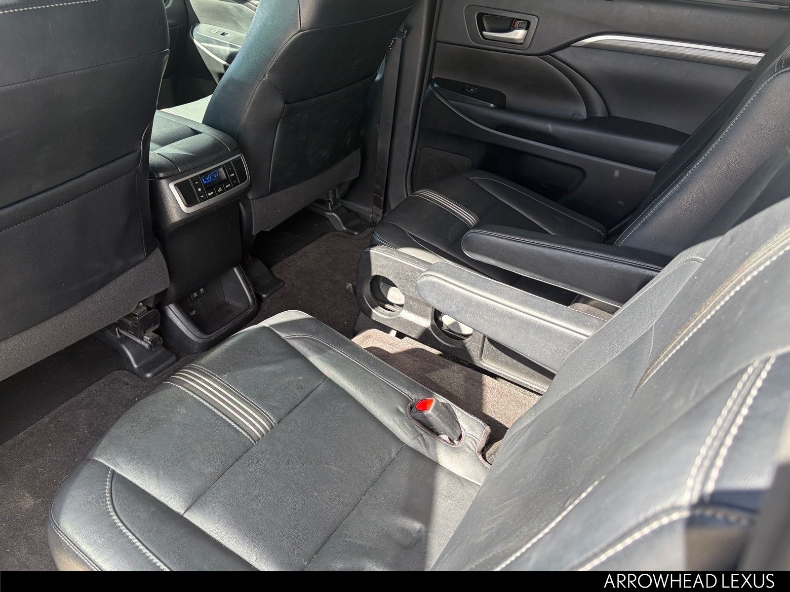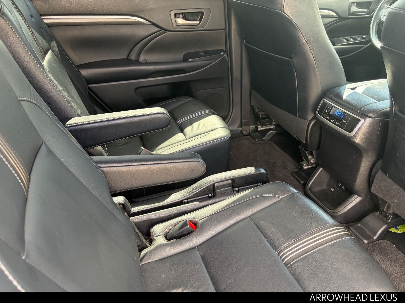 This Toyota Highlander is equipped with the following features: SE Package (Black Roof Rails), 3rd row seats: split-bench, 4-Wheel Disc Brakes, 6 Speakers, ABS brakes, Air Conditioning, Alloy wheels, AM/FM radio: SiriusXM, Auto High-beam Headlights, Auto-dimming Rear-View mirror, Automatic temperature control, Brake assist, Bumpers: body-color, CD player, Delay-off headlights, Driver door bin, Driver vanity mirror, Dual front impact airbags, Dual front side impact airbags, Electronic Stability Control, Exterior Parking Camera Rear, Four wheel independent suspension, Front anti-roll bar, Front Bucket Seats, Front Center Armrest, Front dual zone A/C, Front fog lights, Front reading lights, Fully automatic headlights, Garage door transmitter, Heated door mirrors, Heated front seats, Illuminated entry, Knee airbag, Leather Seat Trim, Leather Shift Knob, Low tire pressure warning, Navigation System, Occupant sensing airbag, Outside temperature display, Overhead airbag, Overhead console, Panic alarm, Passenger door bin, Passenger vanity mirror, Power door mirrors, Power driver seat, Power Liftgate, Power moonroof, Power passenger seat, Power steering, Power windows, Radio: Entune Premium Audio w/Nav & App Suite, Rear air conditioning, Rear anti-roll bar, Rear reading lights, Rear window defroster, Rear window wiper, Reclining 3rd row seat, Remote keyless entry, Roof rack: rails only, Security system, Speed control, Speed-sensing steering, Split folding rear seat, Spoiler, Steering wheel mounted audio controls, Tachometer, Telescoping steering wheel, Tilt steering wheel, Traction control, Trip computer, Turn signal indicator mirrors, Variably intermittent wipers, and Wheels: 19" Multi-Spoke Machined-Face Alloy.