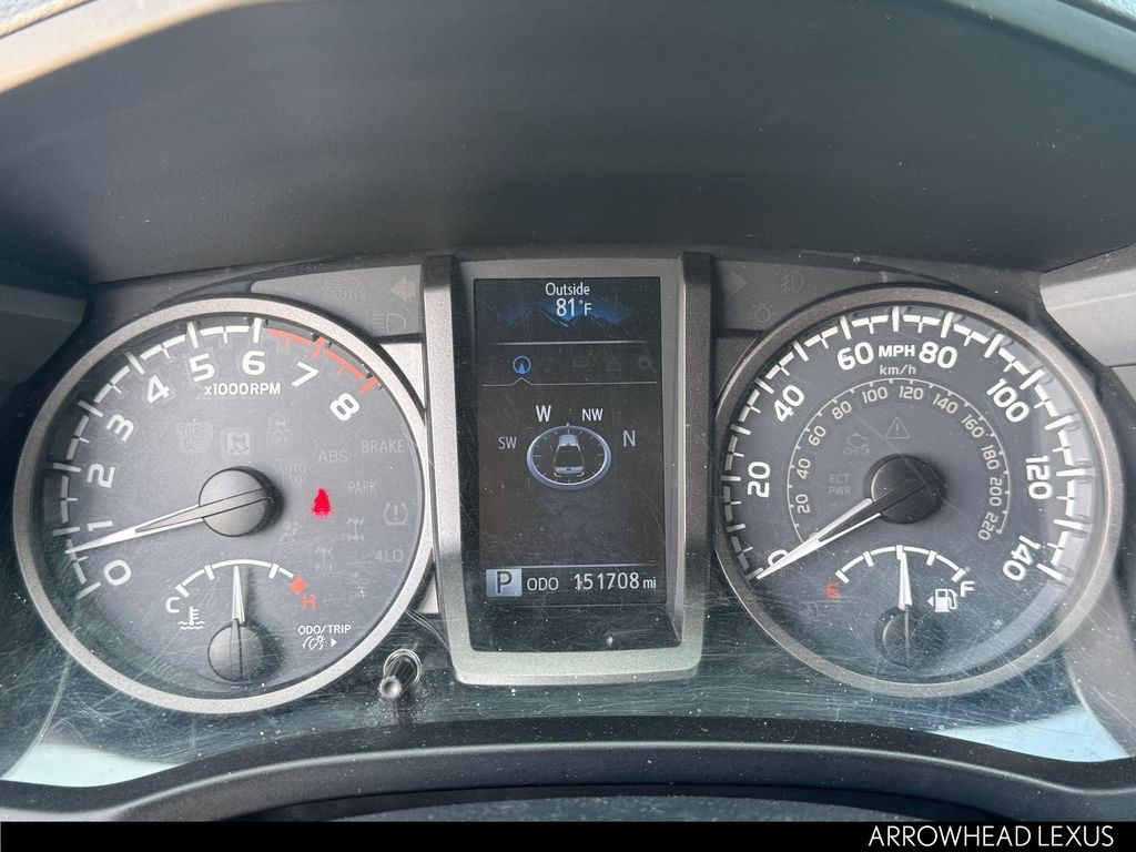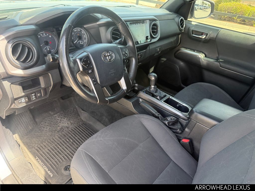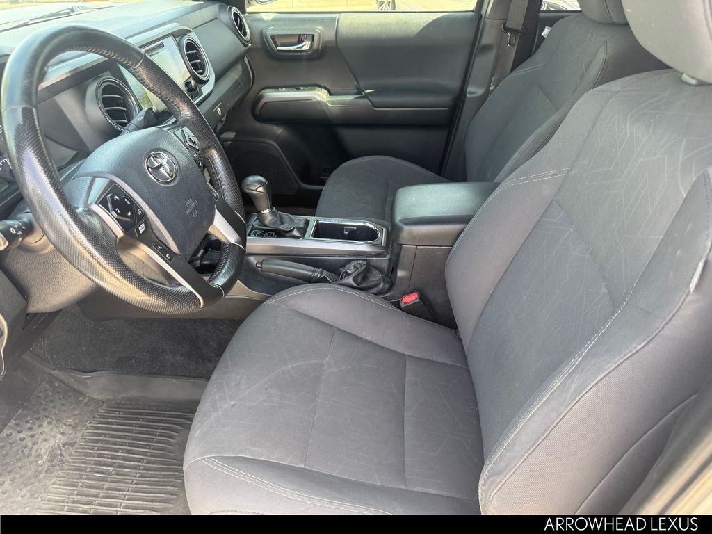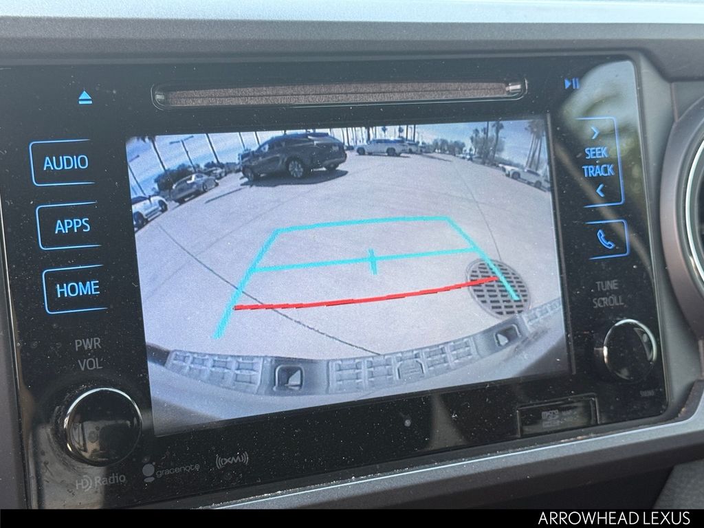 This Toyota Tacoma is equipped with the following features: Carpet Floor Mats & Door Sill Protectors Package (Door Sill Protectors), Technology Package (Blind Spot Monitor w/Rear Cross Traffic Alert, Color Keyed Rear Bumper, and Rear Parking Assist Sonar), TRD Off Road Package (OC) (120V/400W Deck Mounted AC Power, Auto-Dimming Inside Rear-View Mirror w/Compass, Black Overfenders, Engine Immobilizer, LED Daytime Running Lamps, Power Sliding Rear Window w/Privacy Glass, Smart Key w/Push Button Start, Variable Intermittent Wipers, and Wide Angle Front Fog Lamps), 4WD, 6 Speakers, ABS brakes, Air Conditioning, Alloy Wheel Locks, Alloy wheels, AM/FM radio: SiriusXM, Anti-whiplash front head restraints, Auto High-beam Headlights, Auto-dimming Rear-View mirror, Axle Ratio: 3.91, Brake assist, Bumpers: body-color, CD player, Chrome Rear Bumper, Compass, Driver door bin, Dual front impact airbags, Dual front side impact airbags, Dual Zone Automatic Climate Control, Electronic Stability Control, Exhaust Tip, Exterior Parking Camera Rear, Fabric Seat Trim (FD), Front anti-roll bar, Front Bucket Seats, Front Center Armrest, Front fog lights, Front reading lights, Front wheel independent suspension, Illuminated entry, Knee airbag, Leather Seat Trim, Leather Shift Knob, Low tire pressure warning, Mini Tie Downs w/Hooks, Mudguards, Navigation System, Occupant sensing airbag, Outside temperature display, Overhead airbag, Overhead console, Panic alarm, Passenger door bin, Power door mirrors, Power steering, Power windows, Radio: Entune Premium JBL AM/FM/CD w/Nav & App Ste, Radio: Entune Premium w/AM/FM/CD/Nav/App Suite, Rear step bumper, Remote keyless entry, Remote Keyless Entry System, Security system, Speed control, Speed-sensing steering, Split folding rear seat, Steering wheel mounted audio controls, Tachometer, Telescoping steering wheel, Tilt steering wheel, Traction control, Trip computer, Truck Bed D-Rings, Turn signal indicator mirrors, Variably intermittent wipers, and Wheels: 16" x 7" Machined Contrast Alloy.