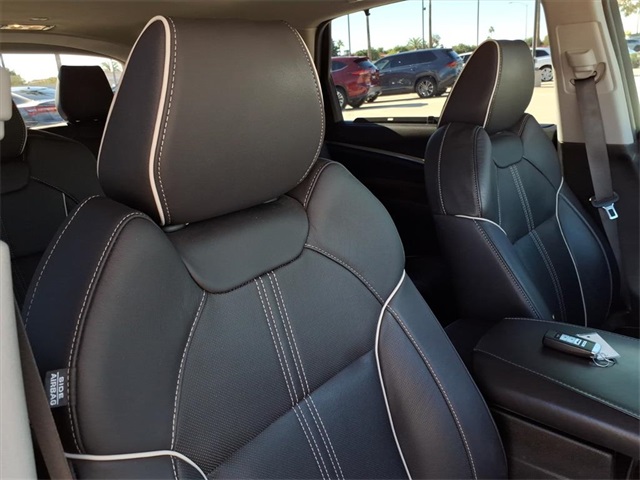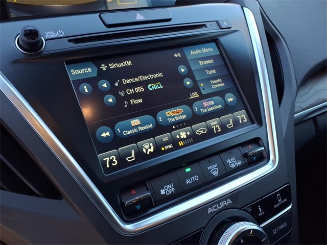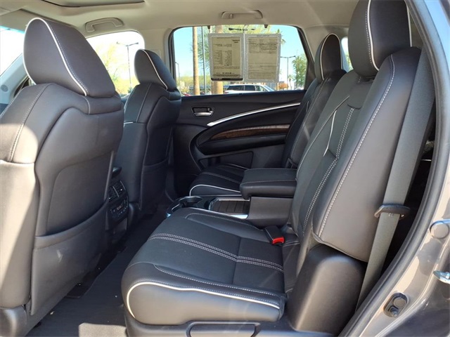 This Acura MDX is equipped with the following features: Ebony w/Perforated Milano Leather & Alcantara, 12 Speakers, 3rd row seats: bench, 4-Wheel Disc Brakes, 4.33 Axle Ratio, ABS brakes, Adaptive suspension, Air Conditioning, Alloy wheels, AM/FM radio: SiriusXM, Anti-whiplash front head restraints, Apple CarPlay/Android Auto, Audio memory, Auto High-beam Headlights, Auto tilt-away steering wheel, Auto-dimming door mirrors, Auto-dimming Rear-View mirror, Automatic temperature control, Brake assist, Bumpers: body-color, CD player, Compass, Delay-off headlights, Driver door bin, Driver vanity mirror, Dual front impact airbags, Dual front side impact airbags, Electronic Stability Control, Emergency communication system: AcuraLink, Four wheel independent suspension, Front anti-roll bar, Front Bucket Seats, Front Center Armrest, Front dual zone A/C, Front fog lights, Front reading lights, Garage door transmitter: HomeLink, Genuine wood console insert, Genuine wood dashboard insert, Genuine wood door panel insert, Heated & Ventilated Front Sport Seats, Heated door mirrors, Heated front seats, Heated rear seats, Heated steering wheel, HVAC memory, Illuminated entry, Knee airbag, Lane departure: Lane Keeping Assist System (LKAS) active, Leather steering wheel, Low tire pressure warning, Memory seat, Navigation System, Occupant sensing airbag, Outside temperature display, Overhead airbag, Overhead console, Panic alarm, Passenger door bin, Passenger vanity mirror, Perf Milano Leather w/Contrast Stitching & Piping, Power door mirrors, Power driver seat, Power Liftgate, Power moonroof, Power passenger seat, Power steering, Power windows, Premium audio system: Acura/ELS Surround, Radio data system, Radio: Acura/ELS Studio Premium Audio System, Rain sensing wipers, Rear air conditioning, Rear anti-roll bar, Rear reading lights, Rear seat center armrest, Rear window defroster, Rear window wiper, Remote keyless entry, Roof rack: rails only, Security system, Speed control, Speed-sensing steering, Speed-Sensitive Wipers, Split folding rear seat, Spoiler, Steering wheel memory, Steering wheel mounted audio controls, Tachometer, Telescoping steering wheel, Tilt steering wheel, Traction control, Trip computer, Turn signal indicator mirrors, Variably intermittent wipers, Ventilated front seats, and Wheels: 20" x 8.5" Shark Gray Split 5-Spoke.