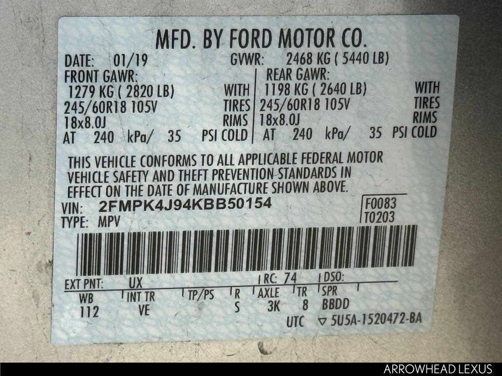 - VIN : 2FMPK4J94KBB50154