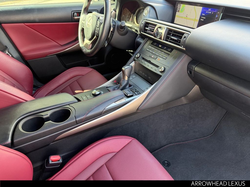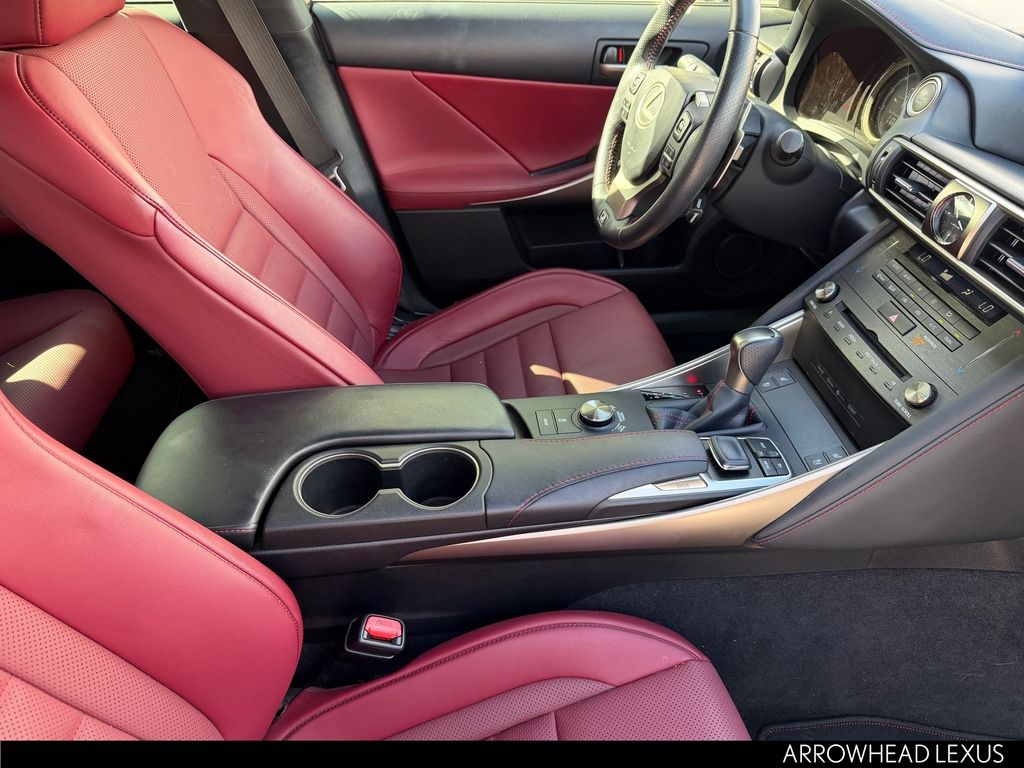 This Lexus IS is equipped with the following features: F SPORT Package (Aluminum Sport Pedals, Black Headliner, F SPORT NuLuxe Seat Trim, F SPORT Tuned Adaptive Variable Suspension (AVS), F SPORT Tuned Suspension, Heated & Ventilated Front F SPORT Seats, High-Friction Front Brake Pads, Intake Sound Generator, LFA Inspired TFT Instrumentation, Locking Glove Box, Low & High Beam Twin Projector LED Headlamps, Side & Rear F SPORT Badging, Silver Performance Trim, Stainless Steel Scuff Plates, Torsen Limited-Slip Differential, Unique Front Fascia/Grille, Unique Rear Bumper, and Wheels: 18" F SPORT Split 5-Spoke Alloy), Navigation Package (Lexus Enform App Suite (Subscription Free), Lexus Enform Destinations, Lexus Insider, and Radio: Lexus Display Audio w/Navigation System), Accessory Package 2 (Alloy Wheel Locks, Cargo Net, Carpet Trunk Mat, Key Gloves, and Rear Bumper Applique), Rioja Red Premium Synthetic, 4-Wheel Disc Brakes, 8 Speakers, ABS brakes, Air Conditioning, Alloy wheels, AM/FM radio: SiriusXM, Auto High-beam Headlights, Auto-dimming door mirrors, Auto-dimming Rear-View mirror, Automatic temperature control, Brake assist, Bumpers: body-color, CD player, Compass, Delay-off headlights, Driver door bin, Driver vanity mirror, Dual front impact airbags, Dual front side impact airbags, Electronic Stability Control, Emergency communication system: Lexus Enform w/Safety Connect, Exterior Parking Camera Rear, Four wheel independent suspension, Front anti-roll bar, Front Bucket Seats, Front Center Armrest, Front dual zone A/C, Front fog lights, Front reading lights, Fully automatic headlights, Garage door transmitter: HomeLink, Heated door mirrors, Illuminated entry, Knee airbag, Low tire pressure warning, NuLuxe Seat Trim, Occupant sensing airbag, Outside temperature display, Overhead airbag, Overhead console, Panic alarm, Passenger door bin, Passenger vanity mirror, Power door mirrors, Power driver seat, Power moonroof, Power passenger seat, Power steering, Power windows, Radio data system, Rear anti-roll bar, Rear reading lights, Rear seat center armrest, Rear side impact airbag, Rear window defroster, Remote keyless entry, Security system, Speed control, Speed-sensing steering, Speed-Sensitive Wipers, Split folding rear seat, Steering wheel mounted audio controls, Tachometer, Telescoping steering wheel, Tilt steering wheel, Traction control, Trip computer, Turn signal indicator mirrors, Variably intermittent wipers, and Wheels: 18" x 8" Fr & 18" x 8.5" Rr 5-Spoke Alloy.