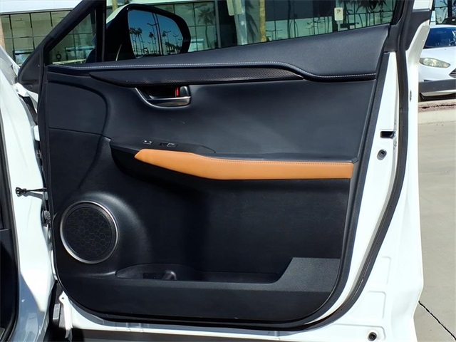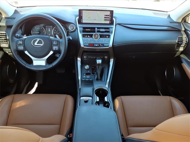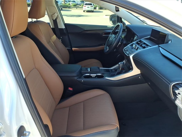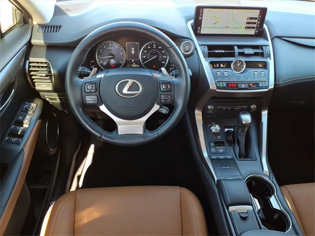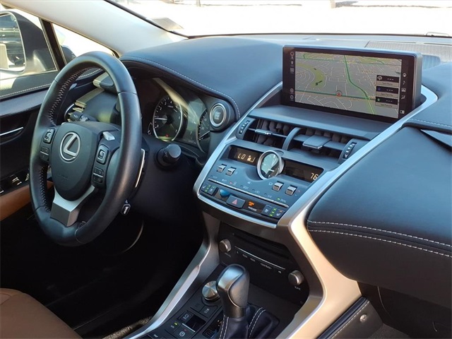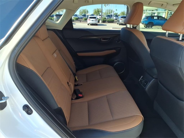 This Lexus NX is equipped with the following features: Comfort Package (Blind Spot Monitor w/Rear Cross Traffic Alert, Electrochromic Mirrors, and Heated & Ventilated Front Seats), Premium Package (18" x 7.5" Alloy Wheels, Driver's Seat Memory, High Clearance Lamp, Power Tilt & Slide Moonroof/Sunroof, and Power Tilt & Telescopic Steering Column), 2 Additional Speakers, ABS brakes, Active Cruise Control, Alloy wheels, Compass, Electrochromic Rearview Mirror w/HomeLink, Electronic Stability Control, Front dual zone A/C, Heated door mirrors, Heated Leather Steering Wheel w/Paddle, HomeLink Universal Transceiver, Illuminated entry, Lexus Enform App Suite 2.0, Lexus Enform Destination Assist, Lexus Insider, Low tire pressure warning, Navigation System, Power Rear Door, Remote keyless entry, SD Navigation System, Traction control, 17" x 7" Alloy Wheels, 4-Wheel Disc Brakes, 8 Speakers, Air Conditioning, AM/FM radio: SiriusXM, Auto High-beam Headlights, Automatic temperature control, Axle Ratio: 3.888, Brake assist, Bumpers: body-color, CD player, Delay-off headlights, Driver door bin, Driver vanity mirror, Dual front impact airbags, Dual front side impact airbags, Emergency communication system: Lexus Enform w/Safety Connect, Enform Wi-Fi, Exterior Parking Camera Rear, Four wheel independent suspension, Front anti-roll bar, Front Bucket Seats, Front Center Armrest, Front fog lights, Front reading lights, Fully automatic headlights, Knee airbag, Leather Shift Knob, Leather steering wheel, NuLuxe Seat Trim, Occupant sensing airbag, Outside temperature display, Overhead airbag, Overhead console, Panic alarm, Passenger door bin, Passenger vanity mirror, Power door mirrors, Power driver seat, Power passenger seat, Power steering, Power windows, Radio data system, Radio: AM/FM/CD Lexus Display Audio, Rear anti-roll bar, Rear seat center armrest, Rear window defroster, Rear window wiper, Roof rack: rails only, Security system, Speed control, Speed-sensing steering, Split folding rear seat, Spoiler, Steering wheel mounted audio controls, Tachometer, Telescoping steering wheel, Tilt steering wheel, Trip computer, Turn signal indicator mirrors, and Variably intermittent wipers.