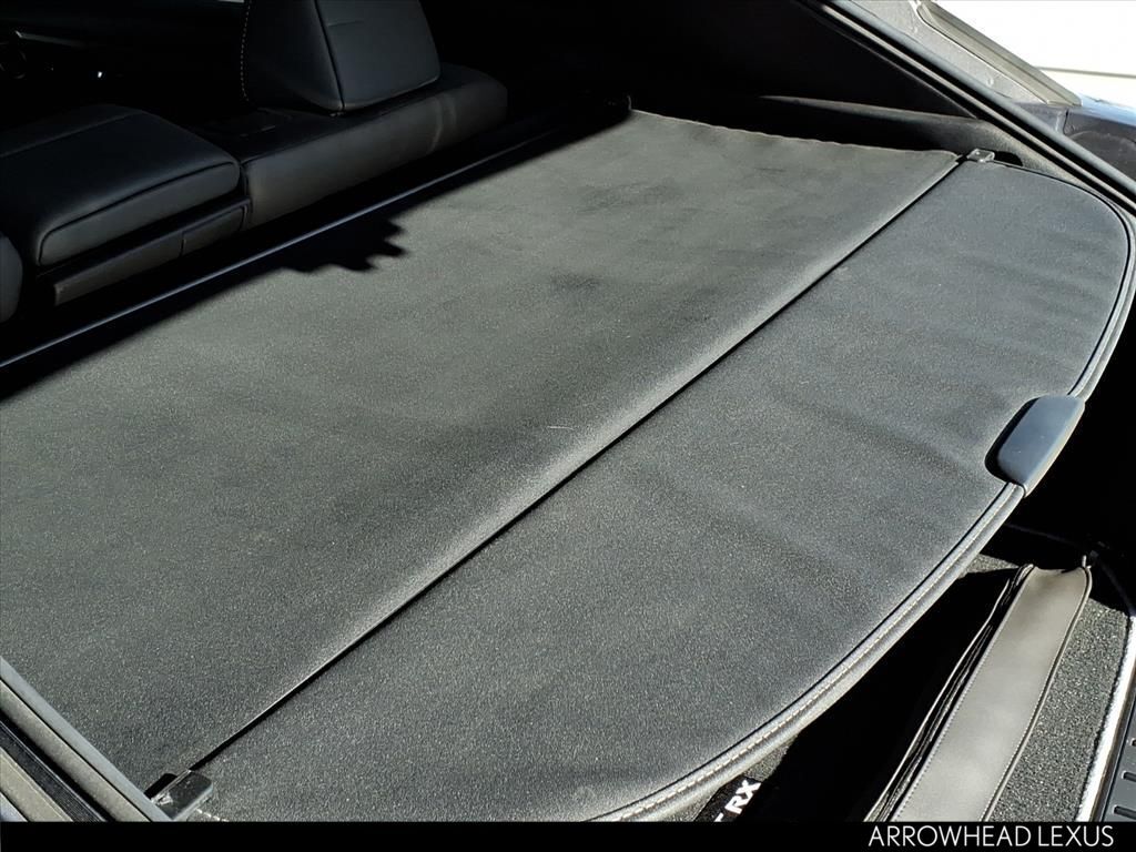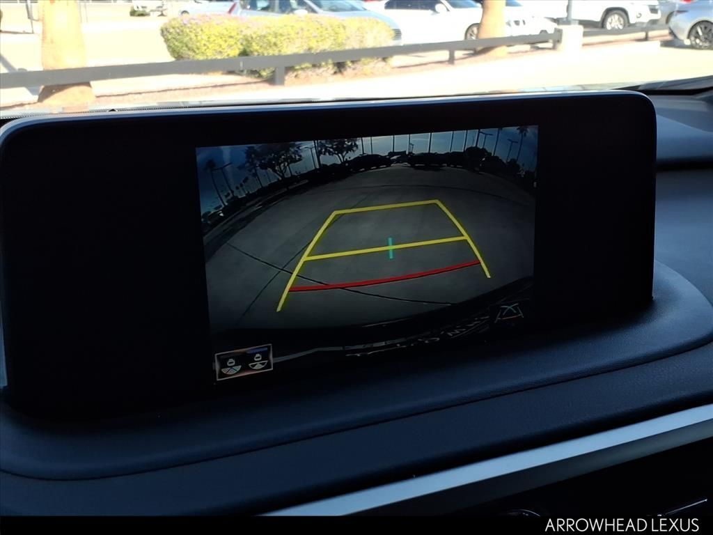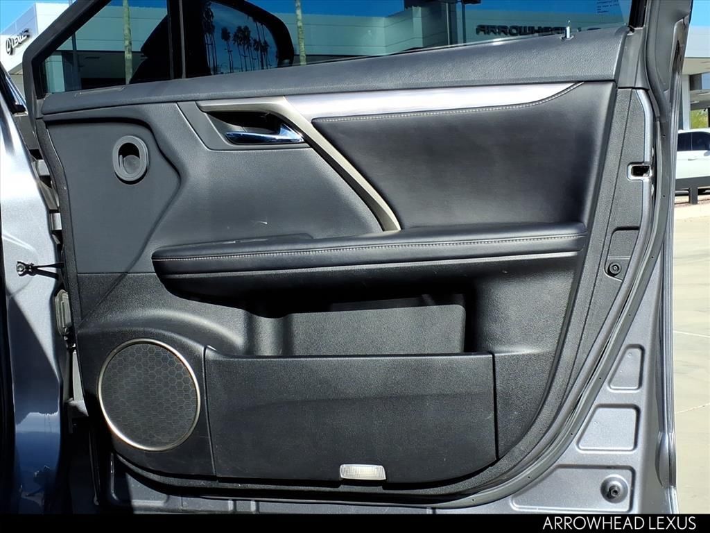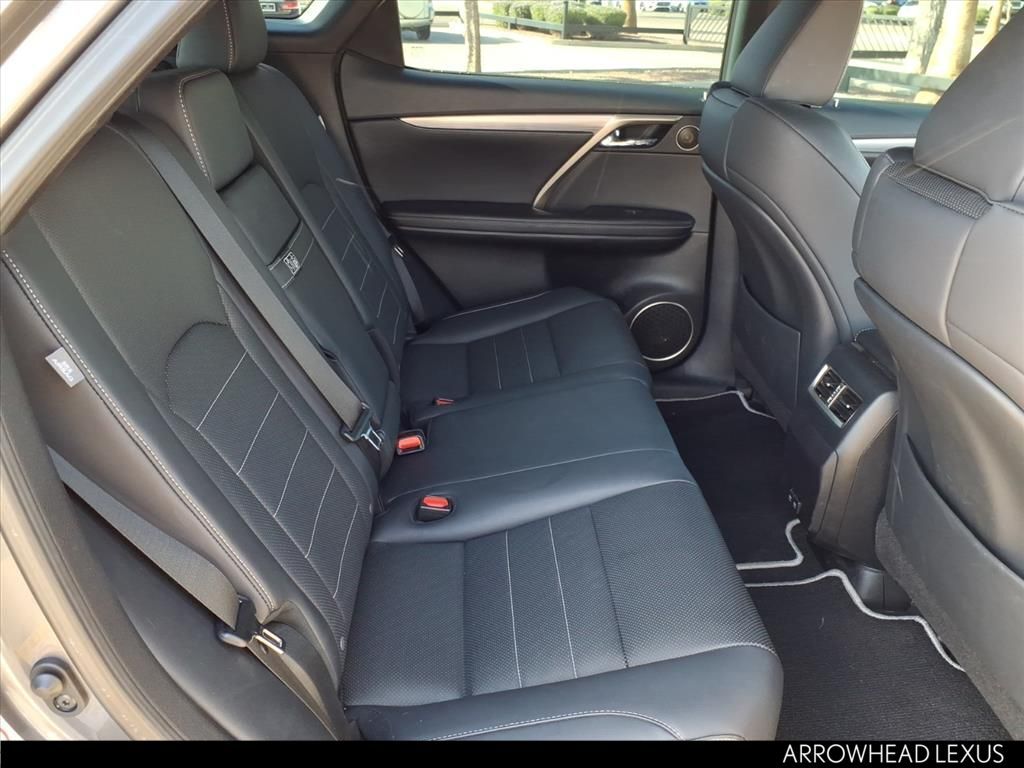 This Lexus RX is equipped with the following features: F SPORT Performance Package, AWD, Black w/F SPORT NuLuxe Seat Trim, 3.329 Axle Ratio, 4-Wheel Disc Brakes, 9 Speakers, ABS brakes, Adaptive suspension, Air Conditioning, Alloy wheels, AM/FM radio: SiriusXM, AM/FM/CD Radio, Anti-whiplash front head restraints, Apple CarPlay/Android Auto, Auto High-beam Headlights, Auto tilt-away steering wheel, Auto-dimming door mirrors, Auto-dimming Rear-View mirror, Automatic temperature control, Brake assist, Bumpers: body-color, CD player, Compass, Delay-off headlights, Driver door bin, Driver vanity mirror, Dual front impact airbags, Dual front side impact airbags, Electronic Stability Control, Emergency communication system: Lexus Enform Safety Connect, Exterior Parking Camera Rear, F SPORT NuLuxe Seat Trim, Four wheel independent suspension, Front anti-roll bar, Front Bucket Seats, Front Center Armrest, Front dual zone A/C, Front fog lights, Front reading lights, Fully automatic headlights, Garage door transmitter: HomeLink, Heated & Ventilated Front Bucket Seats, Heated door mirrors, Heated front seats, Heated steering wheel, Illuminated entry, Knee airbag, Leather Shift Knob, Leather steering wheel, Low tire pressure warning, Memory seat, Occupant sensing airbag, Outside temperature display, Overhead airbag, Overhead console, Panic alarm, Passenger door bin, Passenger vanity mirror, Power door mirrors, Power driver seat, Power Liftgate, Power passenger seat, Power steering, Power windows, Radio data system, Rain sensing wipers, Rear anti-roll bar, Rear reading lights, Rear seat center armrest, Rear side impact airbag, Rear window defroster, Rear window wiper, Remote keyless entry, Security system, Speed control, Speed-sensing steering, Split folding rear seat, Spoiler, Sport steering wheel, Steering wheel memory, Steering wheel mounted audio controls, Tachometer, Telescoping steering wheel, Tilt steering wheel, Traction control, Trip computer, Turn signal indicator mirrors, Variably intermittent wipers, Ventilated front seats, and Wheels: 20" Split-10-Spoke Alloy.