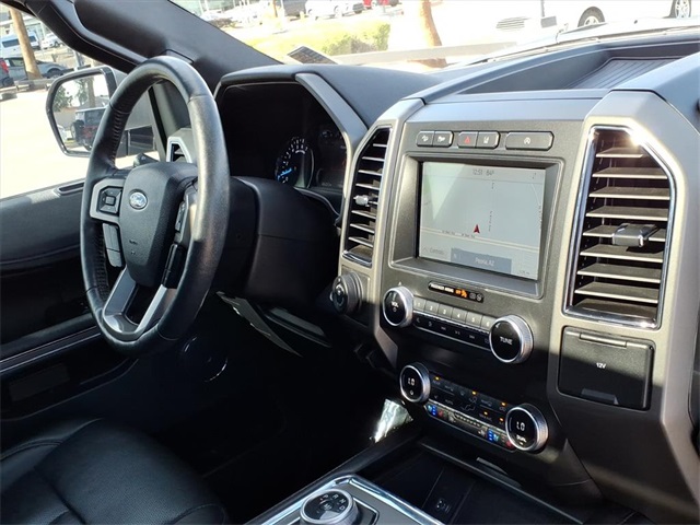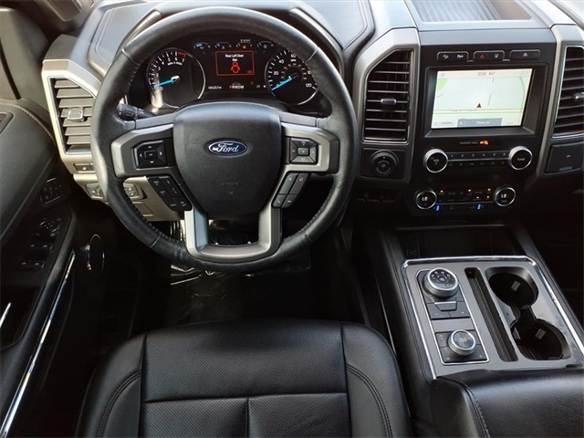 This Ford Expedition is equipped with the following features: Cargo Package (Black Roof Rail Crossbars), Equipment Group 202A High Package (110V/150W AC Power Outlet, 2 Smart Charging USB-A Ports In 3rd Row, 2nd Row 40/20/40 Tip & Slide Seat, 3rd Row Power-Folding Head Restraints, 3rd Row Vinyl Seat, 4-Door Intelligent Access (Lock/Unlock), ActiveX-Trimmed 1st & 2nd Row Seats, Advanced Security Pack, Chrome Platform Running Boards, Heated Steering Wheel, Heated/Ventilated Front Seats, Instrument Panel Cluster, Power Liftgate, Power Tilt/Telescopic Steering Wheel w/Memory, Power-Folding Sideview Mirrors w/Autofold, Remote Start, Santa Cruz Vinyl-Wrapped Center Console Side Rails, SecuriCode Keyless Entry Pad, and Wireless Charging Pad), Ford Co-Pilot360 Assist (Adaptive Cruise Control and Voice-Activated Touch-Screen Navigation System), Heavy-Duty Trailer Tow Package (3.73 Axle Ratio and Heavy-Duty Engine Radiator), 4WD, Panoramic Vista Roof, Wheels: 20" Luster Nickel-Painted Aluminum, 1st & 2nd Row Floor Liners w/o Carpet Mats, 2nd Row ActiveX Captains Chairs w/Armrest, 3.31 Axle Ratio, 3rd row seats: split-bench, 4-Wheel Disc Brakes, 6 Speakers, ABS brakes, Air Conditioning, AM/FM radio: SiriusXM, Auto High-beam Headlights, Auto-dimming Rear-View mirror, Automatic temperature control, Brake assist, Bumpers: body-color, Cloth Front Captain's Chairs, Compass, Delay-off headlights, Driver door bin, Driver vanity mirror, Dual front impact airbags, Dual front side impact airbags, Electronic Stability Control, Emergency communication system: SYNC 3 911 Assist, Exterior Parking Camera Rear, Four wheel independent suspension, Front anti-roll bar, Front Bucket Seats, Front Center Armrest, Front dual zone A/C, Front fog lights, Front reading lights, Fully automatic headlights, Garage door transmitter, Heated door mirrors, Illuminated entry, Leather steering wheel, Low tire pressure warning, Occupant sensing airbag, Outside temperature display, Overhead airbag, Overhead console, Panic alarm, Passenger door bin, Passenger vanity mirror, Power door mirrors, Power driver seat, Power steering, Power windows, Radio data system, Radio: AM/FM Stereo w/MP3 Capable, Rear air conditioning, Rear anti-roll bar, Rear reading lights, Rear window defroster, Rear window wiper, Reclining 3rd row seat, Remote keyless entry, Reversible Cargo Mat, Roof rack: rails only, Security system, SiriusXM Satellite Radio, Speed control, Speed-sensing steering, Speed-Sensitive Wipers, Split folding rear seat, Steering wheel mounted audio controls, SYNC 3 Communications & Entertainment System, Tachometer, Telescoping steering wheel, Tilt steering wheel, Traction control, Trip computer, Variably intermittent wipers, and Voltmeter.