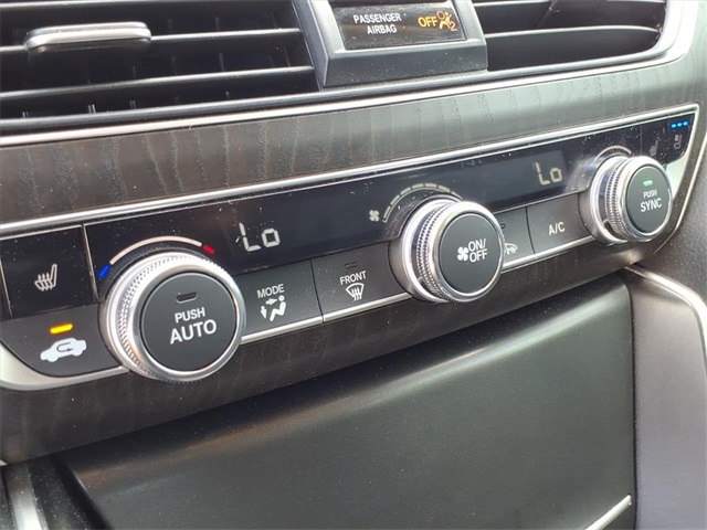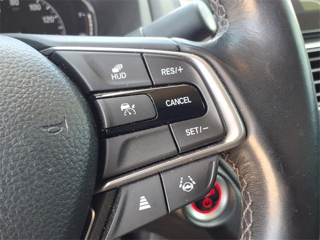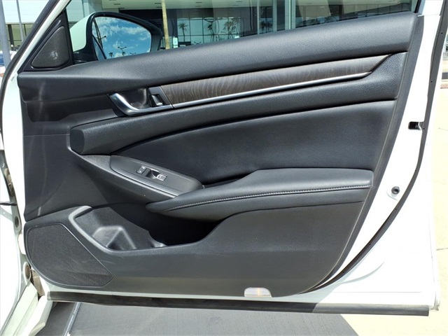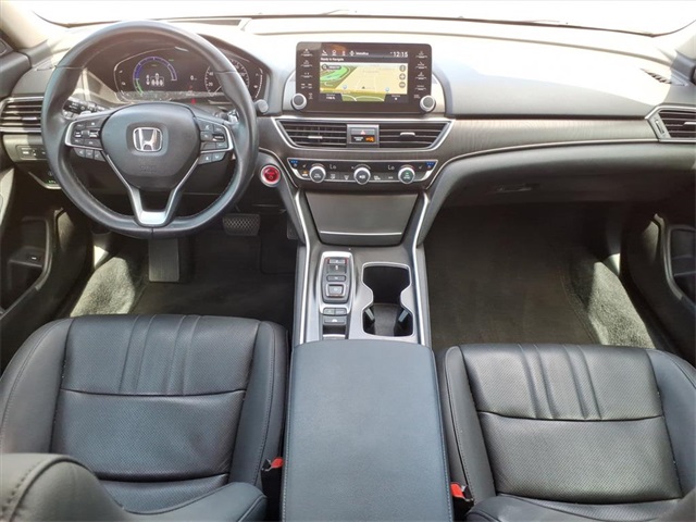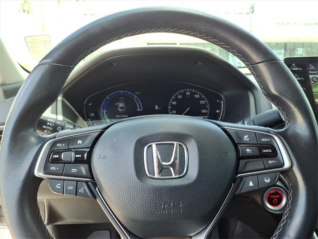 **Sun City Trade-Ins Lowest Miles Nicest Condition Vehicles in the Valley** This Honda Accord Hybrid is equipped with the following features: 2.0L 4-Cylinder DOHC 16V i-VTEC, 10 Speakers, 4-Wheel Disc Brakes, ABS brakes, Adaptive Cruise Control: Adaptive Cruise Control (ACC) with Low-Speed Follow, Adaptive suspension, Air Conditioning, Alloy wheels, AM/FM radio: SiriusXM, Apple CarPlay/Android Auto, Auto High-beam Headlights, Auto-dimming Rear-View mirror, Automatic temperature control, Blind Spot Information (BSI) System warning, Brake assist, Bumpers: body-color, Compass, Delay-off headlights, Driver door bin, Driver vanity mirror, Dual front impact airbags, Dual front side impact airbags, Electronic Stability Control, Emergency communication system: HondaLink, Exterior Parking Camera Rear, Forward collision: Collision Mitigation Braking System (CMBS) + FCW mitigation, Four wheel independent suspension, Front anti-roll bar, Front Bucket Seats, Front Center Armrest, Front dual zone A/C, Front fog lights, Front reading lights, Fully automatic headlights, Garage door transmitter: HomeLink, Heads-Up Display, Heated & Ventilated Front Bucket Seats, Heated door mirrors, Heated front seats, Heated rear seats, Illuminated entry, Knee airbag, Lane Departure Warning System, Leather steering wheel, Leather-Trimmed Seats, Low tire pressure warning, Memory seat, Navigation System, Occupant sensing airbag, Outside temperature display, Overhead airbag, Overhead console, Panic alarm, Passenger door bin, Passenger vanity mirror, Power door mirrors, Power driver seat, Power moonroof, Power passenger seat, Power steering, Power windows, Radio data system, Radio: 450-Watt AM/FM/HD Premium Audio System, Rain sensing wipers, Rear anti-roll bar, Rear seat center armrest, Rear window defroster, Remote keyless entry, Security system, Speed control, Speed-sensing steering, Speed-Sensitive Wipers, Split folding rear seat, Steering wheel mounted audio controls, Telescoping steering wheel, Tilt steering wheel, Traction control, Trip computer, Turn signal indicator mirrors, Variably intermittent wipers, Ventilated front seats, and Wheels: 19" Machine-Finished Alloy w/Black Inserts.