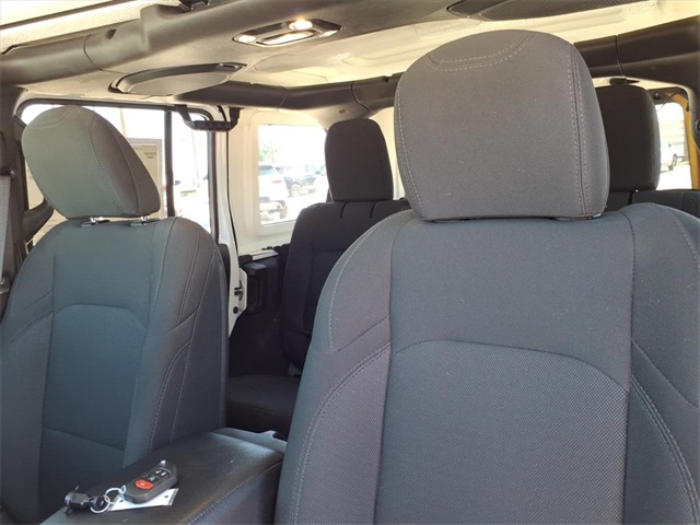 **Sun City Trade-Ins Lowest Miles Nicest Condition Vehicles in the Valley** This Jeep Wrangler is equipped with the following features: Convenience Group, Quick Order Package 26S Sport S (Power Heated Mirrors, Remote Keyless Entry, Security Alarm, Sport S, Sun Visors w/Illuminated Vanity Mirrors, and Wheels: 17" x 7.5" Tech Silver Aluminum), Technology Group (7.0" Touchscreen Display, Cluster 7.0" TFT Color Display, Google Android Auto, GPS Antenna Input, Radio: Uconnect 4 w/7" Display, SiriusXM Satellite Radio, and USB Host Flip), Trailer Tow & HD Electrical Group (700 Amp Maintenance Free Battery), 3.45 Rear Axle Ratio, 3.73 Rear Axle Ratio, 4-Wheel Disc Brakes, 8 Speakers, ABS brakes, Air Conditioning, AM/FM radio, Anti-Spin Differential Rear Axle, Aux Battery, Black 3-Piece Hard Top, Brake assist, Cloth Low-Back Bucket Seats, Compass, Delay-off headlights, Driver door bin, Driver vanity mirror, Dual front impact airbags, Dual front side impact airbags, Electronic Stability Control, Front anti-roll bar, Front Bucket Seats, Front Center Armrest w/Storage, Front fog lights, Front reading lights, Integrated roll-over protection, Low tire pressure warning, Manufacturer's Statement of Origin, Non-Lock Fuel Cap w/o Discriminator, Normal Duty Suspension, Occupant sensing airbag, Outside temperature display, ParkView Rear Back-Up Camera, Passenger door bin, Passenger vanity mirror, Power steering, Radio data system, Radio: Uconnect 3 w/5" Display, Rear anti-roll bar, Rear reading lights, Speed control, Split folding rear seat, Steering wheel mounted audio controls, Stop-Start Dual Battery System, Tachometer, Telescoping steering wheel, Tilt steering wheel, Traction control, Trip computer, Variably intermittent wipers, and Wheels: 17" x 7.5" Black Steel Styled.