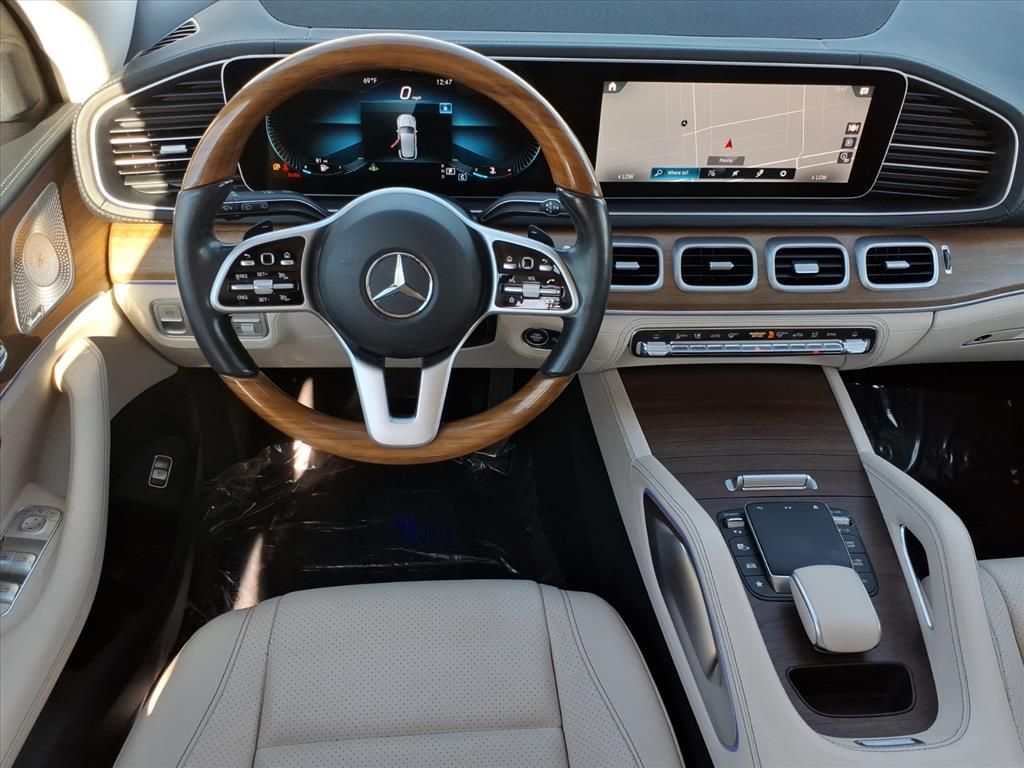 This Mercedes-Benz GLE is equipped with the following features: Premium Package (115V Power Outlet, Burmester Surround Sound System, Parking Assist Code, and Surround View System), 4-Way Lumbar Support, 4-Wheel Disc Brakes, 8 Speakers, ABS brakes, Aerial for GPS, Air Conditioning, Alloy wheels, AM/FM radio: SiriusXM, Anti-whiplash front head restraints, Apple CarPlay, Apple CarPlay/Android Auto, Auto tilt-away steering wheel, Auto-dimming door mirrors, Auto-dimming Rear-View mirror, Automatic temperature control, Axle Ratio: 3.69, Brake assist, Bumpers: body-color, Compass, Delay-off headlights, Driver door bin, Driver vanity mirror, Dual front impact airbags, Dual front side impact airbags, eCall Emergency System, Electronic Stability Control, Emergency communication system: eCall Emergency System, Exterior Parking Camera Rear, Four wheel independent suspension, Front anti-roll bar, Front Bucket Seats, Front Center Armrest, Front dual zone A/C, Front reading lights, Fully automatic headlights, Garage door transmitter: HomeLink, Genuine wood console insert, Genuine wood dashboard insert, Genuine wood door panel insert, HD Radio, Heated door mirrors, Heated Front Bucket Seats, Heated front seats, Heated Power Front Seats w/Driver Memory, Illuminated entry, Knee airbag, Leather steering wheel, Live Traffic, Low tire pressure warning, MB Navigation, MB-Tex Leatherette Seat Trim, MBUX Voice Control, Memory seat, Navigation Services, Navigation system: MBUX, Navigation Updates for 3 Years, Occupant sensing airbag, Outside temperature display, Overhead airbag, Panic alarm, Passenger door bin, Passenger vanity mirror, Power adjustable front head restraints, Power door mirrors, Power driver seat, Power Liftgate, Power moonroof, Power passenger seat, Power steering, Power windows, Premium audio system: MBUX, Radio data system, Radio: MBUX Multimedia System, Rain sensing wipers, Rear anti-roll bar, Rear fog lights, Rear reading lights, Rear seat center armrest, Rear window defroster, Rear window wiper, Remote keyless entry, Roof rack: rails only, Security system, SiriusXM Satellite Radio, Smartphone Integration, Speed control, Speed-sensing steering, Speed-Sensitive Wipers, Split folding rear seat, Spoiler, Steering wheel memory, Steering wheel mounted audio controls, Tachometer, Telescoping steering wheel, Tilt steering wheel, Traction control, Trip computer, Turn signal indicator mirrors, Weather band radio, Wheels: 19" Twin 5-Spoke, Wide Screen Media Display, and Wireless Charging.
