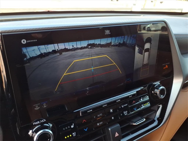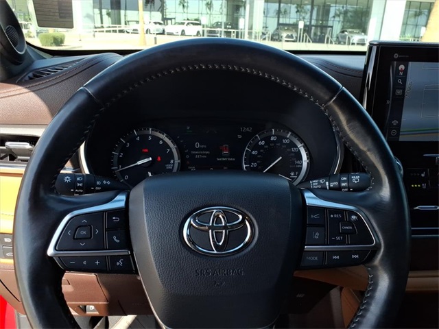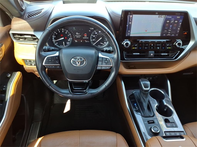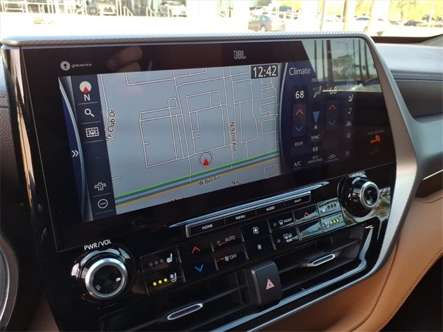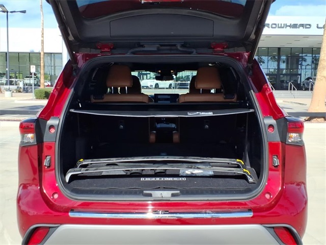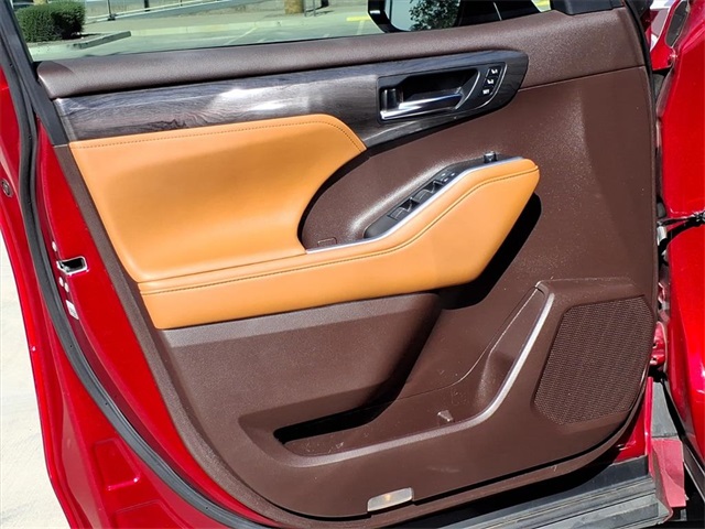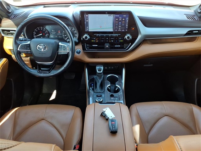 This Toyota Highlander is equipped with the following features: Platinum Package (Digital Rearview Mirror w/HomeLink, High Grade LED Projector Headlights, Panoramic Moonroof, and Panoramic View Monitor), AWD, 11 Speakers, 20" Painted Alloy Wheels, 3.003 Axle Ratio, 3rd row seats: split-bench, 4-Wheel Disc Brakes, ABS brakes, Air Conditioning, Alloy wheels, AM/FM radio: SiriusXM, Apple CarPlay/Android Auto, Auto High-beam Headlights, Auto-dimming Rear-View mirror, Automatic temperature control, Brake assist, Bumpers: body-color, Delay-off headlights, Driver door bin, Driver vanity mirror, Dual front impact airbags, Dual front side impact airbags, Electronic Stability Control, Emergency communication system: Safety Connect with 1-year trial, Four wheel independent suspension, Front anti-roll bar, Front Bucket Seats, Front Center Armrest, Front dual zone A/C, Front fog lights, Front reading lights, Fully automatic headlights, Garage door transmitter: HomeLink, Heads-Up Display, Heated door mirrors, Heated front seats, Heated rear seats, Heated steering wheel, Heated/Ventilated Front Bucket Seats, Illuminated entry, Knee airbag, Leather Seat Trim, Leather Shift Knob, Low tire pressure warning, Memory seat, Navigation system: Dynamic Navigation (3-year trial), Occupant sensing airbag, Outside temperature display, Overhead airbag, Overhead console, Panic alarm, Passenger door bin, Passenger vanity mirror, Power door mirrors, Power driver seat, Power Liftgate, Power passenger seat, Power steering, Power windows, Radio: Premium Audio w/JBL Clari-Fi, Rain sensing wipers, Rear air conditioning, Rear anti-roll bar, Rear reading lights, Rear window defroster, Rear window wiper, Reclining 3rd row seat, Remote keyless entry, Roof rack: rails only, Security system, Speed control, Speed-sensing steering, Split folding rear seat, Spoiler, Steering wheel mounted audio controls, Tachometer, Telescoping steering wheel, Tilt steering wheel, Traction control, Trip computer, Turn signal indicator mirrors, Variably intermittent wipers, and Ventilated front seats.