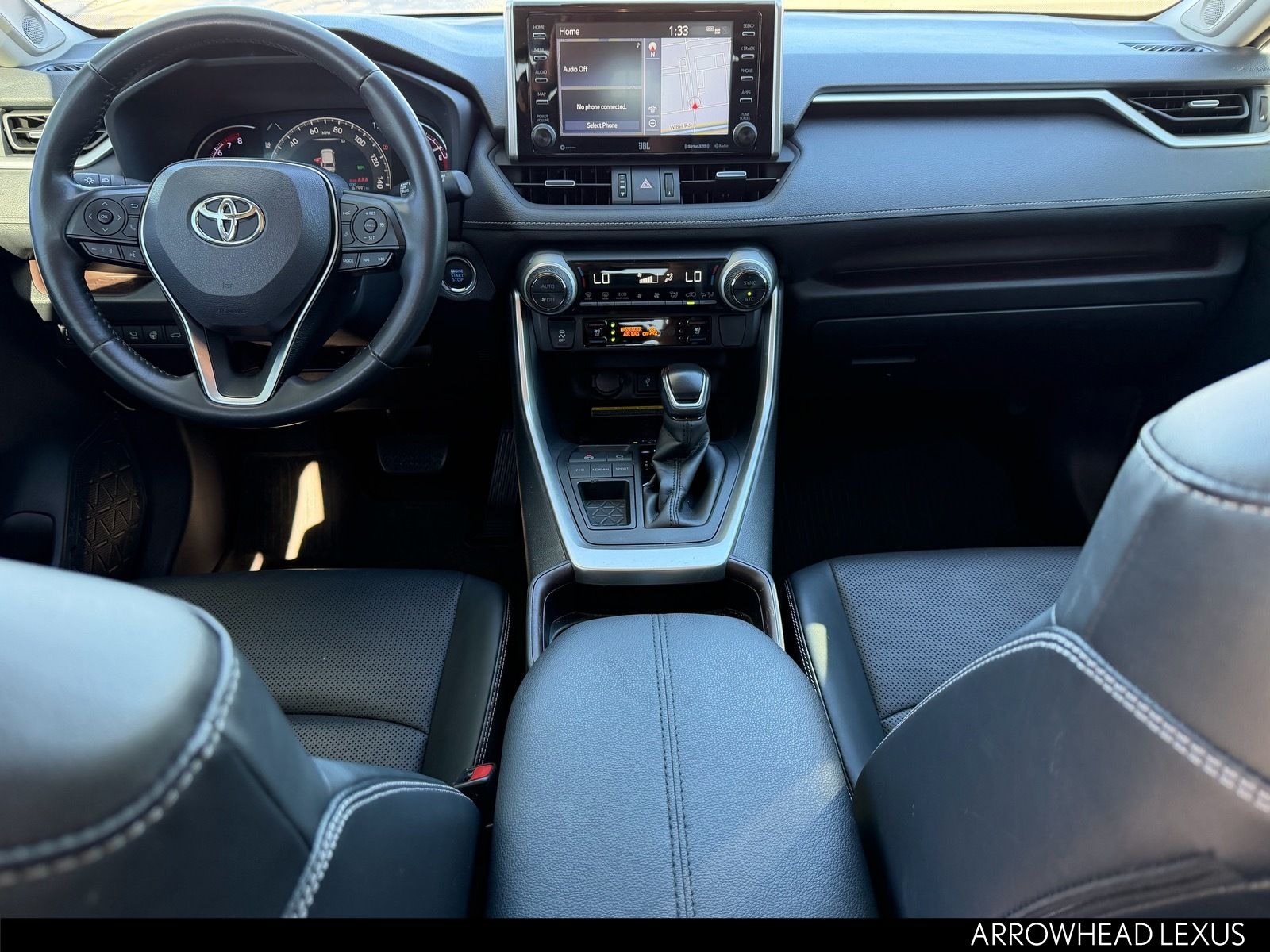 This Toyota RAV4 is equipped with the following features: Limited Grade Advanced Technology Package (Height-Adjustable Power Liftgate, Panoramic View Monitor, and Wireless Phone Charger), Limited Grade Weather Package (3 Spoke Leather Heated Steering Wheel, Front Seat Heating/Ventilation, Rain Sensing Front Wipers, Rear Seat Heating, and Wiper Deicer), Black w/SofTex Seat Trim, Panoramic Sun Roof, 11 Speakers, 4-Wheel Disc Brakes, ABS brakes, Air Conditioning, Alloy wheels, AM/FM radio: SiriusXM, Apple CarPlay/Android Auto, Auto High-beam Headlights, Auto-dimming Rear-View mirror, Automatic temperature control, Axle Ratio: 3.177, Brake assist, Bumpers: body-color, Delay-off headlights, Driver door bin, Driver vanity mirror, Dual front impact airbags, Dual front side impact airbags, Electronic Stability Control, Emergency communication system, Exterior Parking Camera Rear, Four wheel independent suspension, Front anti-roll bar, Front Bucket Seats, Front Center Armrest, Front dual zone A/C, Front fog lights, Front reading lights, Fully automatic headlights, Garage door transmitter: HomeLink, Heated door mirrors, Heated Front Bucket Seats, Heated front seats, Illuminated entry, Knee airbag, Leather Shift Knob, Low tire pressure warning, Memory seat, Navigation System, Occupant sensing airbag, Outside temperature display, Overhead airbag, Overhead console, Panic alarm, Passenger door bin, Passenger vanity mirror, Power door mirrors, Power driver seat, Power Liftgate, Power steering, Power windows, Radio data system, Radio: Entune 3.0 Premium Audio w/JBL/Clari-Fi, Rear anti-roll bar, Rear seat center armrest, Rear window defroster, Rear window wiper, Remote keyless entry, Roof rack: rails only, Security system, SofTex Seat Trim, Speed control, Speed-sensing steering, Split folding rear seat, Spoiler, Steering wheel mounted audio controls, Tachometer, Telescoping steering wheel, Tilt steering wheel, Traction control, Trip computer, Turn signal indicator mirrors, Variably intermittent wipers, and Wheels: 19" Multi-Spoke Super Chrome Alloy.