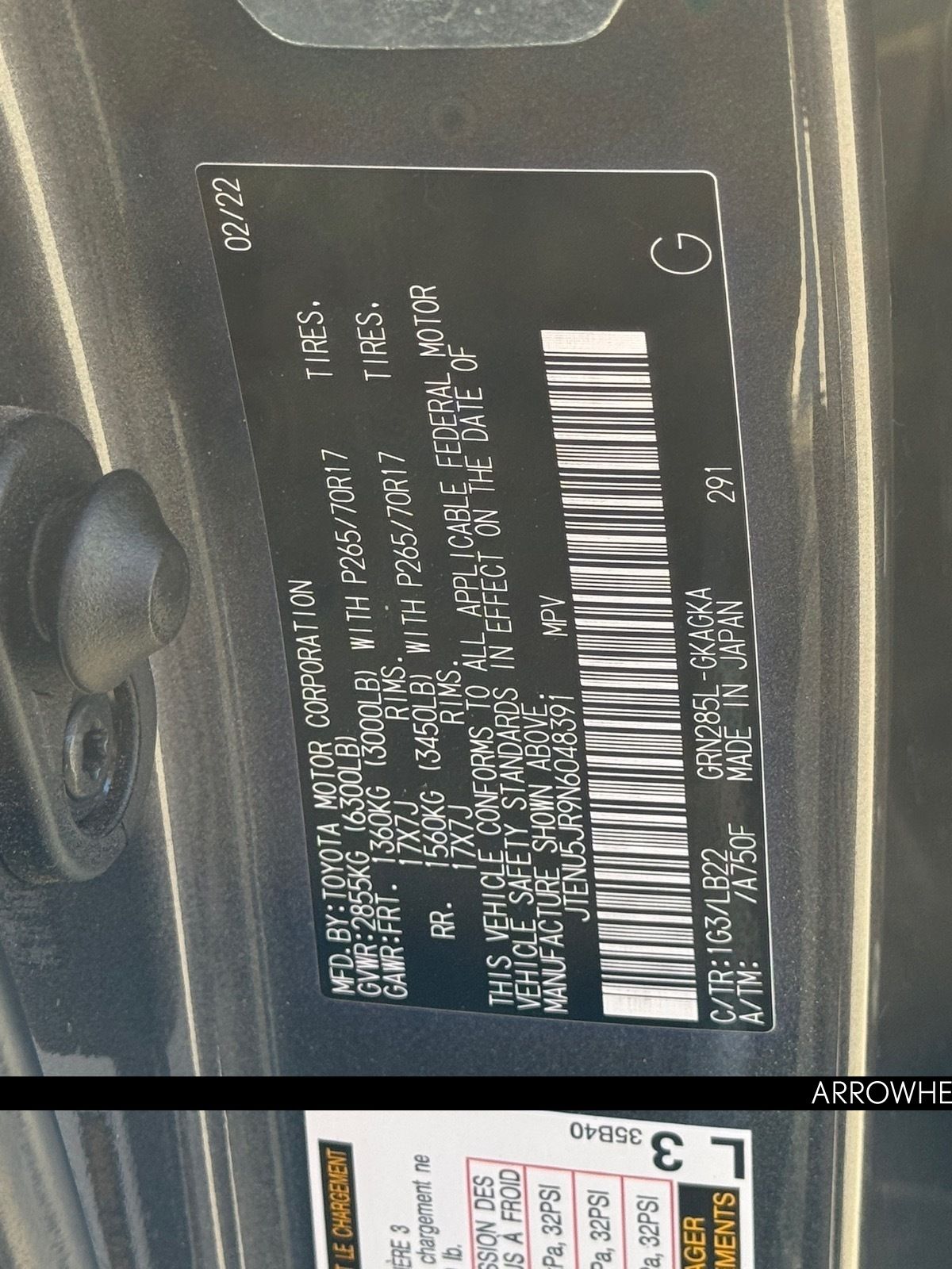- VIN : JTENU5JR9N6048391