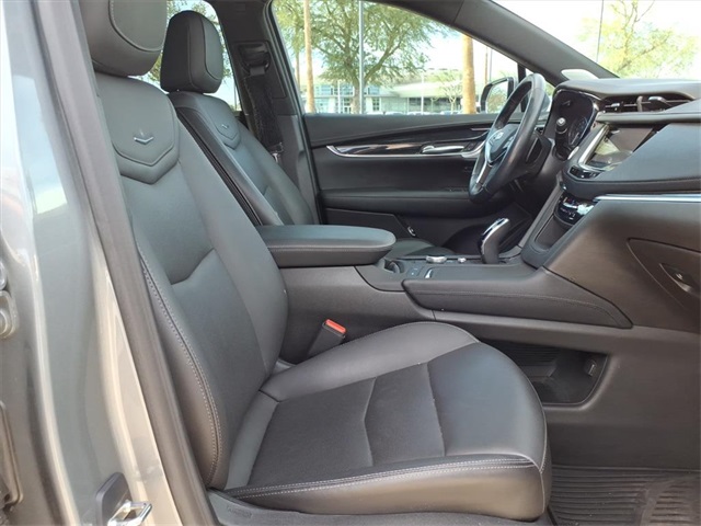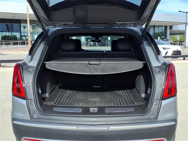 This Cadillac XT5 is equipped with the following features: Interior Protection Package (LPO) (All-Weather Floor Mats and All-Weather Integrated Cargo Liner (LPO)), Premium Luxury Package 1SC (Automatic Dual-Zone Climate Control, Automatic Emergency Braking, Dual Driver Info Center Display Gauge Cluster, Front & Rear Park Assist, HD Rear Vision Camera, Inside Rear-View Auto-Dimming Mirror, and Teen Driver), Radio: Cadillac User Experience w/Embedded Nav (Bose Performance Series 14-Speaker System, SiriusXM w/360L, and Wireless Apple CarPlay/Wireless Android Auto), Technology Package (8" Color Driver Info Center Display Gauge Cluster, Automatic Parking Assist w/Braking, HD Surround Vision, Head-Up Display, Rear Camera Mirror, Rear Camera Mirror Washer, and Rear Pedestrian Alert), 14 Speakers, 170 Amp Alternator, 2-Way Power Driver Lumbar Control Seat Adjuster, 2-Way Power Passenger Lumbar Control Seat Adjuster, 3.47 Axle Ratio, 4-Wheel Disc Brakes, 4-Wheel Independent Suspension, ABS brakes, Air Conditioning, Air Ionizer, Alloy wheels, AM/FM radio: SiriusXM, Audio memory, Auto High-beam Headlights, Auto-dimming door mirrors, Auto-dimming Rear-View mirror, Automatic Stop/Start w/Disable, Automatic temperature control, Bodyside moldings, Brake assist, Bumpers: body-color, Compass, Delay-off headlights, Driver door bin, Driver vanity mirror, Dual front impact airbags, Dual front side impact airbags, Electronic Stability Control, Emergency communication system: OnStar and Cadillac connected services capable, Four wheel independent suspension, Front anti-roll bar, Front Bucket Seats, Front Center Armrest, Front dual zone A/C, Front reading lights, Fully automatic headlights, Garage door transmitter, Genuine wood dashboard insert, Genuine wood door panel insert, Heated door mirrors, Heated Driver & Front Passenger Seats, Heated front seats, Heated Rear Outboard Seating Positions, Heated steering wheel, Illuminated entry, Knee airbag, Leather Seating Surfaces w/Mini Perforated Inserts, Leather steering wheel, Low tire pressure warning, Memory seat, Navigation System, Occupant sensing airbag, Outside temperature display, Overhead airbag, Overhead console, Panic alarm, Passenger door bin, Passenger vanity mirror, Power door mirrors, Power driver seat, Power Liftgate, Power moonroof: UltraView, Power passenger seat, Power steering, Power windows, Radio data system, Rain sensing wipers, Rear anti-roll bar, Rear reading lights, Rear seat center armrest, Rear window defroster, Rear window wiper, Remote keyless entry, Security system, Speed control, Speed-sensing steering, Split folding rear seat, Spoiler, Steering wheel memory, Steering wheel mounted audio controls, Tachometer, Telescoping steering wheel, Tilt steering wheel, Traction control, Tri-Zone Automatic Climate Control, Trip computer, Turn signal indicator mirrors, Variably intermittent wipers, Ventilated Driver & Front Passenger Seats, Voltmeter, and Wheels: 18" 6-Split Spoke Alloy.