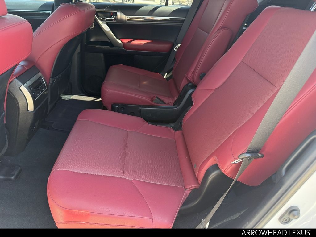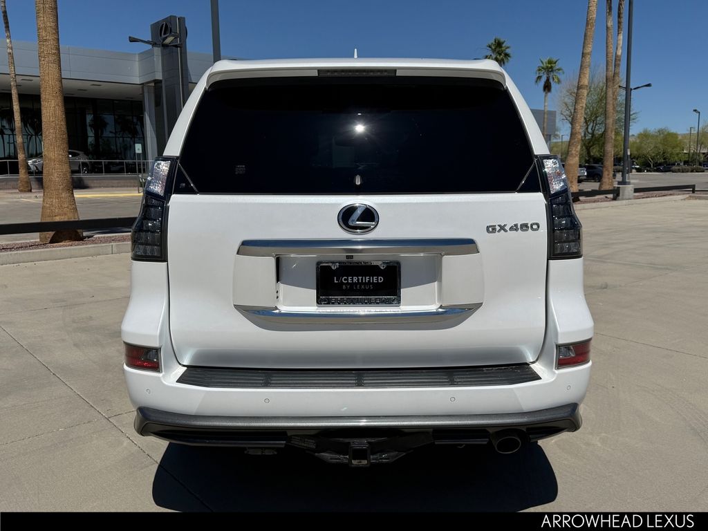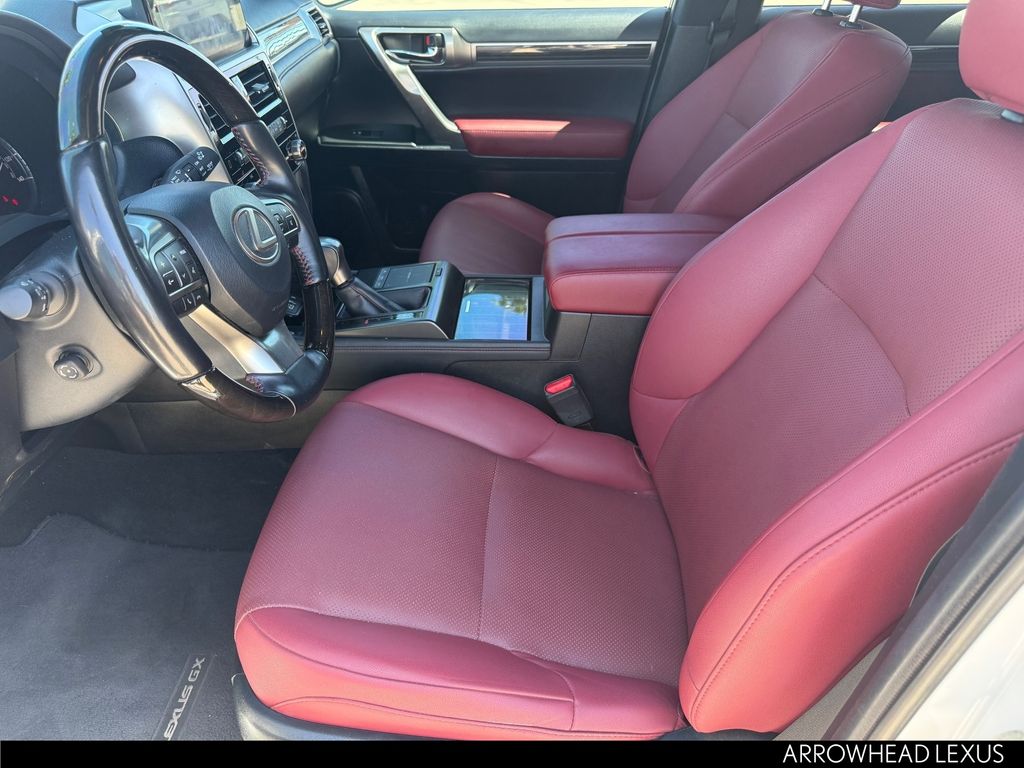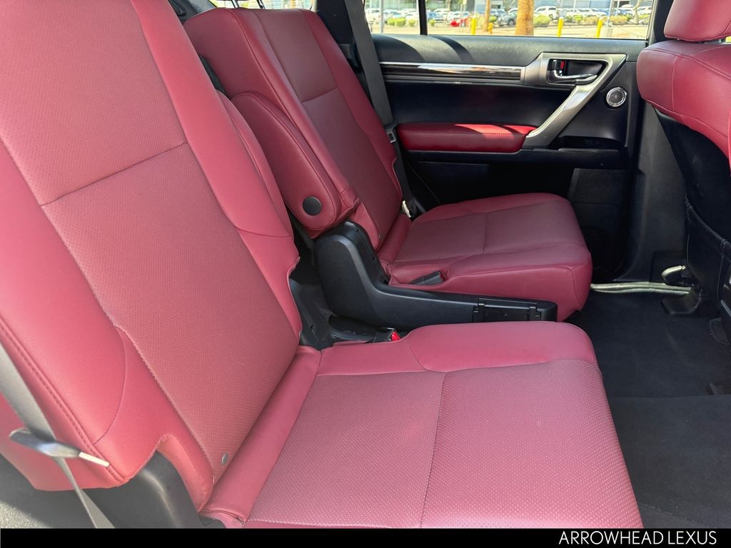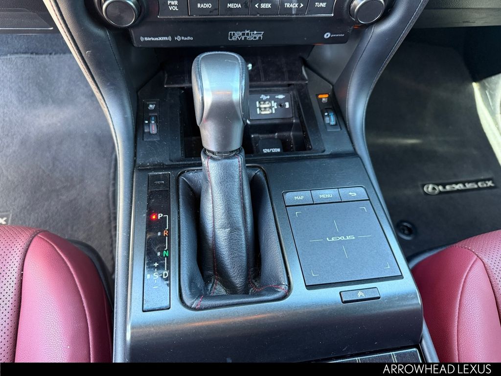 This Lexus GX is equipped with the following features: Premium Plus Package w/Captain's Chairs (2nd Row Captain's Chairs, 3rd Row Power Seats, Dual Front & Rear Auto Air Conditioner, Front & Rear Heated Seats, LED Front Fog & Driving Lamp, NuLuxe Seat Trim (EA), Safety Connect, Ventilated Front Seats, Windshield De-Icer, and Windshield Wiper Control w/Rain Sensor), Accessory Package (Alloy Wheel Locks, Cargo Net, Carpet Cargo Mat, and Key Gloves), Premium Plus Sport Design w/Captain's Chairs (Wheels: 19" x 7.5J Dark Gray Metallic Alum Alloy), Lexus Certified Certified, 18" x 7.5J Aluminum Alloy Wheels, 3.909 Axle Ratio, 3rd row seats: split-bench, 4-Wheel Disc Brakes, 9 Speakers, ABS brakes, Air Conditioning, Alloy wheels, AM/FM radio: SiriusXM, Anti-whiplash front head restraints, Apple CarPlay/Android Auto, Auto High-beam Headlights, Auto tilt-away steering wheel, Auto-dimming Rear-View mirror, Automatic temperature control, Brake assist, Bumpers: body-color, Cargo-Area Tonneau Cover, CD player, Compass, Delay-off headlights, Driver door bin, Driver vanity mirror, Driver's Seat Mounted Armrest, Dual front impact airbags, Dual front side impact airbags, Electronic Stability Control, Emergency communication system: Safety Connect (3-year trial), Exterior Parking Camera Rear, Front anti-roll bar, Front Bucket Seats, Front dual zone A/C, Front reading lights, Front wheel independent suspension, Fully automatic headlights, Garage door transmitter: HomeLink, Headlamp Washers, Heated door mirrors, Heated Wood & Leather Steering Wheel, Illuminated entry, Illuminated running boards, Knee airbag, Leather Shift Knob, Leather steering wheel, Low tire pressure warning, Memory seat, Navigation system: Lexus Enform Dynamic Navigation, NuLuxe Seat Trim, Occupant sensing airbag, Outside temperature display, Overhead airbag, Overhead console, Panic alarm, Passenger door bin, Passenger seat mounted armrest, Passenger vanity mirror, Power door mirrors, Power driver seat, Power moonroof, Power passenger seat, Power steering, Power windows, Premium Paint, Radio data system, Radio: Lexus Multimedia System w/Navigation, Rear anti-roll bar, Rear reading lights, Rear seat center armrest, Rear side impact airbag, Rear window defroster, Rear window wiper, Remote keyless entry, Roof Rack Cross Bars, Roof rack: rails only, Security system, Speed control, Speed-sensing steering, Split folding rear seat, Spoiler, Steering wheel memory, Steering wheel mounted audio controls, Tachometer, Telescoping steering wheel, Tilt steering wheel, Tow Hitch Receiver w/Ball Mount, Traction control, Trip computer, Turn signal indicator mirrors, and Variably intermittent wipers.