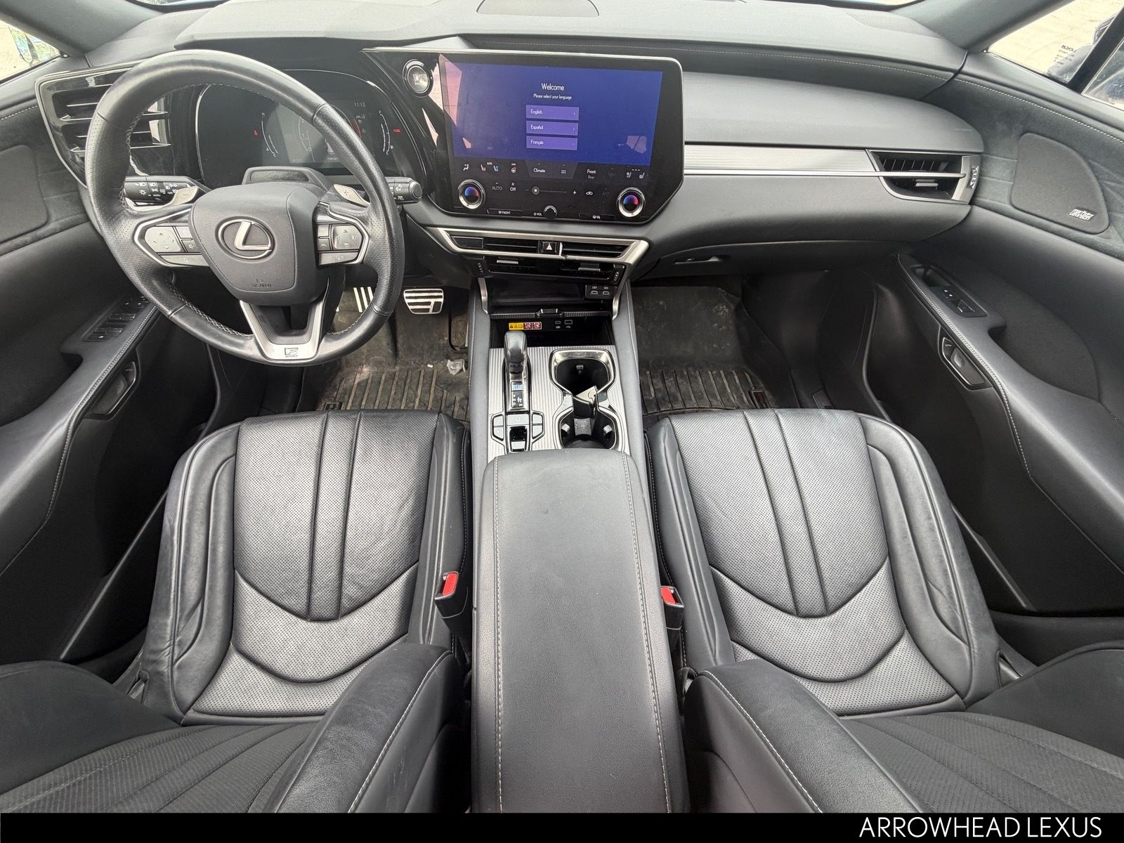 This Lexus RX is equipped with the following features: F SPORT Handling Package (8-Way Power Driver & Front Passenger Seat Adjusters, F SPORT White Steering Wheel w/Paddle, Finish Plate Door Inner Garnish, Front Seat Air Conditioner, Head-Up Display (HUD), Multi-Color Illuminated Entry System, Parking Support Alert/Brake, and Wireless Charger), Lexus Certified Certified, AWD, Black w/Dark Graphite Aluminum w/Leather/Ultra Suede Seat Trim, 12 Speakers, 3.33 Axle Ratio, 4-Wheel Disc Brakes, ABS brakes, Adaptive suspension, Air Conditioning, Alloy wheels, AM/FM radio: SiriusXM, Anti-whiplash front head restraints, Auto High-beam Headlights, Auto tilt-away steering wheel, Auto-dimming door mirrors, Auto-dimming Rear-View mirror, Auto-leveling suspension, Automatic temperature control, Brake assist, Bumpers: body-color, Compass, Delay-off headlights, Driver door bin, Driver vanity mirror, Dual front impact airbags, Dual front side impact airbags, Electronic Stability Control, Emergency communication system: Safety Connect (10-year trial), Exterior Parking Camera Rear, F SPORT NuLuxe Seat Trim, Four wheel independent suspension, Front anti-roll bar, Front Bucket Seats, Front Center Armrest, Front dual zone A/C, Front fog lights, Front reading lights, Fully automatic headlights, Garage door transmitter: HomeLink, Genuine wood console insert, Heads-Up Display, Heated & Ventilated Front Bucket Seats, Heated door mirrors, Heated front seats, Illuminated entry, Leather Shift Knob, Low tire pressure warning, Memory seat, Navigation System, Occupant sensing airbag, Outside temperature display, Overhead airbag, Overhead console, Panic alarm, Passenger door bin, Passenger vanity mirror, Power door mirrors, Power driver seat, Power Liftgate, Power moonroof, Power passenger seat, Power steering, Power windows, Radio data system, Radio: Lexus Interface w/9.8" HD Touchscreen Display, Rain sensing wipers, Rear air conditioning, Rear anti-roll bar, Rear reading lights, Rear seat center armrest, Rear side impact airbag, Rear window defroster, Rear window wiper, Remote keyless entry, Security system, Speed control, Speed-sensing steering, Split folding rear seat, Spoiler, Sport steering wheel, Steering wheel memory, Steering wheel mounted audio controls, Tachometer, Telescoping steering wheel, Tilt steering wheel, Traction control, Trip computer, Turn signal indicator mirrors, Variably intermittent wipers, Ventilated front seats, Wheels: 21", and Wireless Apple CarPlay/Wireless Android Auto.