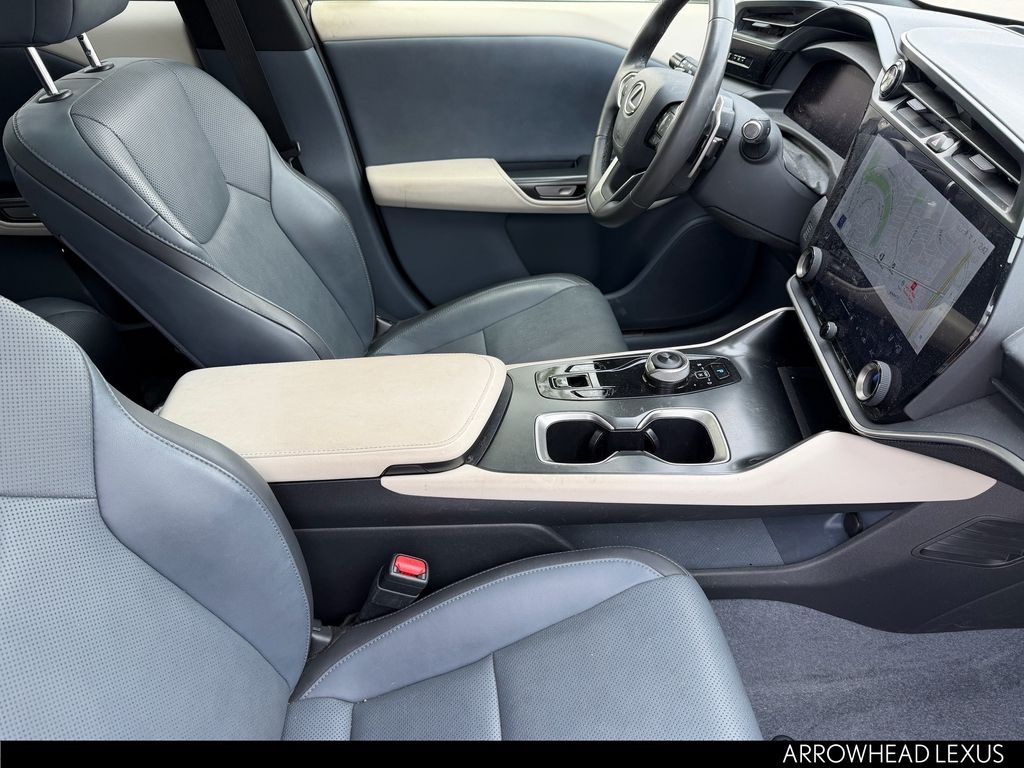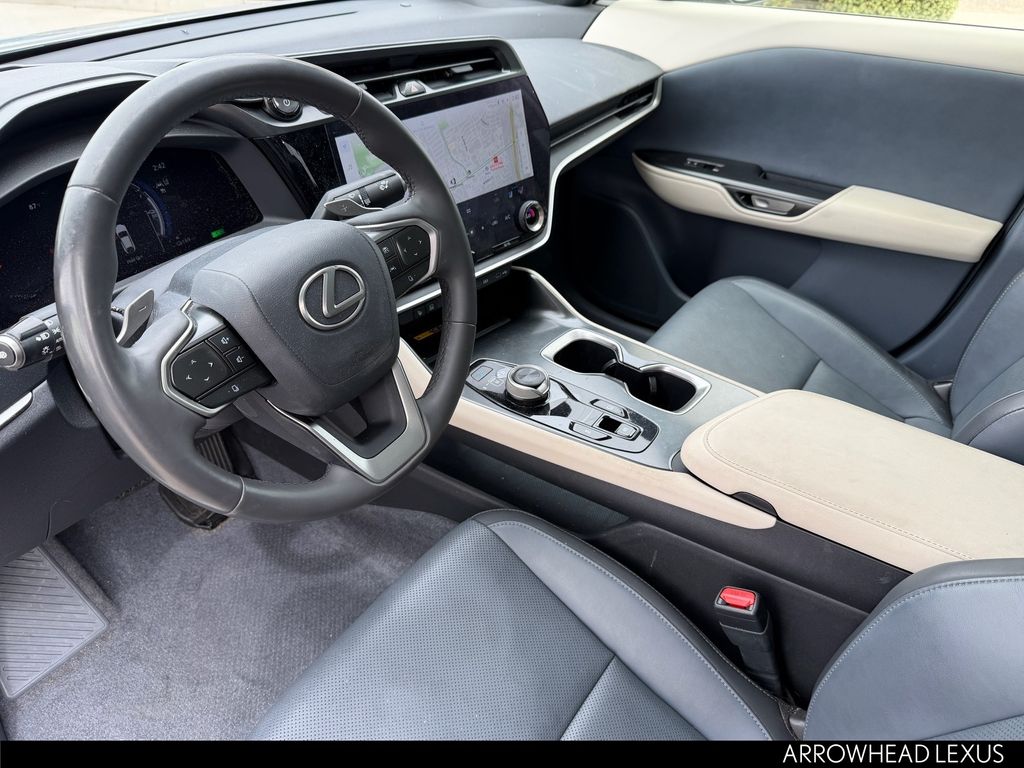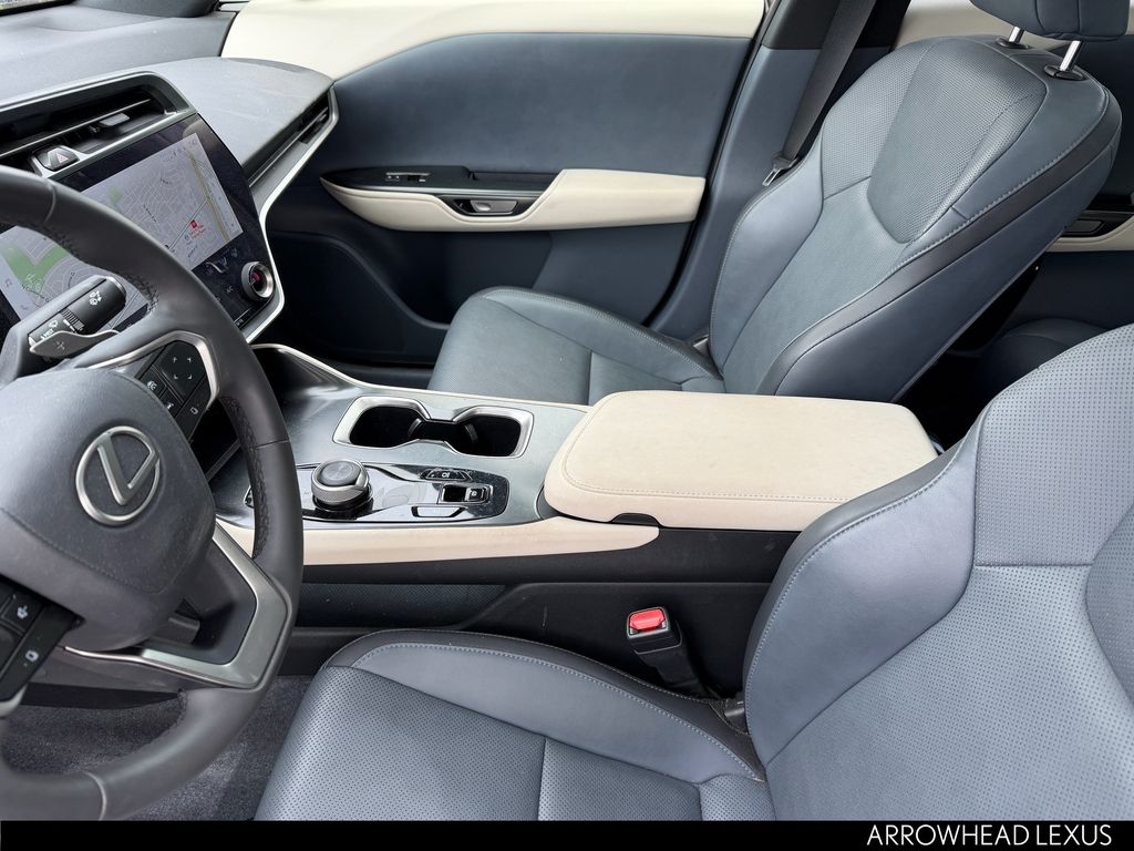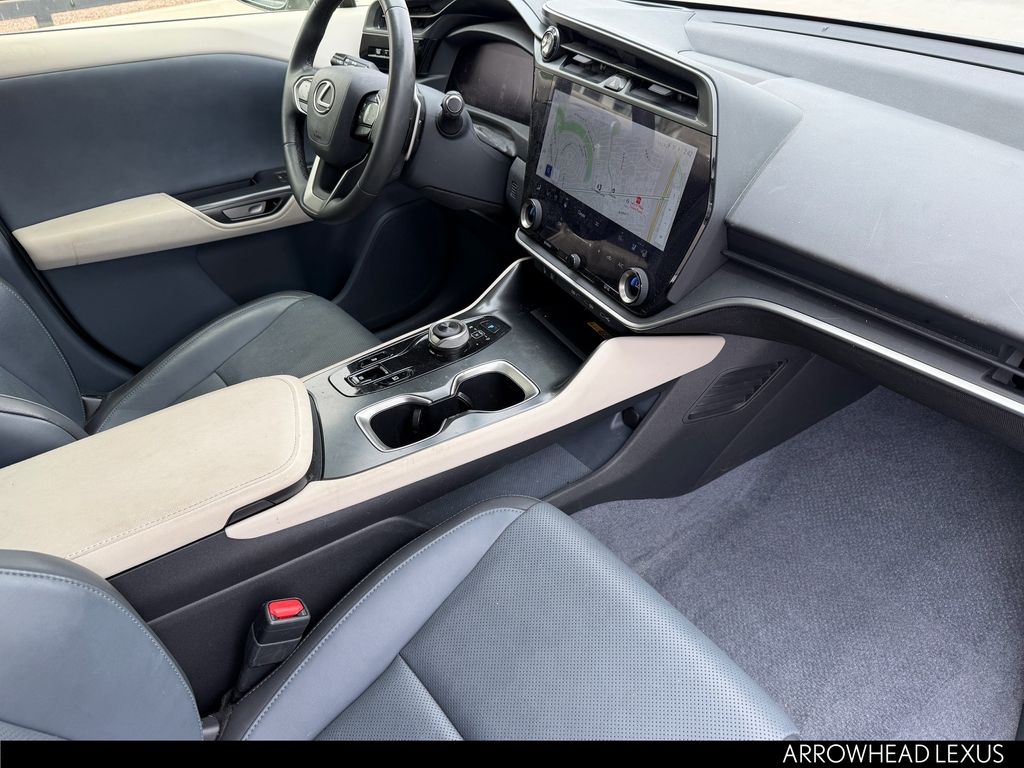 This Lexus RZ is equipped with the following features: Accessory Package (Z1) (Cargo Net, Carpet Cargo Mat, and Key Gloves), Cold Area Package, Technology Package (Digital Key, Heads-Up Display, and Intelligent Parking Assist), Lexus Certified Certified, 10 Speakers, 4-Wheel Disc Brakes, ABS brakes, Air Conditioning, Alloy wheels, AM/FM radio: SiriusXM, Apple CarPlay/Android Auto, Auto High-beam Headlights, Auto-dimming door mirrors, Auto-dimming Rear-View mirror, Automatic temperature control, Brake assist, Bumpers: body-color, Delay-off headlights, Digital Rearview Mirror, Driver door bin, Driver vanity mirror, Dual front impact airbags, Dual front side impact airbags, Electronic Stability Control, Emergency communication system: Safety Connect (10-year trial), Exterior Parking Camera Rear, Four wheel independent suspension, Front anti-roll bar, Front Bucket Seats, Front Center Armrest, Front dual zone A/C, Front Radiant Heater, Front reading lights, Fully automatic headlights, Heated & Ventilated Front Bucket Seats, Heated door mirrors, Heated front seats, Heated steering wheel, Illuminated entry, Illuminated Front Badge, Knee airbag, Low tire pressure warning, Memory seat, Navigation System, NuLuxe Seat Trim, Occupant sensing airbag, Outside temperature display, Overhead airbag, Overhead console, Panic alarm, Passenger door bin, Passenger vanity mirror, Power door mirrors, Power driver seat, Power Liftgate, Power passenger seat, Power steering, Power windows, Premium Paint, Quick Charge Cables-Mobile, Radio data system, Radio: Lexus Interface, Rear anti-roll bar, Rear Bumper Applique, Rear seat center armrest, Rear window defroster, Remote keyless entry, Security system, Speed control, Speed-sensing steering, Split folding rear seat, Spoiler, Steering wheel memory, Steering wheel mounted audio controls, TBD Axle Ratio, Telescoping steering wheel, Tilt steering wheel, Traction control, Trip computer, Turn signal indicator mirrors, Variably intermittent wipers, and Ventilated front seats.