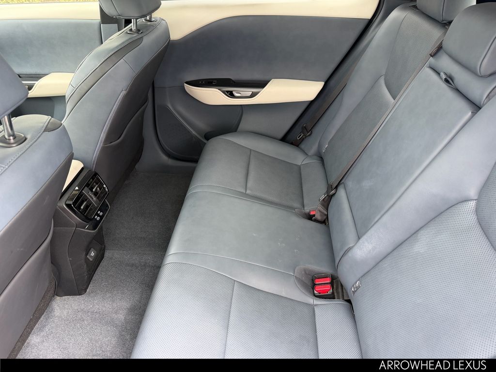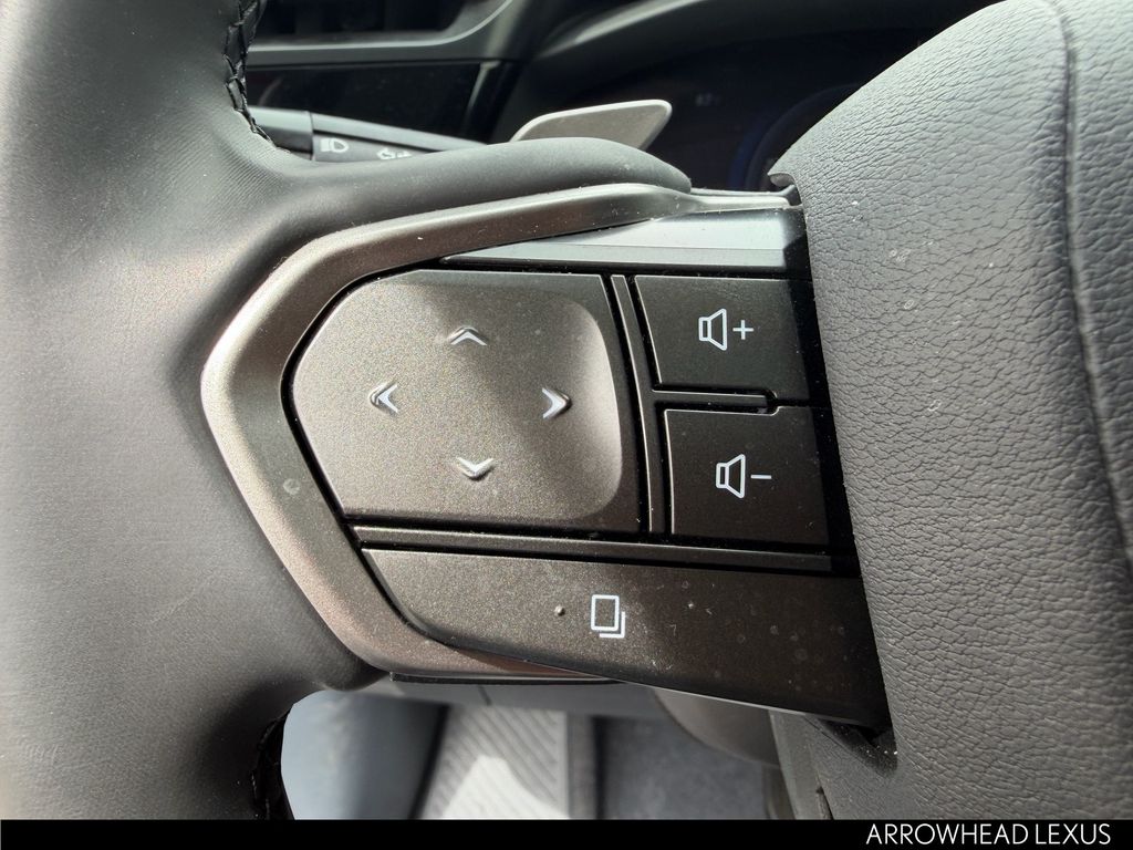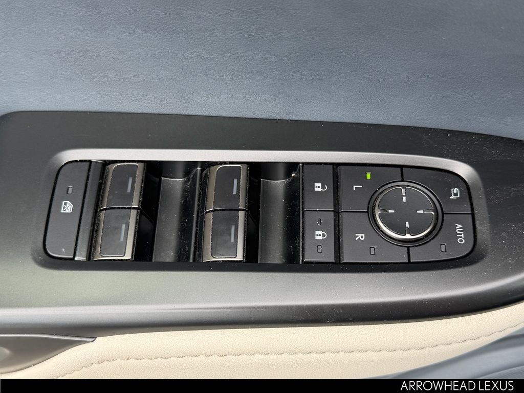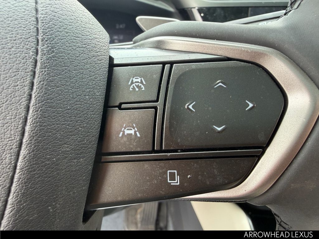 This Lexus RZ is equipped with the following features: Accessory Package (Z1) (Cargo Net, Carpet Cargo Mat, and Key Gloves), Cold Area Package, Technology Package (Digital Key, Heads-Up Display, and Intelligent Parking Assist), Lexus Certified Certified, 10 Speakers, 4-Wheel Disc Brakes, ABS brakes, Air Conditioning, Alloy wheels, AM/FM radio: SiriusXM, Apple CarPlay/Android Auto, Auto High-beam Headlights, Auto-dimming door mirrors, Auto-dimming Rear-View mirror, Automatic temperature control, Brake assist, Bumpers: body-color, Delay-off headlights, Digital Rearview Mirror, Driver door bin, Driver vanity mirror, Dual front impact airbags, Dual front side impact airbags, Electronic Stability Control, Emergency communication system: Safety Connect (10-year trial), Exterior Parking Camera Rear, Four wheel independent suspension, Front anti-roll bar, Front Bucket Seats, Front Center Armrest, Front dual zone A/C, Front Radiant Heater, Front reading lights, Fully automatic headlights, Heated & Ventilated Front Bucket Seats, Heated door mirrors, Heated front seats, Heated steering wheel, Illuminated entry, Illuminated Front Badge, Knee airbag, Low tire pressure warning, Memory seat, Navigation System, NuLuxe Seat Trim, Occupant sensing airbag, Outside temperature display, Overhead airbag, Overhead console, Panic alarm, Passenger door bin, Passenger vanity mirror, Power door mirrors, Power driver seat, Power Liftgate, Power passenger seat, Power steering, Power windows, Premium Paint, Quick Charge Cables-Mobile, Radio data system, Radio: Lexus Interface, Rear anti-roll bar, Rear Bumper Applique, Rear seat center armrest, Rear window defroster, Remote keyless entry, Security system, Speed control, Speed-sensing steering, Split folding rear seat, Spoiler, Steering wheel memory, Steering wheel mounted audio controls, TBD Axle Ratio, Telescoping steering wheel, Tilt steering wheel, Traction control, Trip computer, Turn signal indicator mirrors, Variably intermittent wipers, and Ventilated front seats.