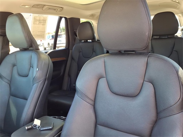 **Sun City Trade-Ins Lowest Miles Nicest Condition Vehicles in the Valley** This Volvo XC90 is equipped with the following features: AWD, Charcoal w/Leather Upholstery, Wheels: 20" 5-Spoke Black Diamond Cut Alloy, 10 Speakers, 3rd row seats: bucket, 4-Wheel Disc Brakes, ABS brakes, Air Conditioning, Alloy wheels, AM/FM radio: SiriusXM, Anti-whiplash front head restraints, Apple CarPlay, Auto High-beam Headlights, Auto-dimming door mirrors, Auto-dimming Rear-View mirror, Automatic temperature control, Brake assist, Bumpers: body-color, Delay-off headlights, Driver door bin, Driver vanity mirror, Dual front impact airbags, Dual front side impact airbags, Electronic Stability Control, Emergency communication system: Volvo Cars App w/4 Year Subscription, Exterior Parking Camera Rear, Four wheel independent suspension, Front anti-roll bar, Front Bucket Seats, Front Center Armrest w/Storage, Front dual zone A/C, Front fog lights, Front reading lights, Fully automatic headlights, Garage door transmitter: HomeLink, Genuine wood dashboard insert, Genuine wood door panel insert, Headlight cleaning, Heated door mirrors, Heated Front Bucket Seats, Heated front seats, Heated rear seats, Heated steering wheel, Illuminated entry, Knee airbag, Leather Shift Knob, Leather Upholstery, Low tire pressure warning, Memory seat, Navigation System, Occupant sensing airbag, Outside temperature display, Overhead airbag, Panic alarm, Passenger door bin, Passenger vanity mirror, Power door mirrors, Power driver seat, Power moonroof, Power passenger seat, Power steering, Power windows, Radio data system, Radio: High Performance Audio System, Rain sensing wipers, Rear air conditioning, Rear anti-roll bar, Rear dual zone A/C, Rear fog lights, Rear reading lights, Rear window defroster, Rear window wiper, Remote keyless entry, Security system, Speed control, Speed-sensing steering, Split folding rear seat, Spoiler, Steering wheel mounted audio controls, Tachometer, Telescoping steering wheel, Traction control, Trip computer, Turn signal indicator mirrors, Variably intermittent wipers, and Wheels: 21" 5 V-Spoke Black Diamond Cut Alloy.