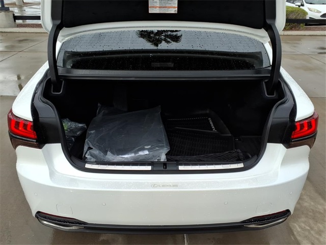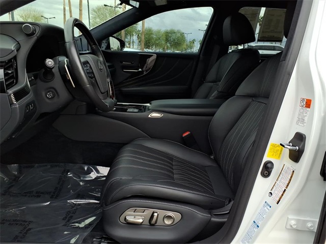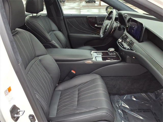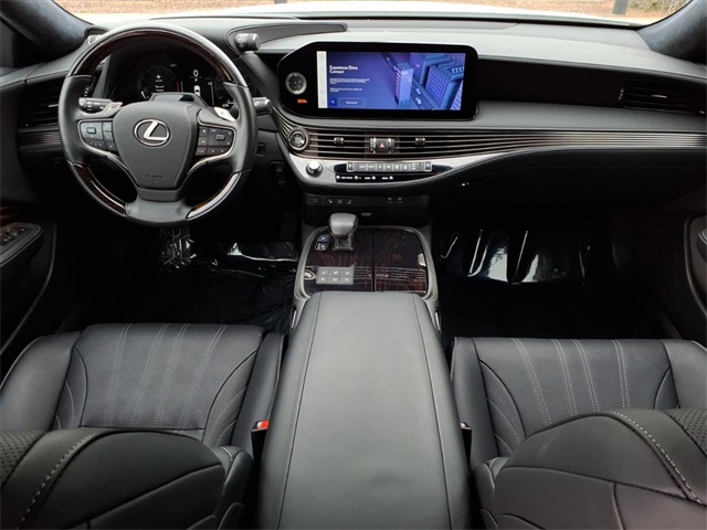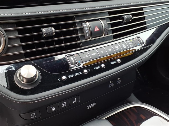 This Lexus LS is equipped with the following features: AWD, Black w/Semi Aniline Leather Seat Trim, ABS brakes, Active Cruise Control, Alloy wheels, Compass, DVD-Audio, Electronic Stability Control, Front Bucket Seats, Front Center Armrest, Front dual zone A/C, Heated & Ventilated Front Bucket Seats, Heated door mirrors, Heated front seats, Illuminated entry, Low tire pressure warning, Navigation System, Power moonroof, Power passenger seat, Remote keyless entry, Sport Leather Seat Trim, Traction control, Ventilated front seats, 12 Speakers, 19" Alloy Wheels, 4-Wheel Disc Brakes, Adaptive suspension, Air Conditioning, AM/FM radio: SiriusXM, Apple CarPlay/Android Auto, Auto High-beam Headlights, Auto tilt-away steering wheel, Auto-dimming door mirrors, Auto-dimming Rear-View mirror, Automatic temperature control, Brake assist, Bumpers: body-color, CD player, Delay-off headlights, Door auto-latch, Driver door bin, Driver vanity mirror, Dual front impact airbags, Dual front side impact airbags, Emergency communication system: Safety Connect (10-year trial), Exterior Parking Camera Rear, Four wheel independent suspension, Front anti-roll bar, Front reading lights, Fully automatic headlights, Garage door transmitter: HomeLink, Genuine wood console insert, Genuine wood door panel insert, Head restraints memory, Headlight cleaning, Heads-Up Display, Heated steering wheel, Knee airbag, Leather Shift Knob, Leather steering wheel, Lexus Premium Audio System, Memory seat, Occupant sensing airbag, Outside temperature display, Overhead airbag, Overhead console, Panic alarm, Passenger door bin, Passenger vanity mirror, Power adjustable front head restraints, Power door mirrors, Power driver seat, Power steering, Power windows, Radio data system, Rain sensing wipers, Rear anti-roll bar, Rear reading lights, Rear seat center armrest, Rear side impact airbag, Rear Window Blind, Rear window defroster, Security system, Speed control, Speed-sensing steering, Speed-Sensitive Wipers, Steering wheel memory, Steering wheel mounted audio controls, Tachometer, Telescoping steering wheel, Tilt steering wheel, Trip computer, Turn signal indicator mirrors, and Variably intermittent wipers.