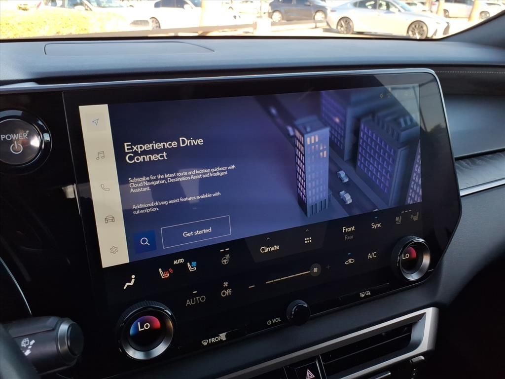 This Lexus RX is equipped with the following features: 2.5L I4 DOHC 16V VVT, AWD, Black w/Black Open Pore w/Leather Seat Trim, 12 Speakers, 3.64 Axle Ratio, 4-Wheel Disc Brakes, ABS brakes, Air Conditioning, Alloy wheels, AM/FM radio: SiriusXM, Anti-whiplash front head restraints, Auto High-beam Headlights, Auto tilt-away steering wheel, Auto-dimming door mirrors, Auto-dimming Rear-View mirror, Automatic temperature control, Brake assist, Bumpers: body-color, Compass, Delay-off headlights, Driver door bin, Driver vanity mirror, Dual front impact airbags, Dual front side impact airbags, Electronic Stability Control, Emergency communication system: Safety Connect (10-year trial), Exterior Parking Camera Rear, Four wheel independent suspension, Front anti-roll bar, Front Bucket Seats, Front Center Armrest, Front dual zone A/C, Front fog lights, Front reading lights, Fully automatic headlights, Garage door transmitter: HomeLink, Heads-Up Display, Heated & Ventilated Front Bucket Seats, Heated door mirrors, Heated front seats, Heated rear seats, Heated steering wheel, Illuminated entry, Leather Shift Knob, Leather steering wheel, Low tire pressure warning, Memory seat, Navigation System, Occupant sensing airbag, Outside temperature display, Overhead airbag, Overhead console, Panic alarm, Passenger door bin, Passenger vanity mirror, Power door mirrors, Power driver seat, Power Liftgate, Power moonroof, Power passenger seat, Power steering, Power windows, Radio data system, Radio: Lexus Interface, Rain sensing wipers, Rear air conditioning, Rear anti-roll bar, Rear reading lights, Rear seat center armrest, Rear side impact airbag, Rear window defroster, Rear window wiper, Remote keyless entry, Security system, Semi-Aniline/L-Fineskin Seat Trim, Speed control, Speed-sensing steering, Split folding rear seat, Spoiler, Steering wheel memory, Steering wheel mounted audio controls, Telescoping steering wheel, Tilt steering wheel, Traction control, Trip computer, Turn signal indicator mirrors, Variably intermittent wipers, Ventilated front seats, Ventilated rear seats, Wheels: 21", and Wireless Apple CarPlay/Wireless Android Auto.