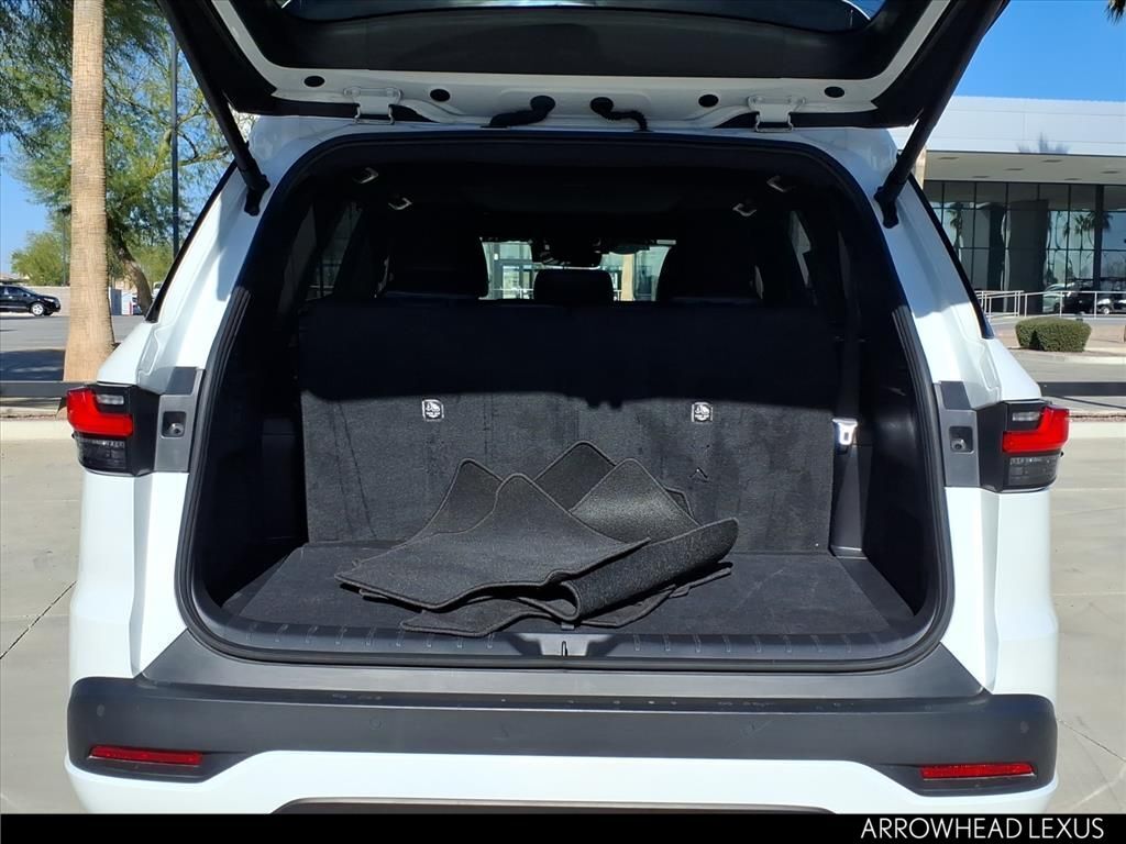 This Lexus TX is equipped with the following features: Convenience Package (Digital Key, Lane Keeping System, Pre-Collision System, and Rear Side Monitor), Technology Package (Intelligent Parking Assist, Peripheral Monitor Camera, and Standard Normal Speed Meter), Accessory Package (Z1) (Cargo Net, Carpet Cargo Mat, Key Gloves, and Wheel Locks), Cold Weather Package (Leather Heated Steering Wheel w/Paddles and Wiper & Window Deicer), 12 Speakers, 20" Wheels, 3rd row seats: split-bench, 4-Wheel Disc Brakes, ABS brakes, Air Conditioning, Alloy wheels, AM/FM radio, Auto High-beam Headlights, Auto tilt-away steering wheel, Auto-dimming door mirrors, Auto-dimming Rear-View mirror, Automatic temperature control, Brake assist, Bumpers: body-color, Cross Bars, Dashcam, Delay-off headlights, Driver door bin, Driver vanity mirror, Dual front impact airbags, Dual front side impact airbags, Electronic Stability Control, Emergency communication system: Safety Connect (10-year trial), Exterior Parking Camera Rear, Four wheel independent suspension, Front anti-roll bar, Front Bucket Seats, Front Center Armrest, Front dual zone A/C, Front fog lights, Front reading lights, Fully automatic headlights, Garage door transmitter: HomeLink, Heated & Air Conditioned Front Seats, Heated door mirrors, Heated front seats, Illuminated Door Sills, Illuminated entry, Knee airbag, Leather Shift Knob, Leather steering wheel, Low tire pressure warning, Memory seat, Navigation system: Drive Connect Cloud Navigation (subscription required), NuLuxe Pattern Perforated Seat Trim, Occupant sensing airbag, Outside temperature display, Overhead airbag, Panic alarm, Passenger door bin, Passenger vanity mirror, Power door mirrors, Power driver seat, Power Liftgate, Power moonroof, Power passenger seat, Power steering, Power windows, Radio data system, Radio: Lexus Interface, Rain sensing wipers, Rear air conditioning, Rear anti-roll bar, Rear reading lights, Rear seat center armrest, Rear window defroster, Rear window wiper, Reclining 3rd row seat, Remote keyless entry, Security system, Speed control, Speed-sensing steering, Split folding rear seat, Spoiler, Steering wheel memory, Steering wheel mounted audio controls, Tachometer, TBD Axle Ratio, Telescoping steering wheel, Tilt steering wheel, Traction control, Trip computer, Turn signal indicator mirrors, Variably intermittent wipers, Ventilated front seats, and Wireless Apple CarPlay/Wireless Android Auto.