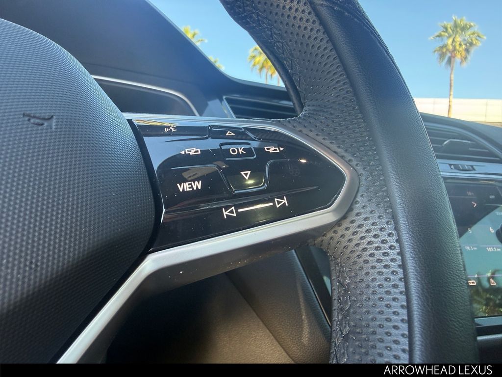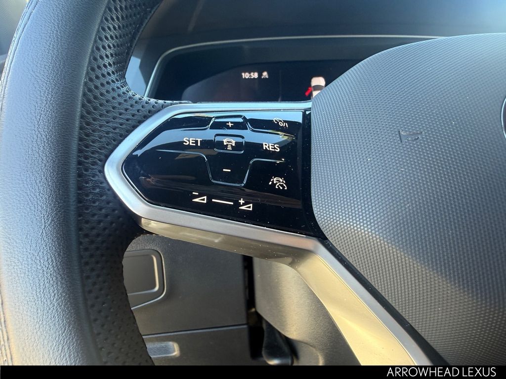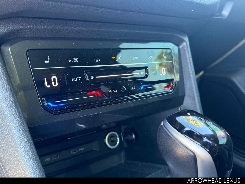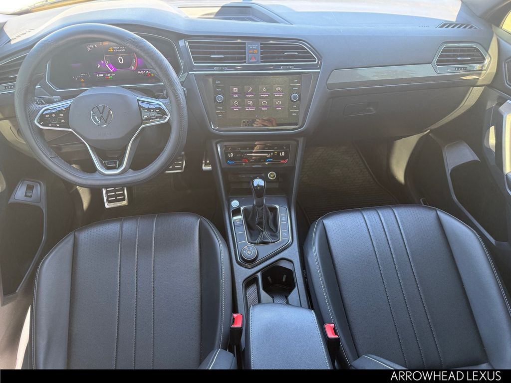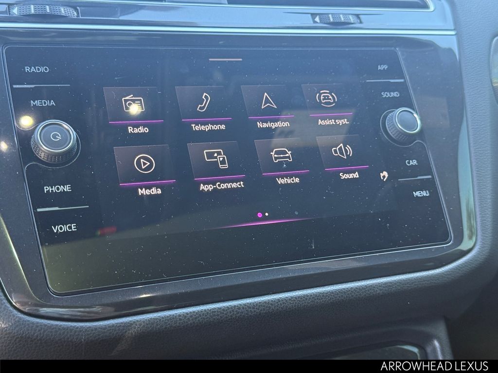 This Volkswagen Tiguan is equipped with the following features: AWD, 3.33 Axle Ratio, 4-Wheel Disc Brakes, 4-Wheel Independent Suspension, 6 Speakers, ABS brakes, Air Conditioning, Alloy wheels, AM/FM radio: SiriusXM with 360L, Auto-dimming Rear-View mirror, Automatic temperature control, Brake assist, Bumpers: body-color, Compass, Delay-off headlights, Driver door bin, Driver vanity mirror, Dual front impact airbags, Dual front side impact airbags, Electronic Stability Control, Emergency communication system: VW Car-Net Safe & Secure 5-year, Exterior Parking Camera Rear, Four wheel independent suspension, Front anti-roll bar, Front Bucket Seats, Front Center Armrest, Front dual zone A/C, Front reading lights, Fully automatic headlights, Heated door mirrors, Heated Front Seats, Heated front seats, Illuminated entry, Leather Shift Knob, Leather steering wheel, Low tire pressure warning, Occupant sensing airbag, Outside temperature display, Overhead airbag, Overhead console, Panic alarm, Passenger door bin, Passenger vanity mirror, Perforated V-Tex Leatherette Seating Surfaces, Power door mirrors, Power driver seat, Power Liftgate, Power moonroof, Power steering, Power windows, Radio data system, Radio: MIB3 Composition Media AM/FM/HD, Rain sensing wipers, Rear anti-roll bar, Rear reading lights, Rear seat center armrest, Rear window defroster, Rear window wiper, Remote keyless entry, Security system, Speed control, Speed-sensing steering, Split folding rear seat, Spoiler, Sport steering wheel, Steering wheel mounted audio controls, Tachometer, Telescoping steering wheel, Tilt steering wheel, Traction control, Trip computer, Turn signal indicator mirrors, Variably intermittent wipers, and Wheels: 19" Black Painted Twin 5-Spoke Alloy.