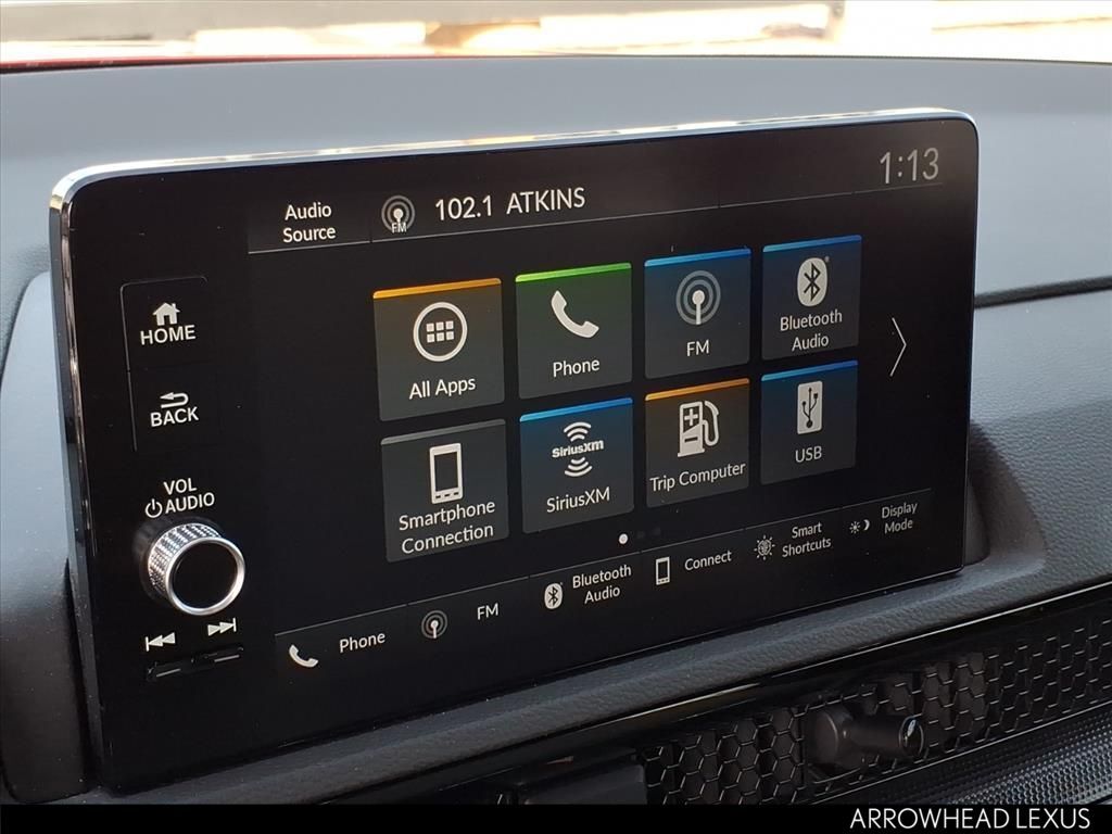This Honda CR-V is equipped with the following features: AWD, 4-Wheel Disc Brakes, 8 Speakers, ABS brakes, Adaptive Cruise Control: Adaptive Cruise Control (ACC) with Low-Speed Follow, Air Conditioning, Alloy wheels, AM/FM radio: SiriusXM, Auto High-beam Headlights, Auto-dimming Rear-View mirror, Automatic temperature control, Blind Spot Information (BSI) System warning, Brake assist, Bumpers: body-color, Compass, Delay-off headlights, Driver door bin, Driver vanity mirror, Dual front impact airbags, Dual front side impact airbags, Electronic Stability Control, Exterior Parking Camera Rear, Four wheel independent suspension, Front anti-roll bar, Front Bucket Seats, Front Center Armrest, Front dual zone A/C, Front reading lights, Fully automatic headlights, Heated door mirrors, Heated Front Bucket Seats, Heated front seats, Illuminated entry, Knee airbag, Leather Seat Trim, Leather Shift Knob, Leather steering wheel, Low tire pressure warning, Memory seat, Occupant sensing airbag, Outside temperature display, Overhead airbag, Overhead console, Panic alarm, Passenger door bin, Passenger vanity mirror, Power door mirrors, Power driver seat, Power Liftgate, Power moonroof, Power passenger seat, Power steering, Power windows, Radio data system, Radio: 320-Watt AM/FM/HD/SiriusXM Audio System, Rear anti-roll bar, Rear reading lights, Rear seat center armrest, Rear side impact airbag, Rear window defroster, Rear window wiper, Remote keyless entry, Security system, Speed control, Speed-sensing steering, Speed-Sensitive Wipers, Split folding rear seat, Spoiler, Steering wheel mounted audio controls, Tachometer, Telescoping steering wheel, Tilt steering wheel, Traction control, Trip computer, Turn signal indicator mirrors, Variably intermittent wipers, and Wheels: 18" Sparkle Silver Alloy Metallic.