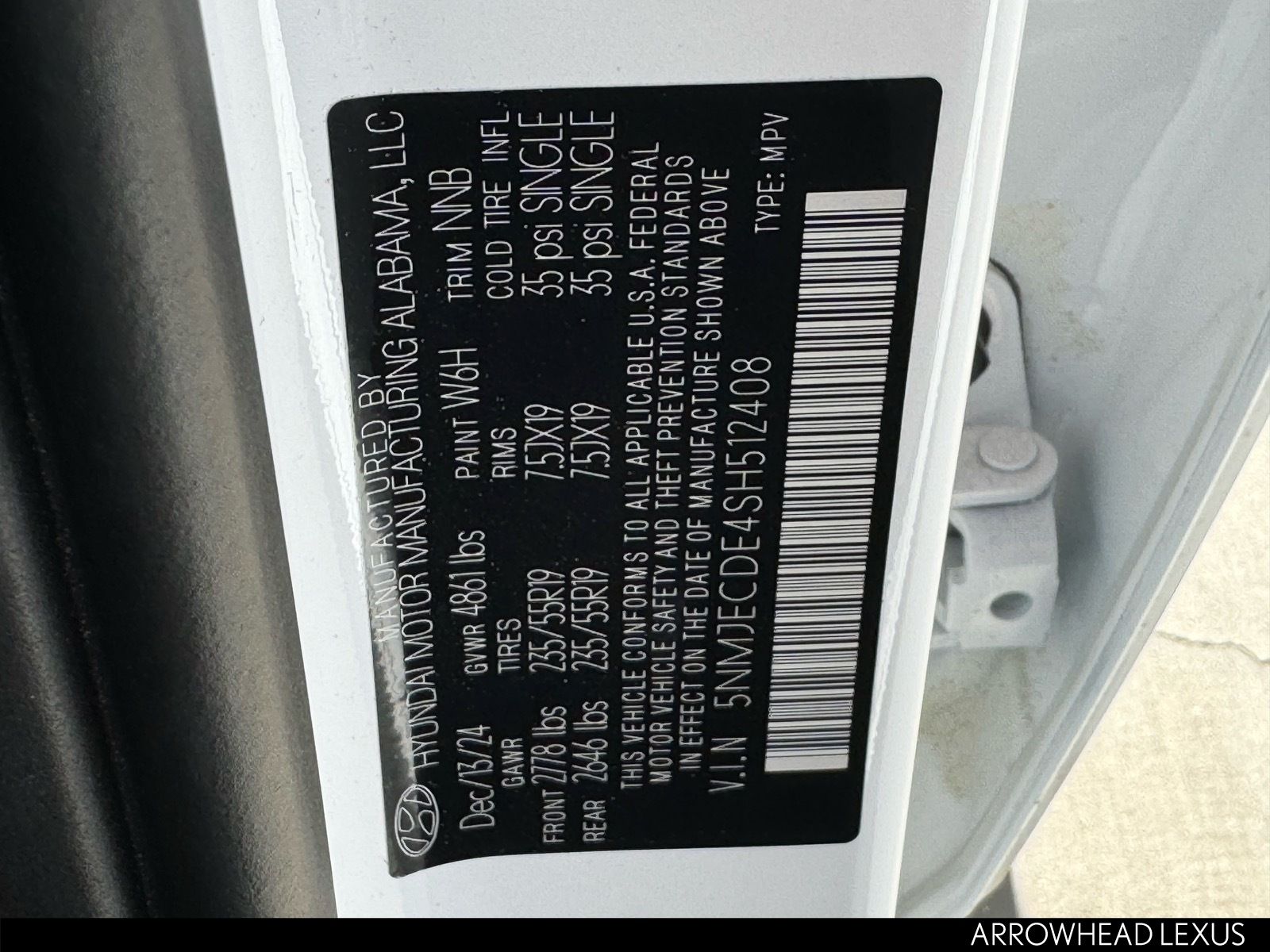 - VIN : 5NMJECDE4SH512408