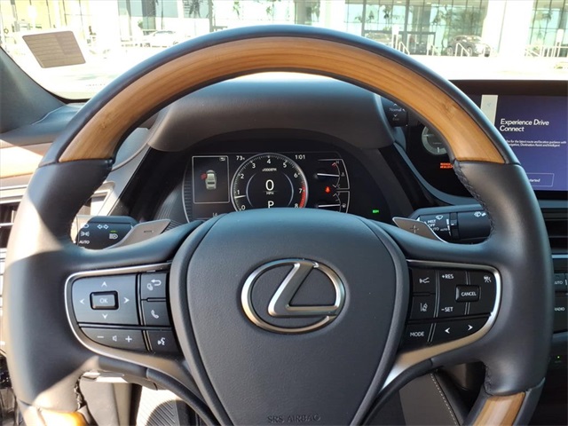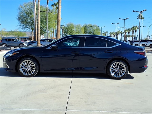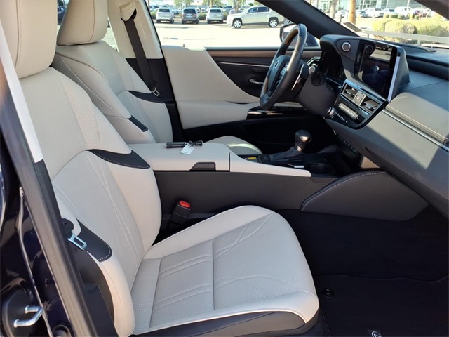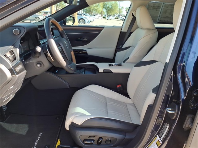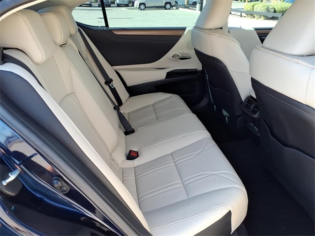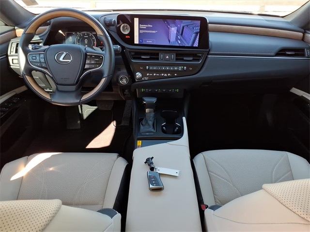 This Lexus ES is equipped with the following features: Lexus Certified Certified, Macadamia w/Quilted & Perforated Semi-Aniline Leather Seat Trim, ABS brakes, Active Cruise Control, Alloy wheels, Compass, Electronic Stability Control, Emergency communication system, Front dual zone A/C, Heated door mirrors, Heated front seats, Illuminated entry, Low tire pressure warning, Power moonroof, Remote keyless entry, Traction control, 10 Speakers, 4-Wheel Disc Brakes, Air Conditioning, AM/FM radio: SiriusXM, Auto High-beam Headlights, Auto tilt-away steering wheel, Auto-dimming door mirrors, Auto-dimming Rear-View mirror, Automatic temperature control, Brake assist, Bumpers: body-color, Delay-off headlights, Driver door bin, Driver vanity mirror, Dual front impact airbags, Dual front side impact airbags, Exterior Parking Camera Rear, Four wheel independent suspension, Front anti-roll bar, Front Bucket Seats, Front Center Armrest, Front reading lights, Fully automatic headlights, Garage door transmitter: HomeLink, Genuine wood console insert, Genuine wood dashboard insert, Genuine wood door panel insert, Heated & Ventilated Front Power Seats, Heated steering wheel, Knee airbag, Leather Shift Knob, Leather steering wheel, Memory seat, Navigation system: Drive Connect Cloud Navigation (subscription required), Occupant sensing airbag, Outside temperature display, Overhead airbag, Overhead console, Panic alarm, Passenger door bin, Passenger vanity mirror, Power door mirrors, Power driver seat, Power passenger seat, Power steering, Power windows, Quilted & Perforated Semi-Aniline Leather Seat Trim, Radio data system, Radio: Lexus Interface w/8" Touch Screen, Rain sensing wipers, Rear anti-roll bar, Rear reading lights, Rear seat center armrest, Rear side impact airbag, Rear Window Blind, Rear window defroster, Security system, Speed control, Speed-sensing steering, Steering wheel memory, Steering wheel mounted audio controls, Tachometer, Telescoping steering wheel, Tilt steering wheel, Trip computer, Turn signal indicator mirrors, Variably intermittent wipers, Ventilated front seats, Wheels: 18" Split-10-Spoke Two-Tone Alloy, and Wireless Apple CarPlay/Wireless Android Auto.