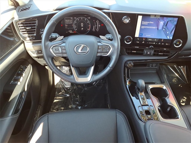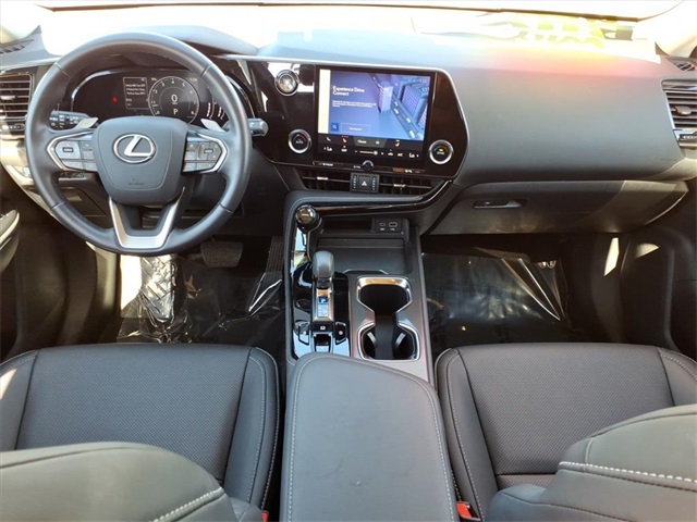 This Lexus NX is equipped with the following features: Lexus Certified Certified, 10 Speakers, 4-Wheel Disc Brakes, ABS brakes, Air Conditioning, Alloy wheels, AM/FM radio: SiriusXM, Auto High-beam Headlights, Auto-dimming door mirrors, Auto-dimming Rear-View mirror, Automatic temperature control, Brake assist, Bumpers: body-color, Cross Bars, Dashcam, Delay-off headlights, Door Edge Film by 3M, Driver door bin, Driver vanity mirror, Dual front impact airbags, Dual front side impact airbags, Electronic Stability Control, Emergency communication system: Safety Connect (up to 10-year trial subscription included), Exterior Parking Camera Rear, Four wheel independent suspension, Front anti-roll bar, Front Bucket Seats, Front Center Armrest, Front dual zone A/C, Front fog lights, Front reading lights, Fully automatic headlights, Garage door transmitter: HomeLink, Heated door mirrors, Heated Front Bucket Seats, Heated front seats, Illuminated Cargo Sill, Illuminated Door Sills, Illuminated entry, Knee airbag, Leather Shift Knob, Leather steering wheel, Low tire pressure warning, Mudguards, Navigation system: Drive Connect Cloud Navigation (subscription required), NuLuxe Seat Trim, Occupant sensing airbag, Outside temperature display, Overhead airbag, Overhead console, Panic alarm, Passenger door bin, Passenger vanity mirror, Power door mirrors, Power driver seat, Power Liftgate, Power passenger seat, Power steering, Power Tilt & Slide Moonroof, Power windows, Radio data system, Radio: 10-Speaker Lexus Premium Sound, Rain sensing wipers, Rear anti-roll bar, Rear reading lights, Rear seat center armrest, Rear window defroster, Rear window wiper, Remote keyless entry, Security system, Speed control, Speed-sensing steering, Speed-Sensitive Wipers, Split folding rear seat, Spoiler, Steering wheel mounted audio controls, Tachometer, Telescoping steering wheel, Tilt steering wheel, Traction control, Trip computer, Turn signal indicator mirrors, Variably intermittent wipers, Wheels: 18" Alloy w/Dark Gray Met & Machined Finish, and Wireless Apple CarPlay/Wireless Android Auto.