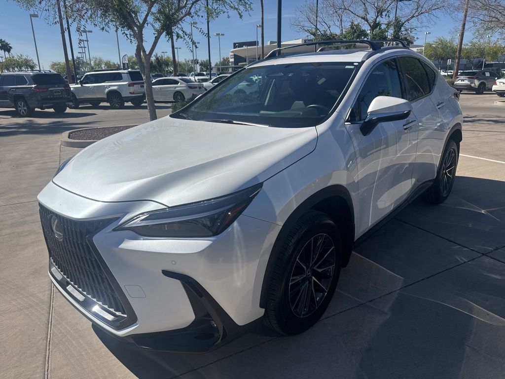 This Lexus NX is equipped with the following features: Accessory Package (2T) (All-Weather Cargo Mat and All-Weather Floor Liners), Cold Area Package (Heated Leather-Trimmed Steering Wheel and Windshield Wiper De-Icer), L/Certified Certified, 10 Speakers, 4-Wheel Disc Brakes, ABS brakes, Air Conditioning, Alloy wheels, AM/FM radio: SiriusXM, Auto High-beam Headlights, Auto-dimming door mirrors, Auto-dimming Rear-View mirror, Automatic temperature control, Brake assist, Bumpers: body-color, Cross Bars, Dashcam, Delay-off headlights, Door Edge Film by 3M, Driver door bin, Driver vanity mirror, Dual front impact airbags, Dual front side impact airbags, Electronic Stability Control, Emergency communication system: Safety Connect (up to 10-year trial subscription included), Exterior Parking Camera Rear, Four wheel independent suspension, Front anti-roll bar, Front Bucket Seats, Front Center Armrest, Front dual zone A/C, Front fog lights, Front reading lights, Fully automatic headlights, Garage door transmitter: HomeLink, Heated door mirrors, Heated Front Bucket Seats, Heated front seats, Illuminated Cargo Sill, Illuminated Door Sills, Illuminated entry, Knee airbag, Leather Shift Knob, Leather steering wheel, Low tire pressure warning, Mudguards, Navigation system: Drive Connect Cloud Navigation (subscription required), NuLuxe Seat Trim, Occupant sensing airbag, Outside temperature display, Overhead airbag, Overhead console, Panic alarm, Passenger door bin, Passenger vanity mirror, Power door mirrors, Power driver seat, Power Liftgate, Power passenger seat, Power steering, Power Tilt & Slide Moonroof, Power windows, Radio data system, Radio: 10-Speaker Lexus Premium Sound, Rain sensing wipers, Rear anti-roll bar, Rear reading lights, Rear seat center armrest, Rear window defroster, Rear window wiper, Remote keyless entry, Security system, Speed control, Speed-sensing steering, Speed-Sensitive Wipers, Split folding rear seat, Spoiler, Steering wheel mounted audio controls, Tachometer, Telescoping steering wheel, Tilt steering wheel, Traction control, Trip computer, Turn signal indicator mirrors, Variably intermittent wipers, Wheel Locks, Wheels: 18" Alloy w/Dark Gray Met & Machined Finish, and Wireless Apple CarPlay/Wireless Android Auto.