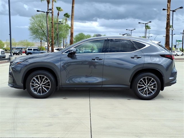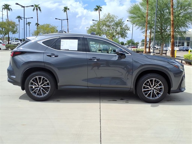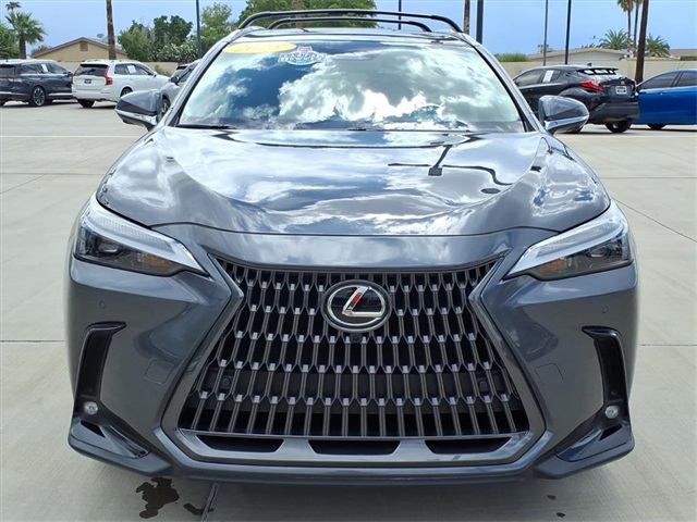 **Sun City Trade-Ins Lowest Miles Nicest Condition Vehicles in the Valley** This Lexus NX is equipped with the following features: Premium Package, Cold Area Package (Heated Leather-Trimmed Steering Wheel and Windshield Wiper De-Icer), Lexus Certified Certified, 10 Speakers, 14" Display Navigation, 4-Wheel Disc Brakes, ABS brakes, Air Conditioning, Alloy wheels, AM/FM radio: SiriusXM, Auto High-beam Headlights, Auto tilt-away steering wheel, Auto-dimming door mirrors, Auto-dimming Rear-View mirror, Automatic temperature control, Brake assist, Bumpers: body-color, Cross Bars, Delay-off headlights, Digital Key & SmartAccess Card Key, Door Edge Film by 3M, Driver door bin, Driver vanity mirror, Dual front impact airbags, Dual front side impact airbags, Electronic Stability Control, Emergency communication system: Safety Connect (up to 10-year trial subscription included), Exterior Parking Camera Rear, Four wheel independent suspension, Front anti-roll bar, Front Bucket Seats, Front Center Armrest, Front Cross-Traffic Alert, Front dual zone A/C, Front fog lights, Front reading lights, Fully automatic headlights, Garage door transmitter: HomeLink, Heated & Ventilated Front Bucket Seats, Heated door mirrors, Heated front seats, Illuminated Cargo Sill, Illuminated Door Sills, Illuminated entry, Knee airbag, Leather Shift Knob, Leather steering wheel, Low tire pressure warning, Memory seat, Mudguards, Navigation system: Drive Connect Cloud Navigation (subscription required), NuLuxe Seat Trim, Occupant sensing airbag, Outside temperature display, Overhead airbag, Overhead console, Panic alarm, Panoramic View Monitor, Passenger door bin, Passenger vanity mirror, Power door mirrors, Power driver seat, Power Liftgate, Power moonroof, Power passenger seat, Power steering, Power windows, Radio data system, Radio: 10-Speaker Lexus Premium Sound, Rain sensing wipers, Rear anti-roll bar, Rear reading lights, Rear seat center armrest, Rear window defroster, Rear window wiper, Remote keyless entry, Security system, Speed control, Speed-sensing steering, Speed-Sensitive Wipers, Split folding rear seat, Spoiler, Steering wheel memory, Steering wheel mounted audio controls, Tachometer, Telescoping steering wheel, Thematic Ambient Illumination, Tilt steering wheel, Traction control, Trip computer, Turn signal indicator mirrors, Variably intermittent wipers, Ventilated front seats, Wheels: 18" Alloy w/Dark Gray Met & Machined Finish, Wireless Apple CarPlay/Wireless Android Auto, and Wireless Phone Charger.