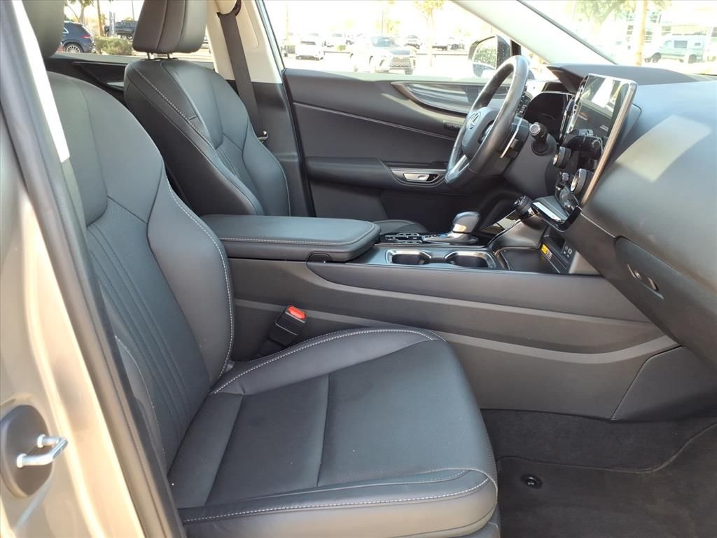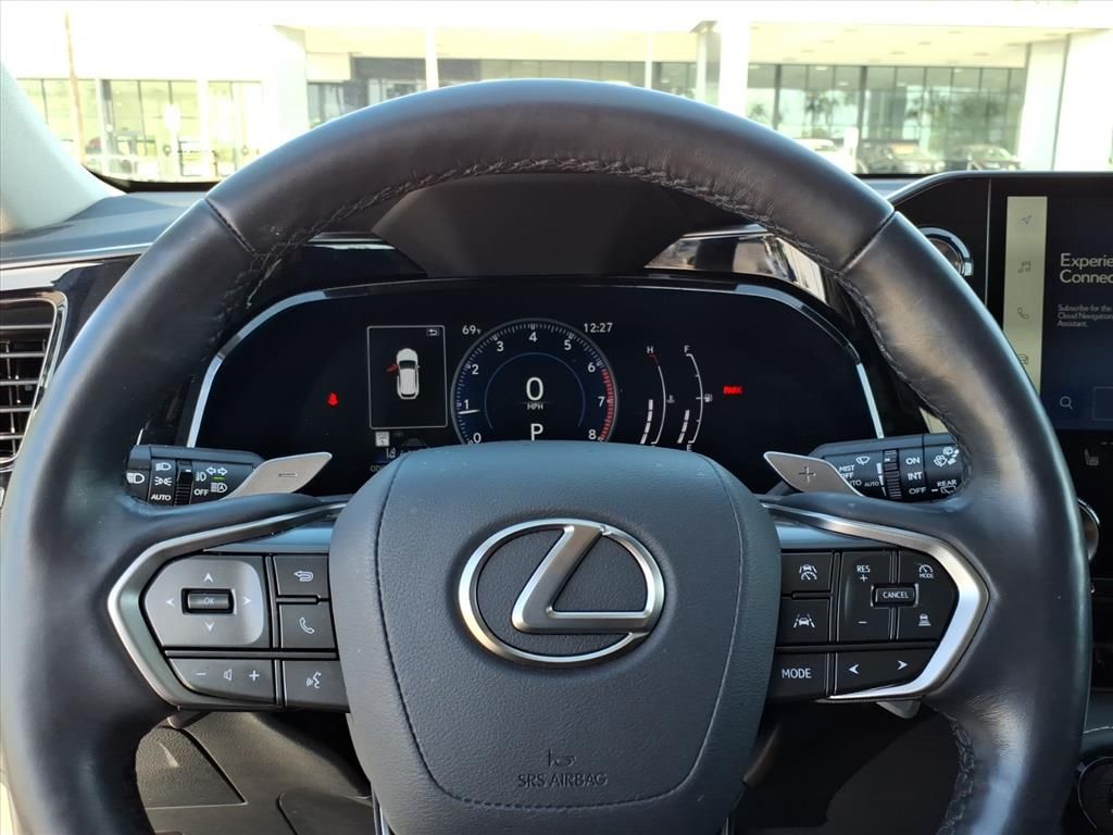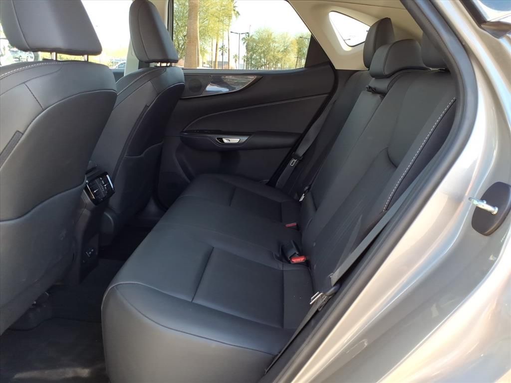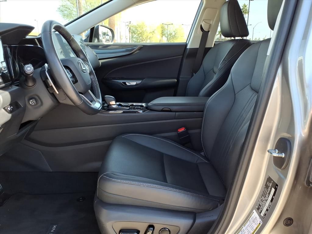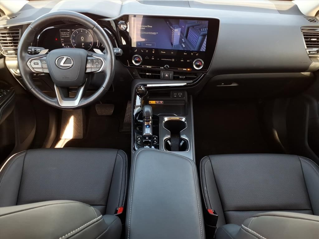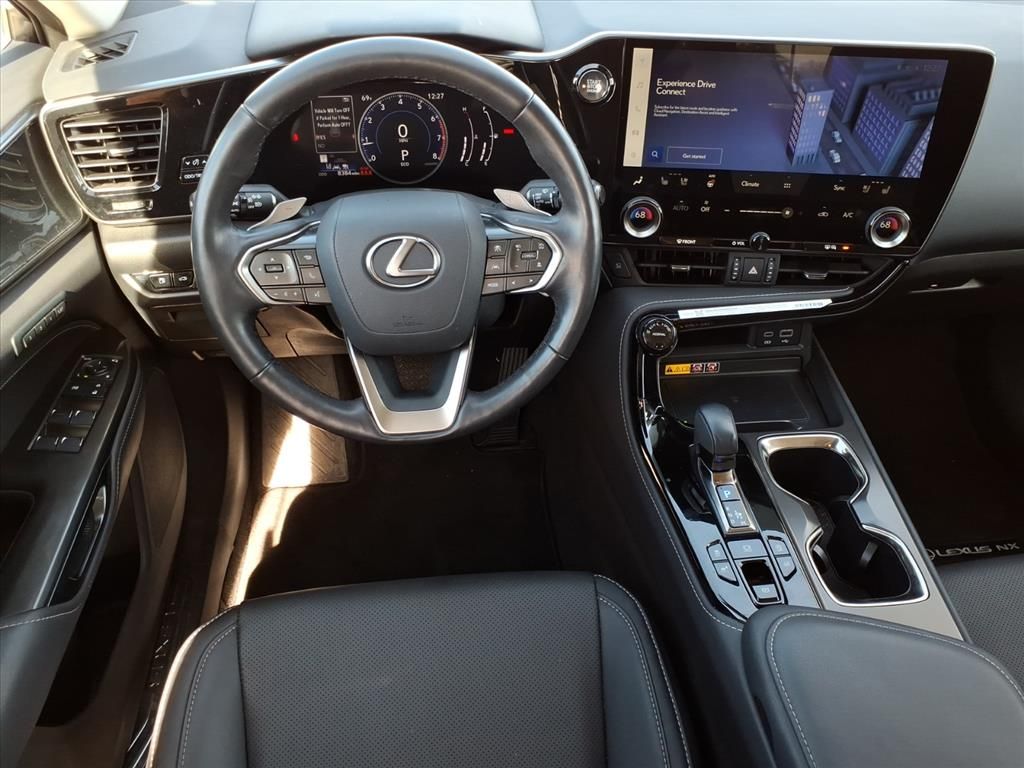 This Lexus NX is equipped with the following features: Cold Area Package (Heated Leather-Trimmed Steering Wheel and Windshield Wiper De-Icer), Premium Package, Accessory Package (Z1) (Cargo Net, Carpet Cargo Mat, and Key Gloves), L/Certified Certified, 10 Speakers, 14" Display Navigation, 4-Wheel Disc Brakes, ABS brakes, Air Conditioning, Alloy wheels, AM/FM radio: SiriusXM, Auto High-beam Headlights, Auto tilt-away steering wheel, Auto-dimming door mirrors, Auto-dimming Rear-View mirror, Automatic temperature control, Brake assist, Bumpers: body-color, Cross Bars, Delay-off headlights, Digital Key & SmartAccess Card Key, Driver door bin, Driver vanity mirror, Dual front impact airbags, Dual front side impact airbags, Electronic Stability Control, Emergency communication system: Safety Connect (up to 10-year trial subscription included), Exterior Parking Camera Rear, Four wheel independent suspension, Front anti-roll bar, Front Bucket Seats, Front Center Armrest, Front Cross-Traffic Alert, Front dual zone A/C, Front fog lights, Front reading lights, Fully automatic headlights, Garage door transmitter: HomeLink, Heated & Ventilated Front Bucket Seats, Heated door mirrors, Heated front seats, Illuminated Cargo Sill, Illuminated Door Sills, Illuminated entry, Knee airbag, Leather Shift Knob, Leather steering wheel, Low tire pressure warning, Memory seat, Mudguards, Navigation system: Drive Connect Cloud Navigation (subscription required), NuLuxe Seat Trim, Occupant sensing airbag, Outside temperature display, Overhead airbag, Overhead console, Panic alarm, Panoramic View Monitor, Passenger door bin, Passenger vanity mirror, Power door mirrors, Power driver seat, Power Liftgate, Power moonroof, Power passenger seat, Power steering, Power windows, Radio data system, Radio: 10-Speaker Lexus Premium Sound, Rain sensing wipers, Rear anti-roll bar, Rear reading lights, Rear seat center armrest, Rear window defroster, Rear window wiper, Remote keyless entry, Security system, Speed control, Speed-sensing steering, Speed-Sensitive Wipers, Split folding rear seat, Spoiler, Steering wheel memory, Steering wheel mounted audio controls, Tachometer, Telescoping steering wheel, Thematic Ambient Illumination, Tilt steering wheel, Traction control, Trip computer, Turn signal indicator mirrors, Variably intermittent wipers, Ventilated front seats, Wheels: 18" Alloy w/Dark Gray Met & Machined Finish, Wireless Apple CarPlay/Wireless Android Auto, and Wireless Phone Charger.