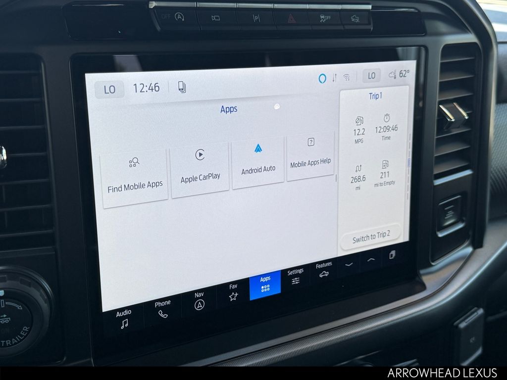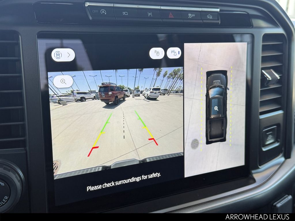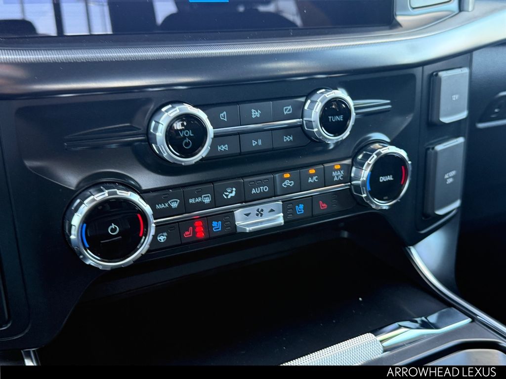 This Ford F-150 is equipped with the following features: Equipment Group 801A Standard (17" Cast Aluminum Wheels, Electronic Locking with 4.10 Axle Ratio, Leather Trimmed Seats, Radio: B&O Unleashed Sound System by Bang & Olufsen, and SYNC 4 with Enhanced Voice Recognition), Ford Connectivity Package (1-Year Included), Internet access capable: 5G Modem - Ford Connectivity Package, 4WD, 14 Speakers, 4-Wheel Disc Brakes, ABS brakes, Adjustable pedals, Air Conditioning, Alloy wheels, AM/FM radio: SiriusXM with 360L, Auto High-beam Headlights, Auto tilt-away steering wheel, Auto-dimming door mirrors, Auto-dimming Rear-View mirror, Automatic temperature control, Brake assist, Bumpers: body-color, Compass, Delay-off headlights, Driver door bin, Driver vanity mirror, Dual front impact airbags, Dual front side impact airbags, Electronic Stability Control, Emergency communication system: SYNC 4 911 Assist, Front anti-roll bar, Front Bucket Seats, Front Center Armrest, Front dual zone A/C, Front fog lights, Front reading lights, Front wheel independent suspension, Fully automatic headlights, Garage door transmitter, Heads-Up Display, Heated door mirrors, Heated front seats, Heated rear seats, Heated steering wheel, Illuminated entry, Lane Departure Warning System, Leather steering wheel, Low tire pressure warning, Memory seat, Navigation system: Connected Navigation, Occupant sensing airbag, Outside temperature display, Overhead airbag, Overhead console, Panic alarm, Passenger door bin, Passenger vanity mirror, Pedal memory, Power door mirrors, Power driver seat, Power passenger seat, Power steering, Power windows, Radio data system, Rain sensing wipers, Rear reading lights, Rear step bumper, Rear window defroster, Remote keyless entry, Security system, Speed control, Speed-sensing steering, Split folding rear seat, Steering wheel memory, Steering wheel mounted audio controls, Tachometer, Telescoping steering wheel, Tilt steering wheel, Traction control, Trip computer, Turn signal indicator mirrors, Twin Panel Moonroof, Variably intermittent wipers, and Ventilated front seats.