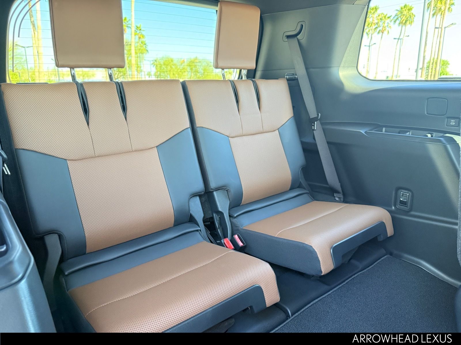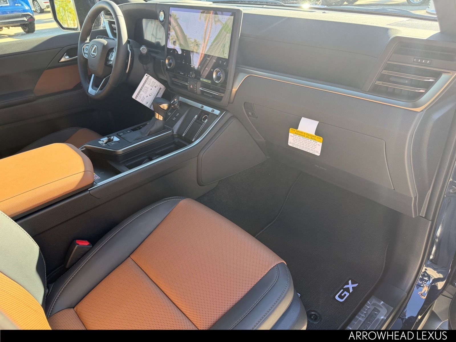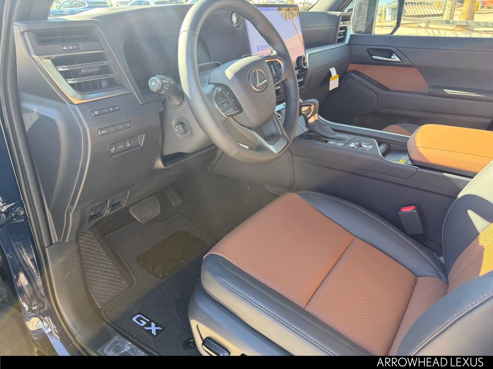 This Lexus GX is equipped with the following features: 10 Speakers, 20" Wheels, 3rd row seats: split-bench, 4-Wheel Disc Brakes, ABS brakes, Air Conditioning, Alloy wheels, AM/FM radio, Anti-whiplash front head restraints, Apple CarPlay/Android Auto, Auto High-beam Headlights, Auto tilt-away steering wheel, Auto-dimming door mirrors, Auto-dimming Rear-View mirror, Automatic temperature control, Brake assist, Bumpers: body-color, Delay-off headlights, Driver door bin, Driver vanity mirror, Dual front impact airbags, Dual front side impact airbags, Electronic Stability Control, Emergency communication system: Safety Connect (5-year minimum), Exterior Parking Camera Rear, Four wheel independent suspension, Front anti-roll bar, Front Bucket Seats, Front Center Armrest w/Storage, Front dual zone A/C, Front reading lights, Fully automatic headlights, Garage door transmitter: HomeLink, Genuine wood console insert, Heated and Ventilated Front Seats, Heated door mirrors, Heated front seats, Illuminated entry, Knee airbag, Leather Shift Knob, Leather steering wheel, Lexus Interface with 14" Touchscreen Display, Low tire pressure warning, Memory seat, Navigation system: Drive Connect Cloud Navigation (3-year trial subscription included), NuLuxe Seat Trim, Occupant sensing airbag, Overhead airbag, Panic alarm, Passenger door bin, Passenger vanity mirror, Power door mirrors, Power driver seat, Power Liftgate, Power moonroof, Power passenger seat, Power steering, Power windows, Radio: 10-Speaker Lexus Premium Sound System, Rear air conditioning, Rear anti-roll bar, Rear reading lights, Rear seat center armrest, Rear side impact airbag, Rear window defroster, Rear window wiper, Remote keyless entry, Security system, Speed control, Speed-sensing steering, Split folding rear seat, Spoiler, Steering wheel memory, Steering wheel mounted audio controls, Tachometer, Telescoping steering wheel, Tilt steering wheel, Traction control, Trip computer, Turn signal indicator mirrors, Variably intermittent wipers, Ventilated front seats, and Wheels: 20" 6-Twin-Spoke Alloy with Dark Gray.