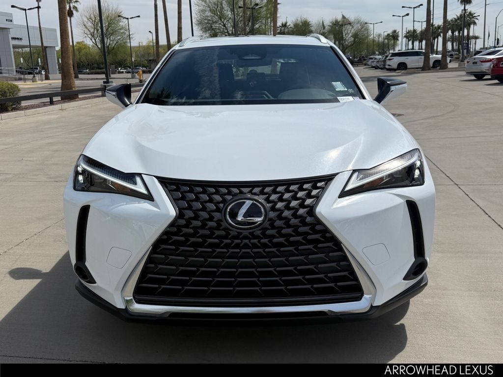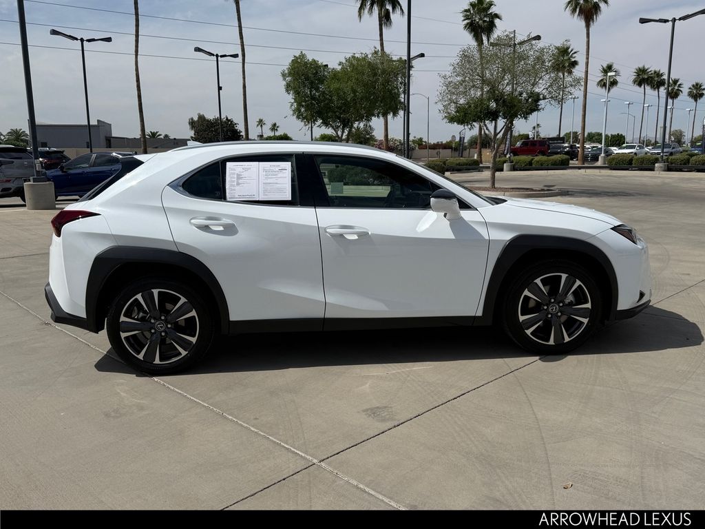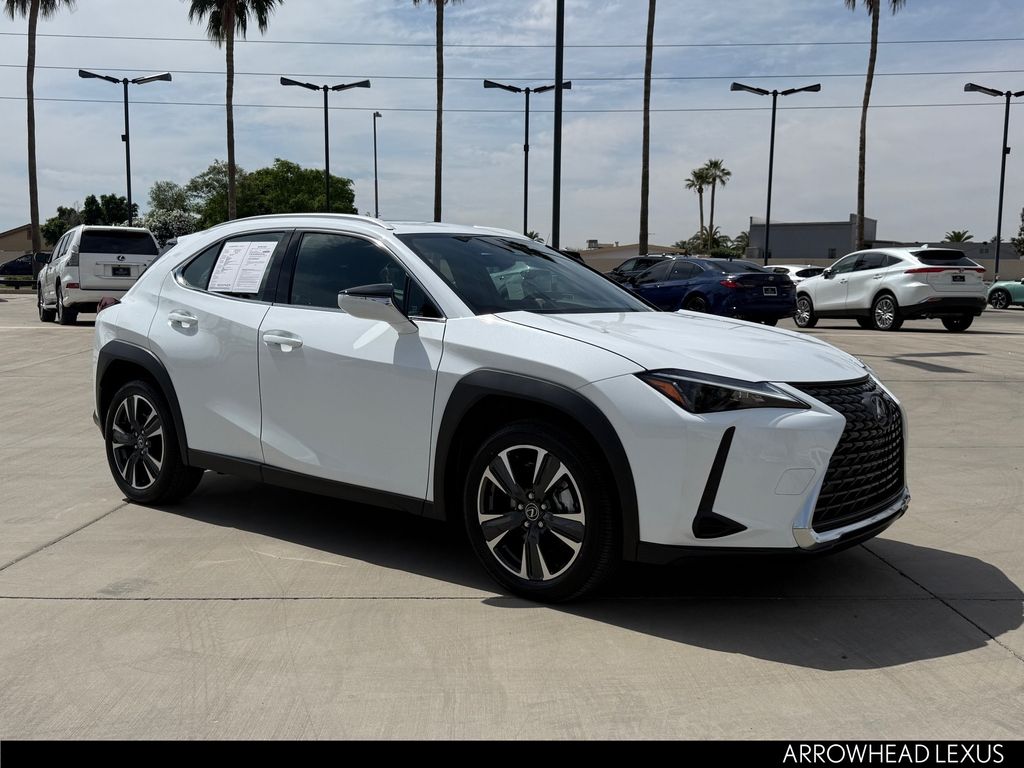 This Lexus UX is equipped with the following features: Accessory Package, Lexus Certified Certified, 2.0L I4 DOHC 16V, 18" 5-Spoke Alloy Wheels, 4-Wheel Disc Brakes, 6 Speakers, ABS brakes, Air Conditioning, Alloy wheels, AM/FM radio: SiriusXM, Apple CarPlay/Android Auto, Auto High-beam Headlights, Automatic temperature control, Brake assist, Bumpers: body-color, Compass, Delay-off headlights, Driver door bin, Driver vanity mirror, Dual front impact airbags, Dual front side impact airbags, Electronic Stability Control, Emergency communication system: Safety Connect (10-year trial), Exterior Parking Camera Rear, Four wheel independent suspension, Front anti-roll bar, Front Bucket Seats, Front Center Armrest, Front dual zone A/C, Front reading lights, Front Seats, Fully automatic headlights, Heated door mirrors, Illuminated entry, Knee airbag, Leather Shift Knob, Leather steering wheel, Lexus Interface with 8.0" Touchscreen Display, Low tire pressure warning, NuLuxe Seat Trim, Occupant sensing airbag, Outside temperature display, Overhead airbag, Panic alarm, Passenger door bin, Passenger vanity mirror, Power door mirrors, Power driver seat, Power passenger seat, Power steering, Power windows, Radio data system, Radio: 6-Speaker Lexus Premium Sound System, Rear anti-roll bar, Rear Parking Sensors, Rear reading lights, Rear side impact airbag, Rear window defroster, Rear window wiper, Remote keyless entry, Security system, Speed control, Speed-sensing steering, Split folding rear seat, Spoiler, Steering wheel mounted audio controls, Tachometer, Telescoping steering wheel, Tilt steering wheel, Traction control, Trip computer, Turn signal indicator mirrors, and Variably intermittent wipers.